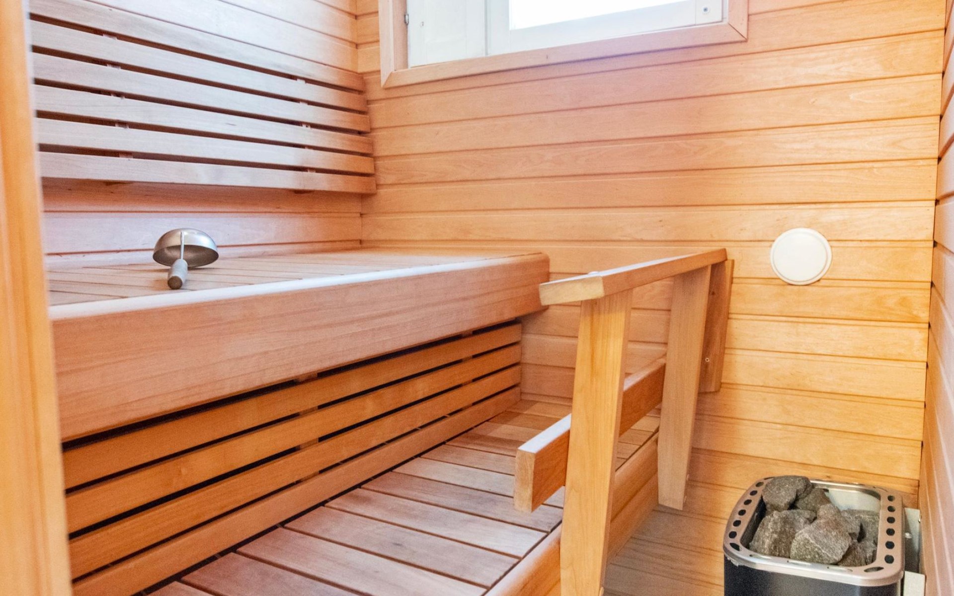 For added comfort, there is a private sauna with a washroom and toilet.