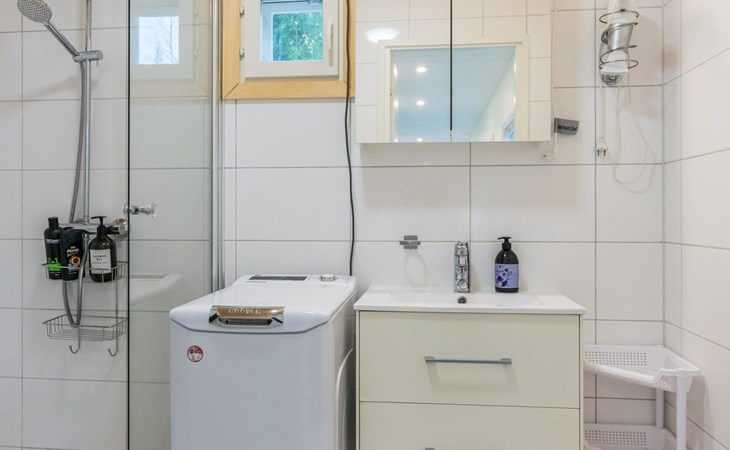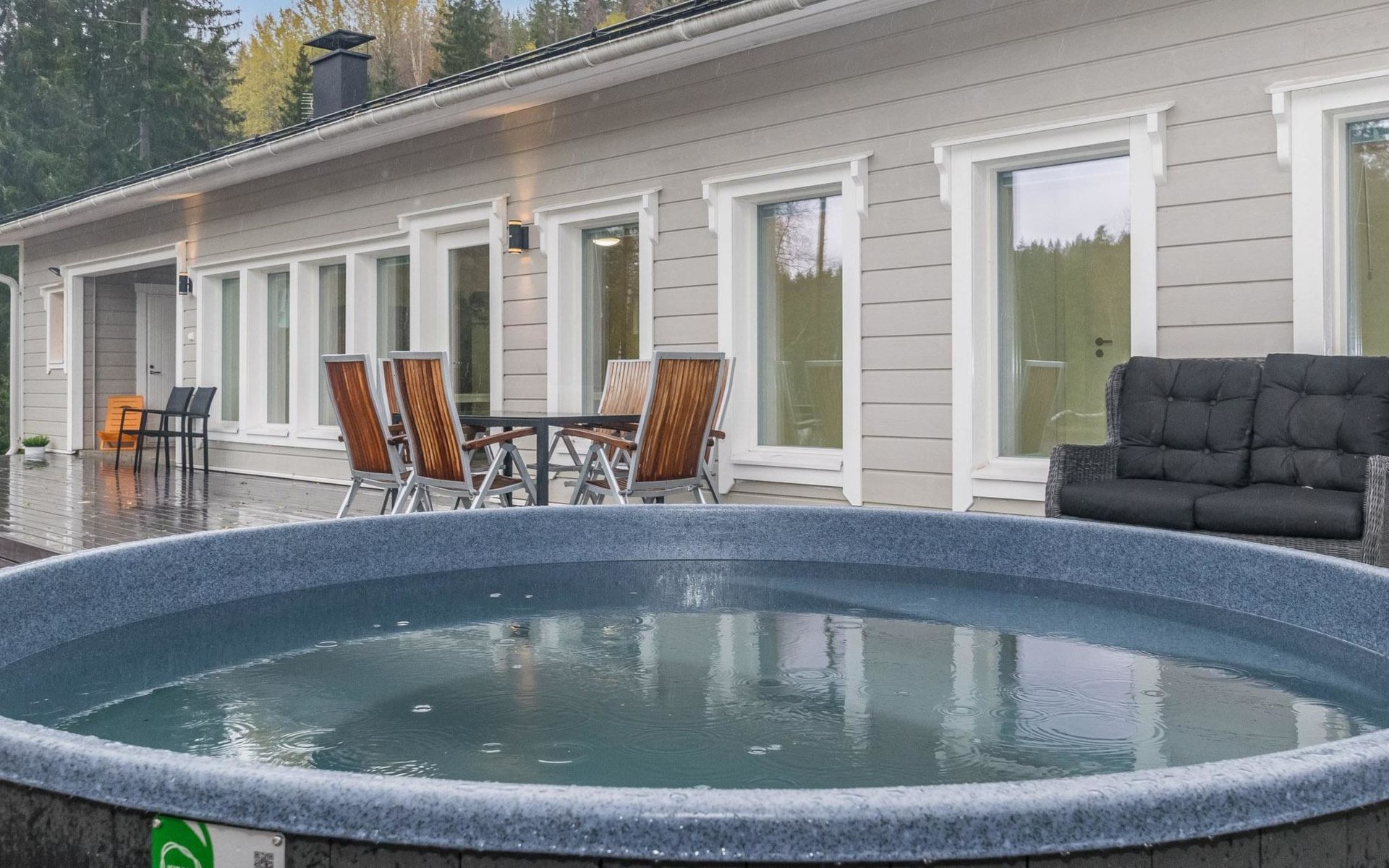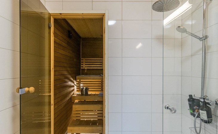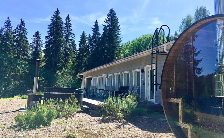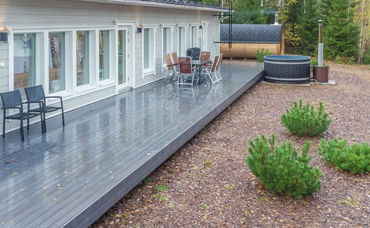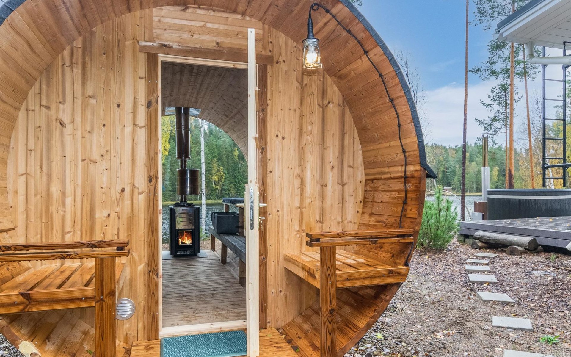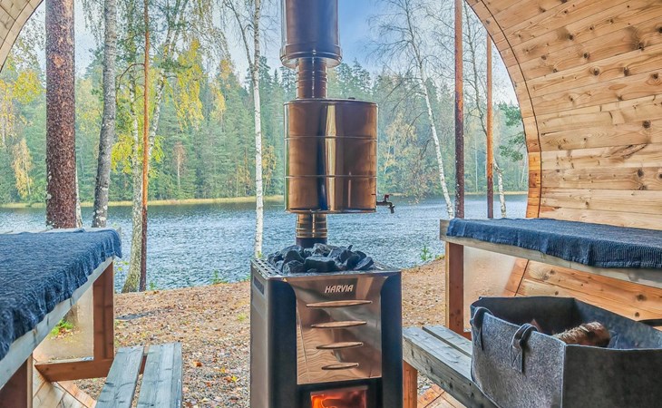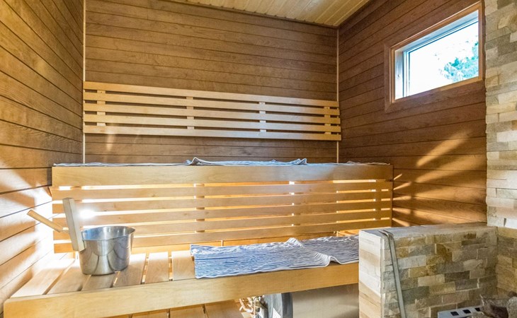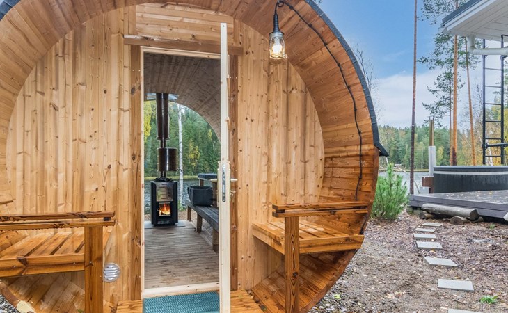 The use of a wood-heated hot tub on the terrace is included in the rent. In addition, there's a panoramic sauna in the yard, equipped with a wood-burning sauna stove. Water can be obtained via hose from the water post.