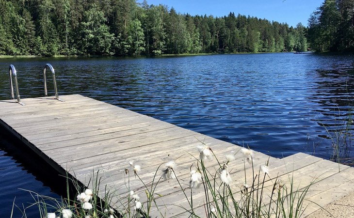 28 km to the southwest from Hämeenlinna, Lake Tuomisto 30 m, gently deepening beach, solid gravel bottom, a pier, and a rowing boat.