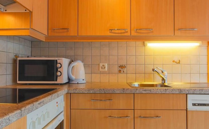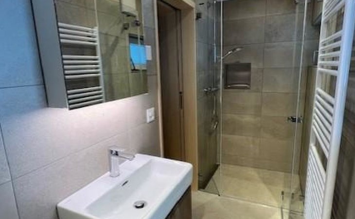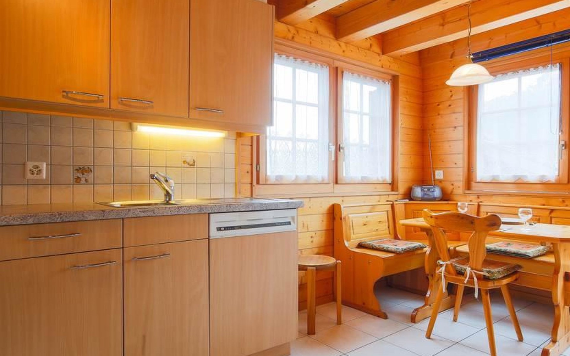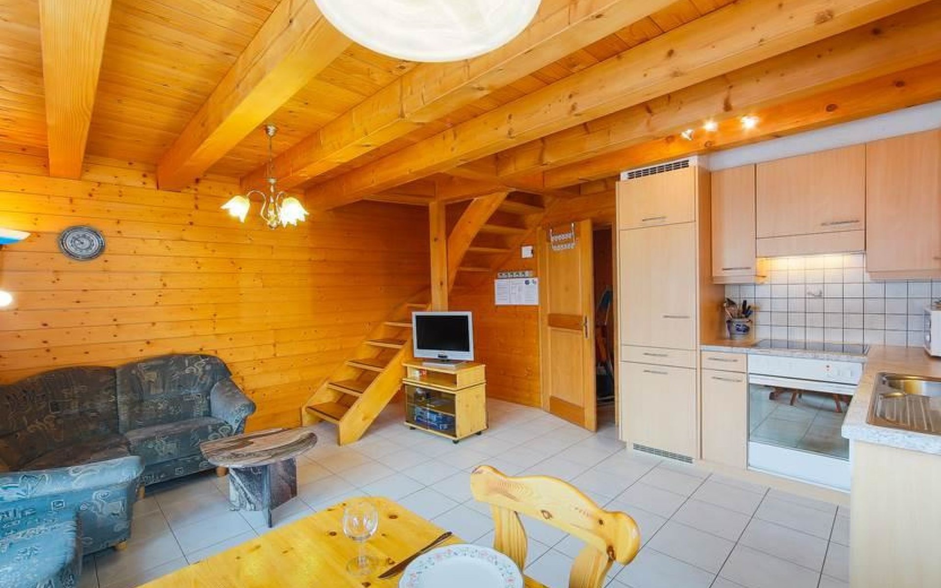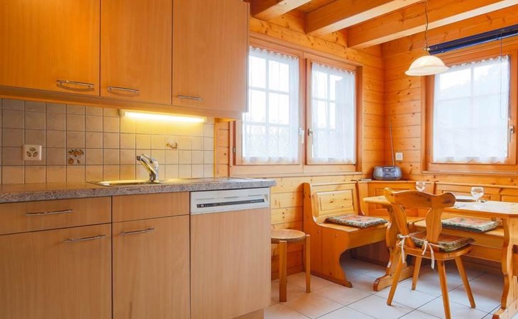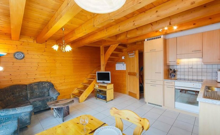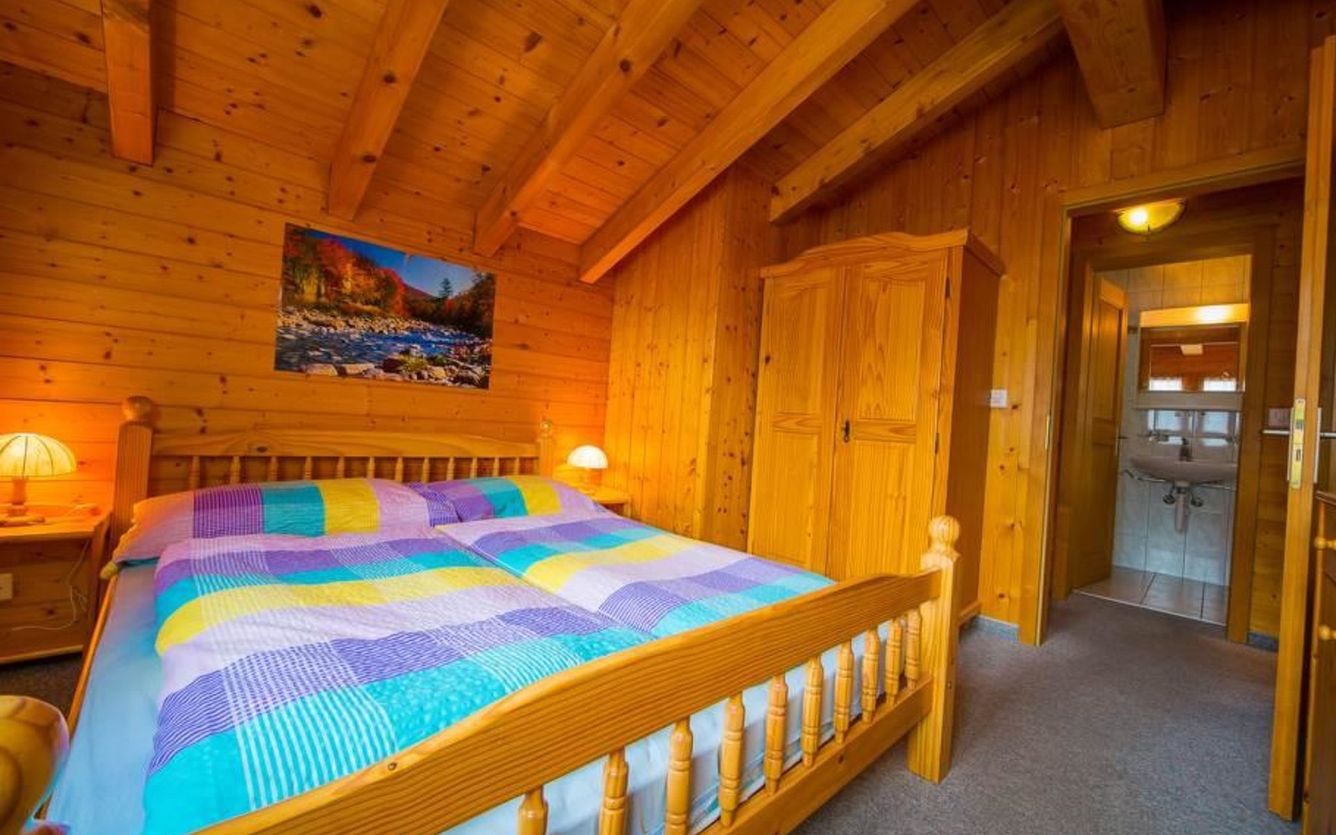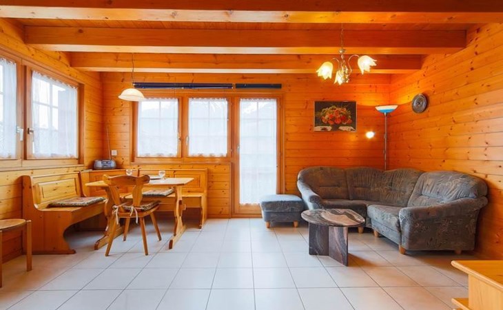 The chalet has 2 bedrooms, 2 bathrooms, a big room for kitchen & livingroom. 4 people can be housed in the chalet.
