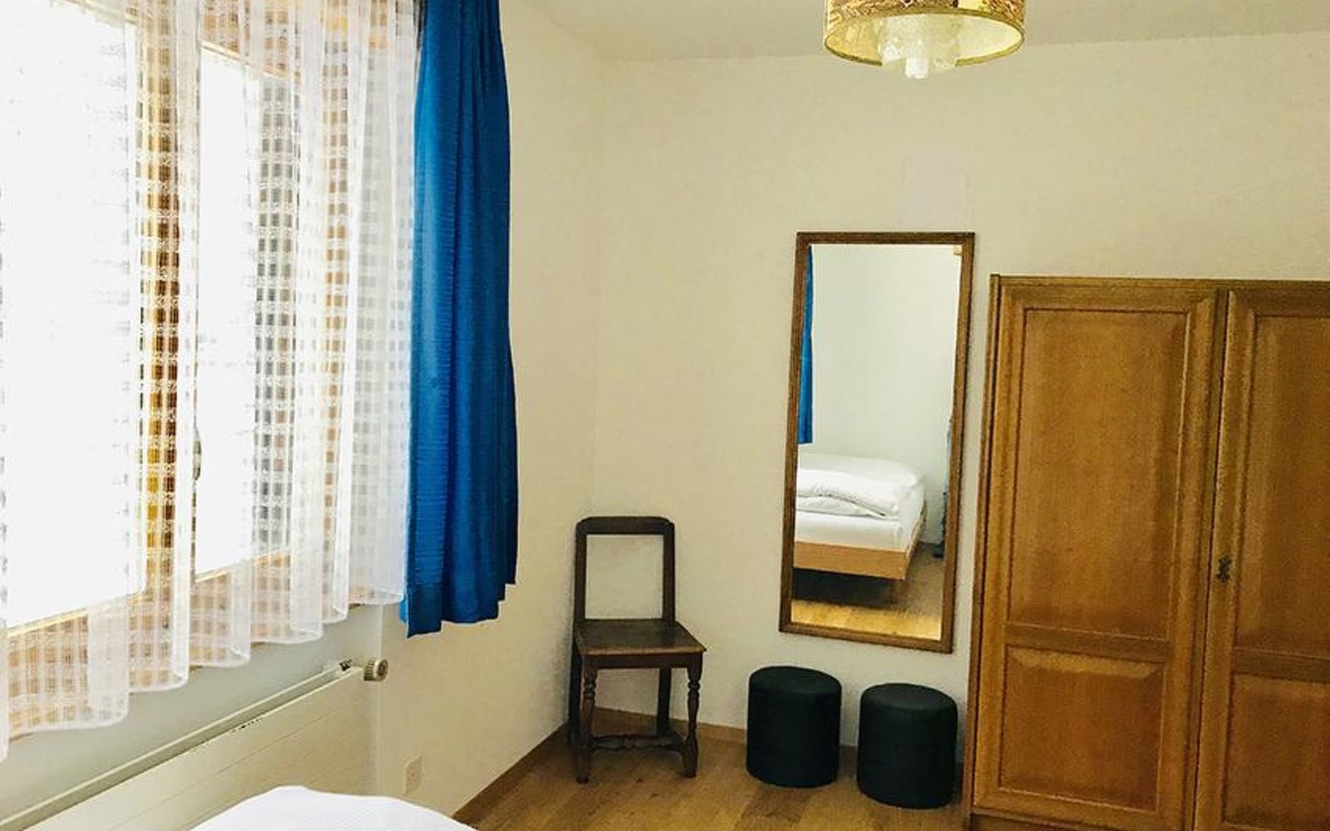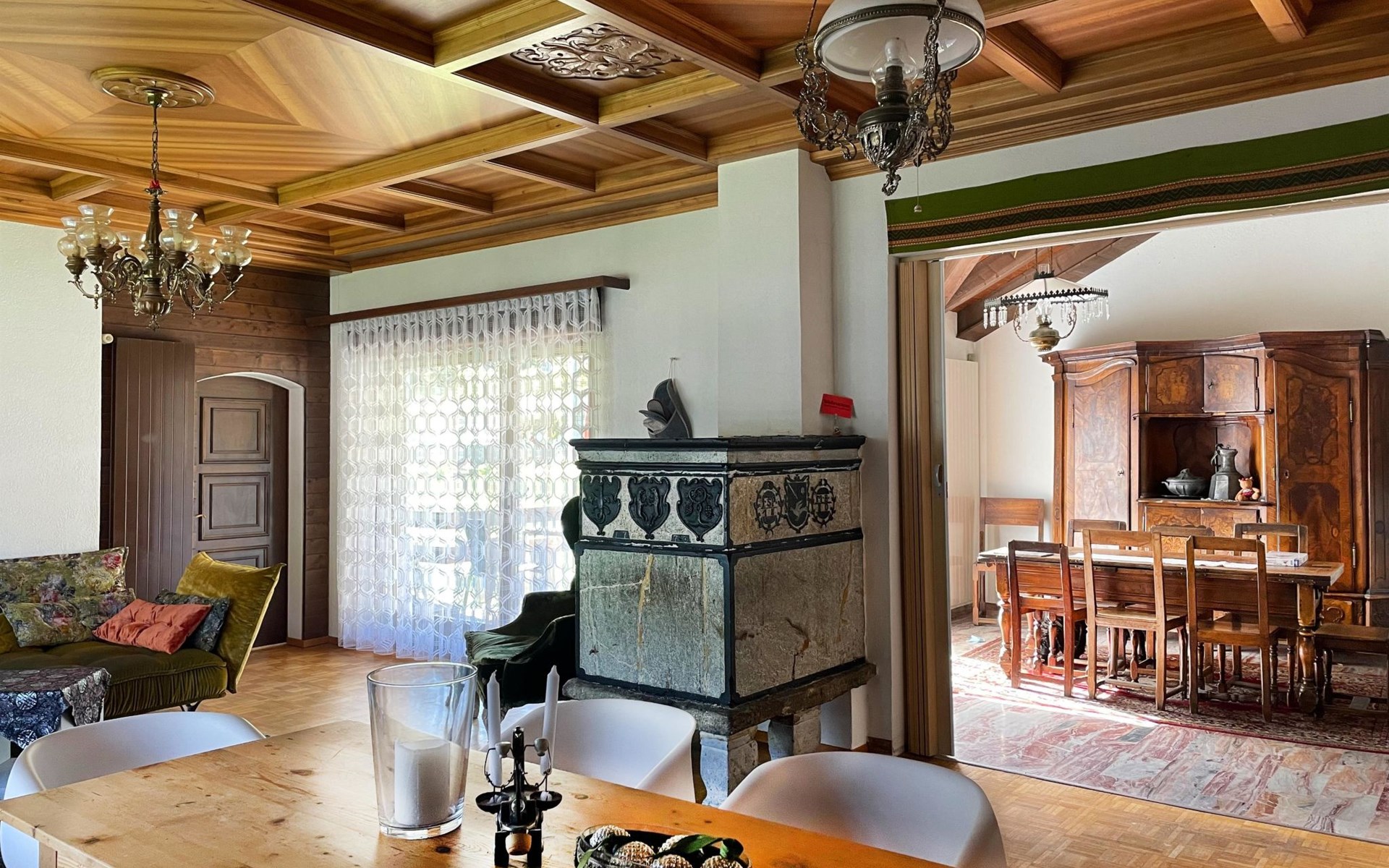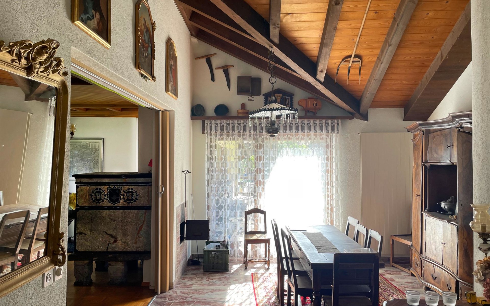 The spacious apartement has got 5 sleeping rooms, a big new kitchen, a little and a big, cosy living room with a wood oven. There's an excellent outdoor patio on the quiet sunny side of the house. All sleeping rooms offer running water. All beds and matrasses were bought in 2019. Another huge advantage is the perfectly equipped kitchen, as well from 2019, for 10 persons. Like this, the apartement is ideal for several families or groups who would like to spend the holidays together. Welcome to Fifinhaus!