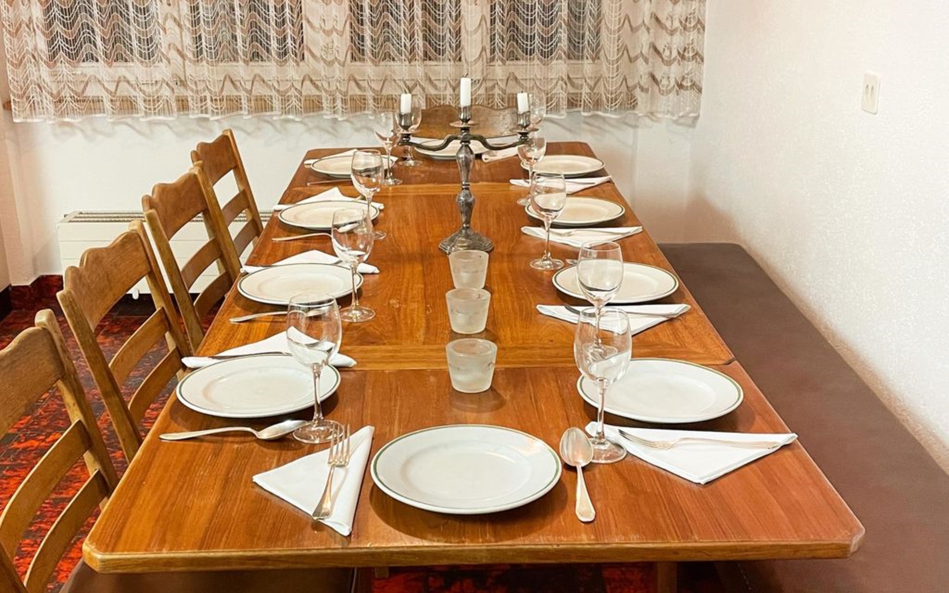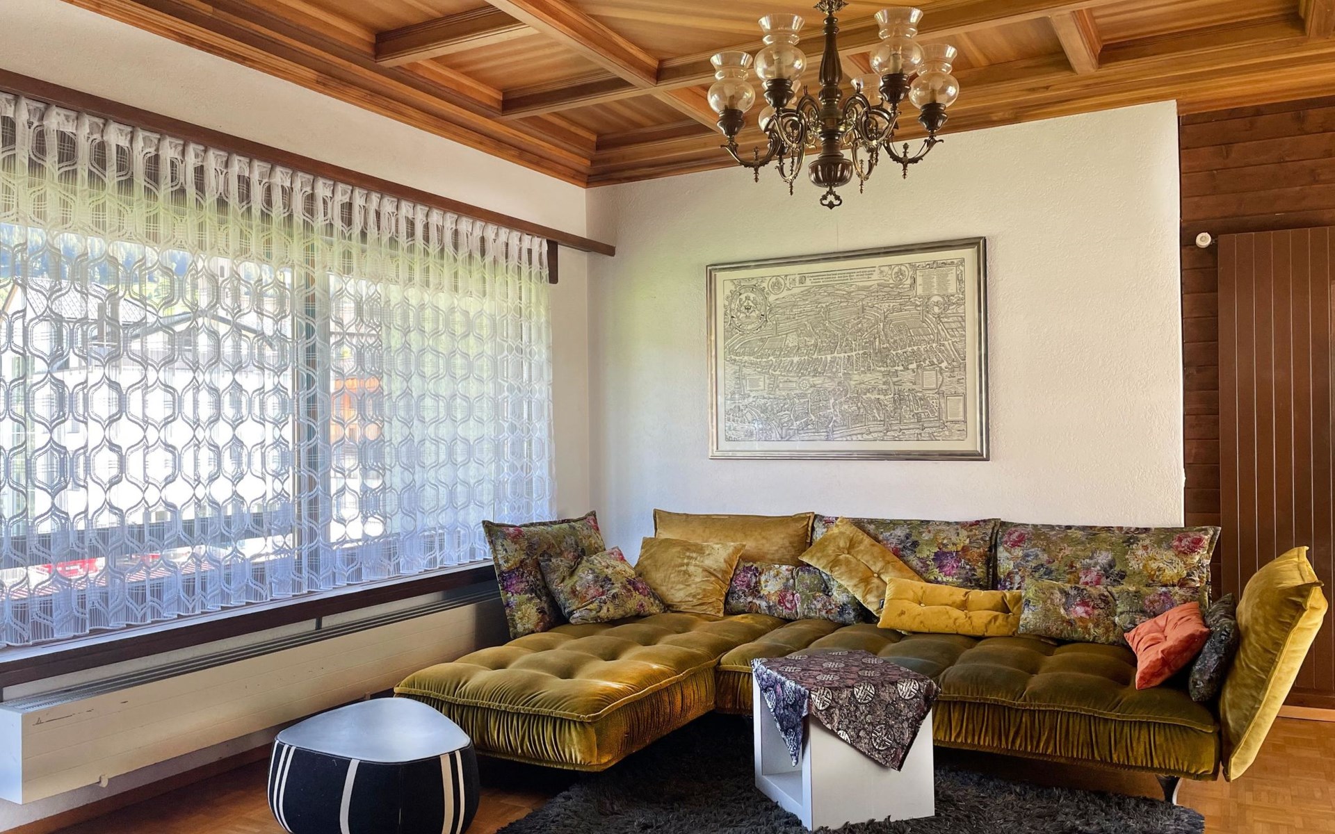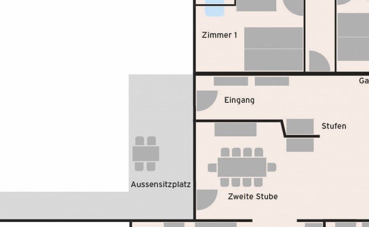 The spacious apartement has got 5 sleeping rooms, a big new kitchen, a little and a big, cosy living room with a wood oven. There's an excellent outdoor patio on the quiet sunny side of the house. All sleeping rooms offer running water. All beds and matrasses were bought in 2019. Another huge advantage is the perfectly equipped kitchen, as well from 2019, for 10 persons. Like this, the apartement is ideal for several families or groups who would like to spend the holidays together. Welcome to Fifinhaus!