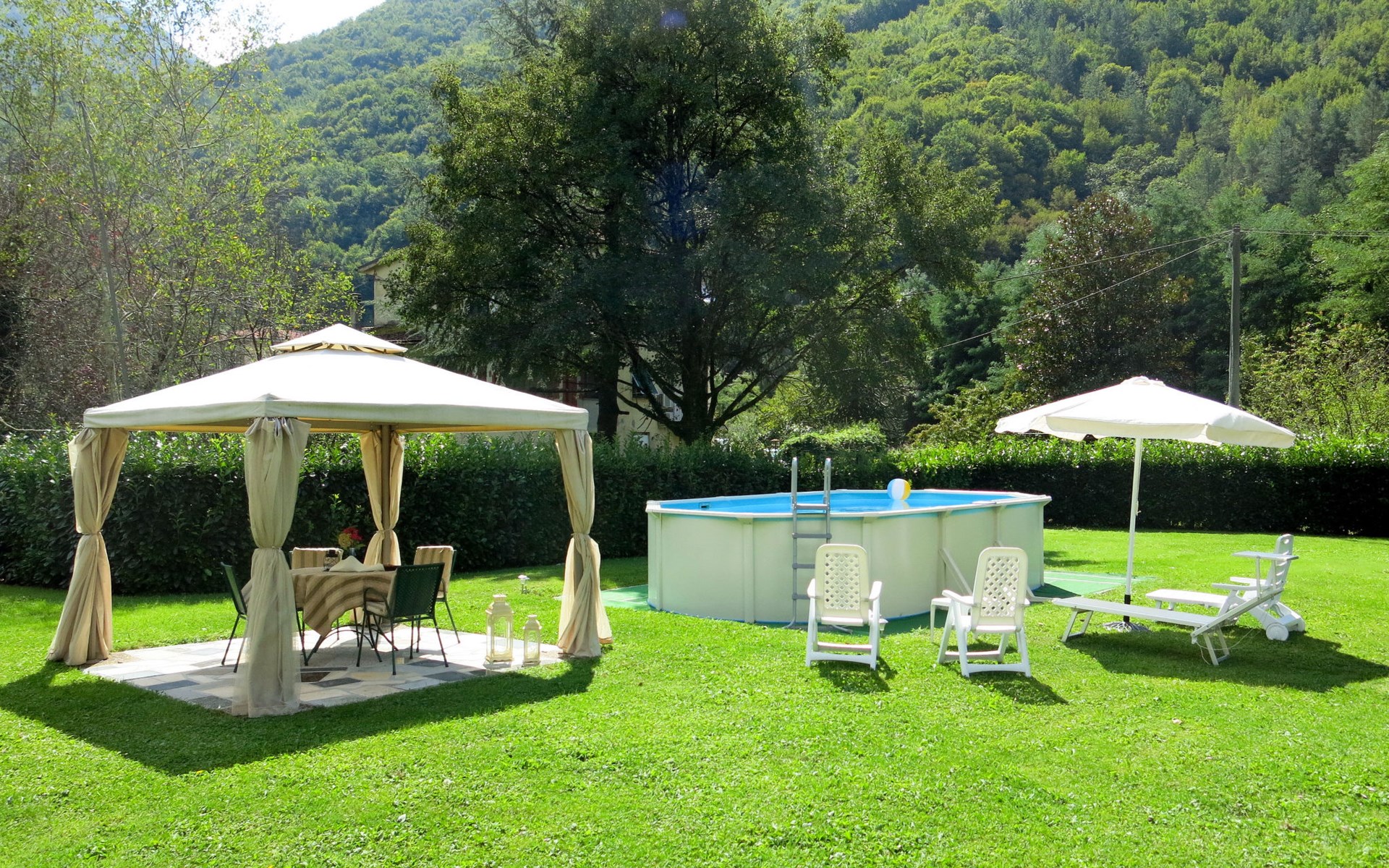 3-family house "Natalie", 250 m a.s.l.. 11 km from the centre of Bagni di Lucca, 40 km from the centre of Lucca, 56 km from the centre of Pisa, 64 km from the sea. For shared use: property 1 ha (fenced) with plants and trees, lawn for sunbathing, swimming pool (above ground) (6 x 3 m, depth 120 cm, seasonal availability: 15.May. - 20.Sep.). Pergola, garden furniture, barbecue, pool maintenance by the owner/gardener. Stepped path (20 steps) to the house. Parking on the premises. Shop 500 m, supermarket 11 km, bus stop 10 m. Please note: the owner lives in the same residence.