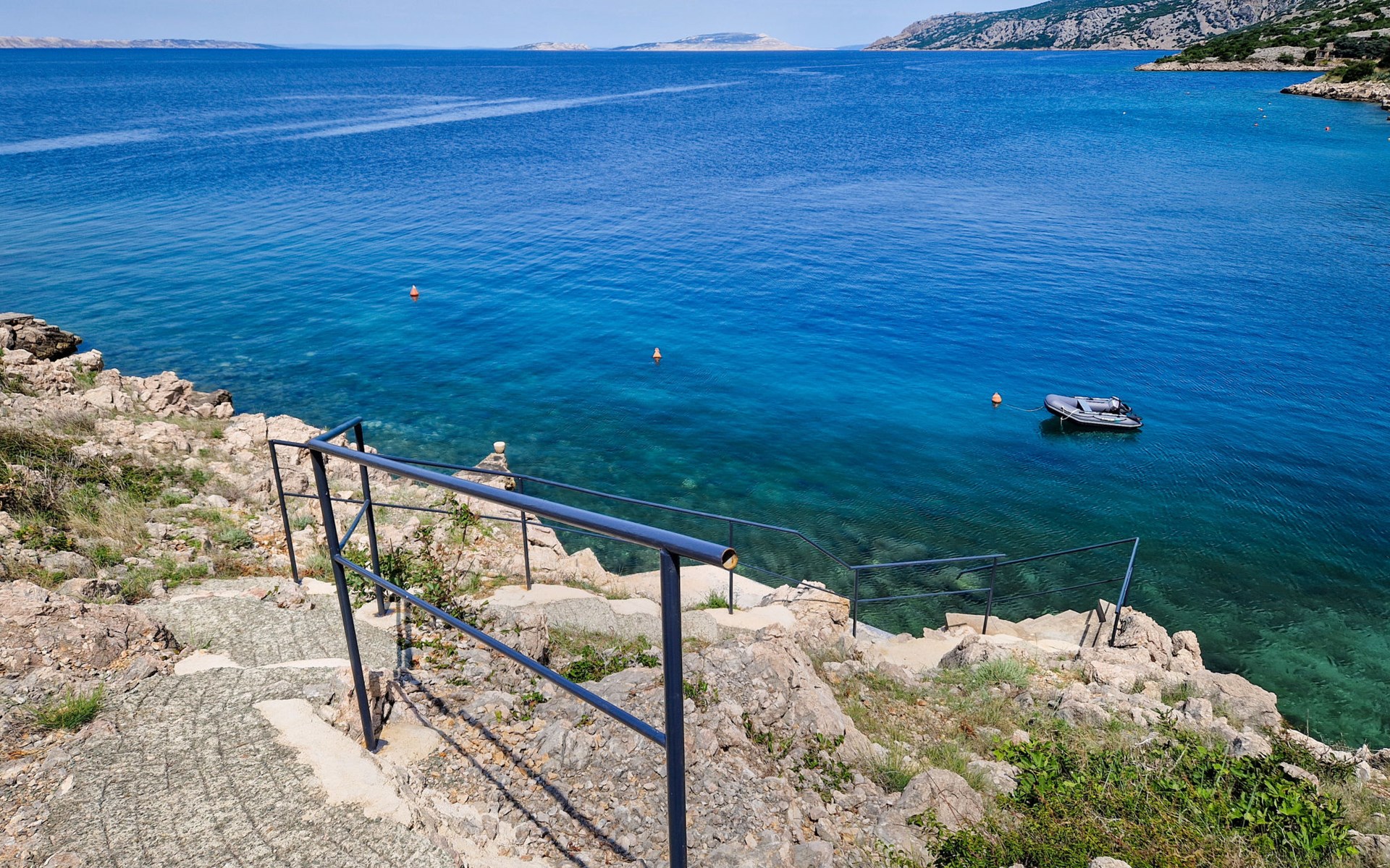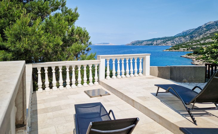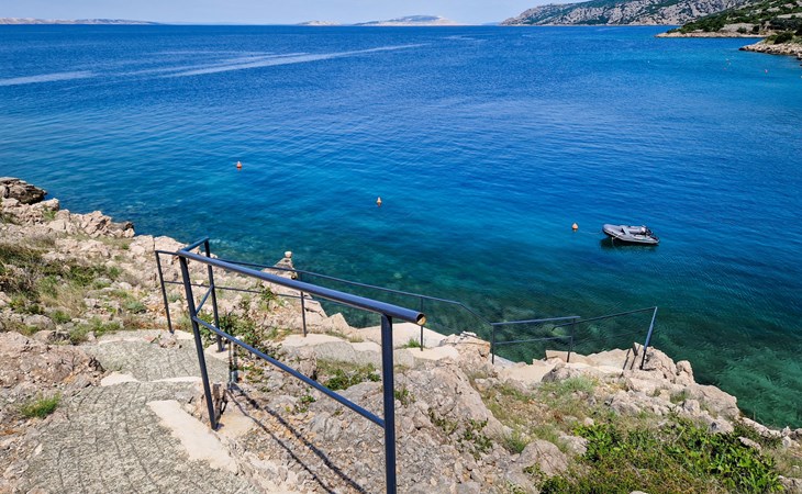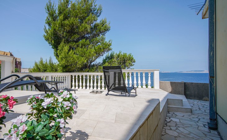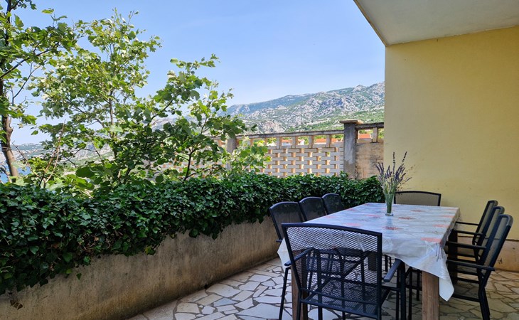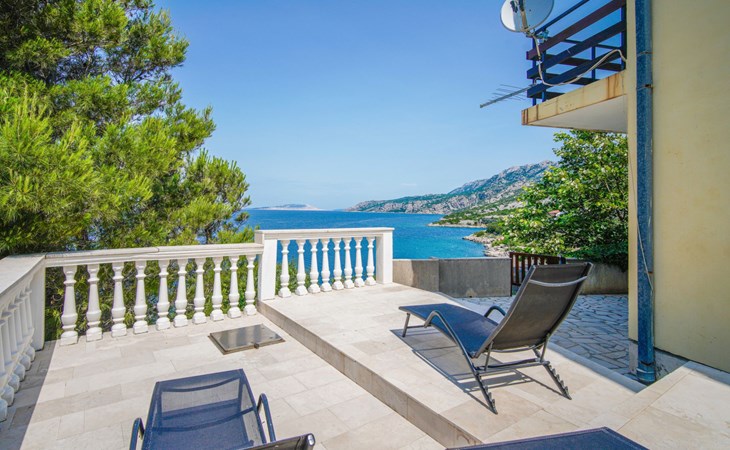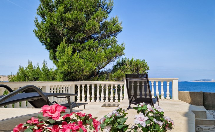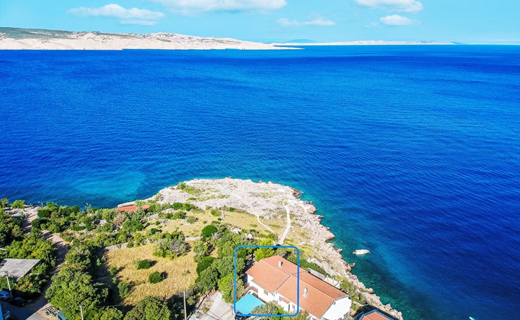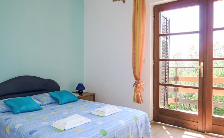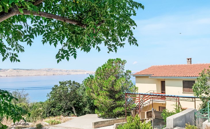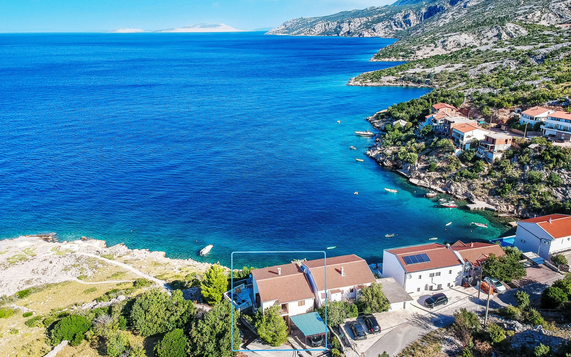 Prizna: 2-family house "Mara", 2 storeys. In the resort 10 km from the centre of Karlobag, 20 m from the sea, 20 m from the beach. Private: property 500 m2. Outdoor shower, barbecue. In the house: internet access. Parking (for 2 cars) on the premises. Shop 10 km, bus stop 550 m, ferry 600 m, rocky beach 20 m. The owner does not accept any youth groups.