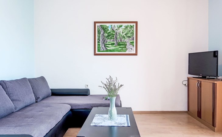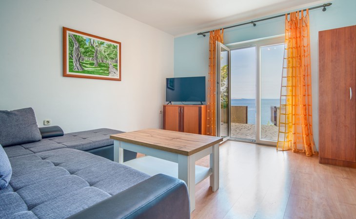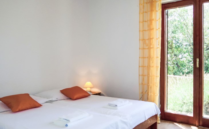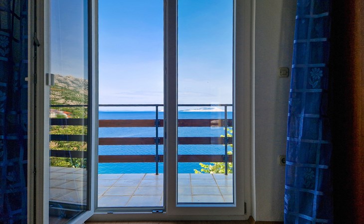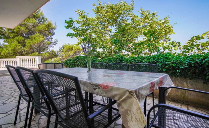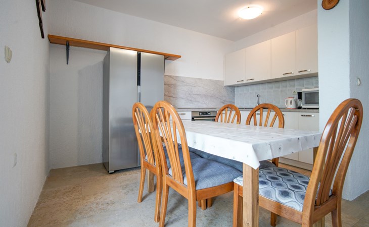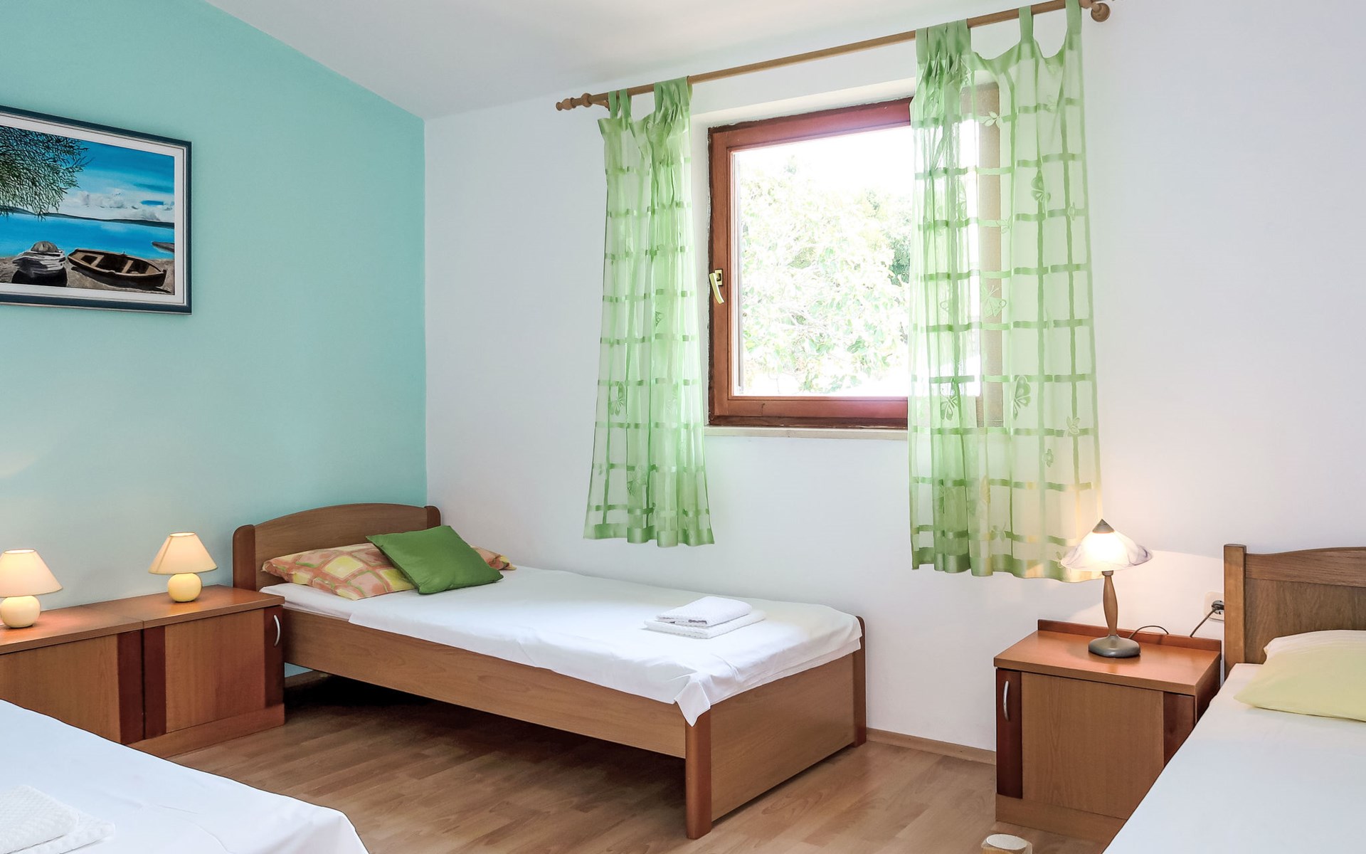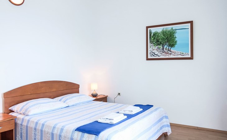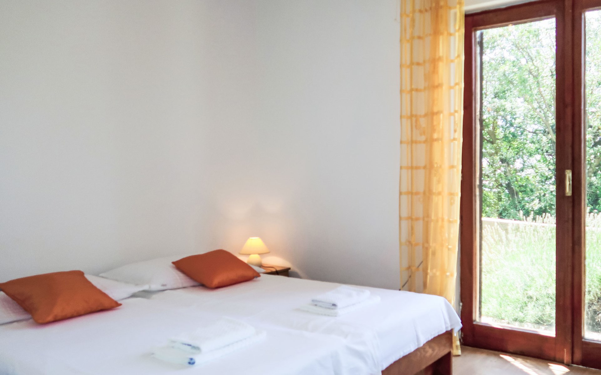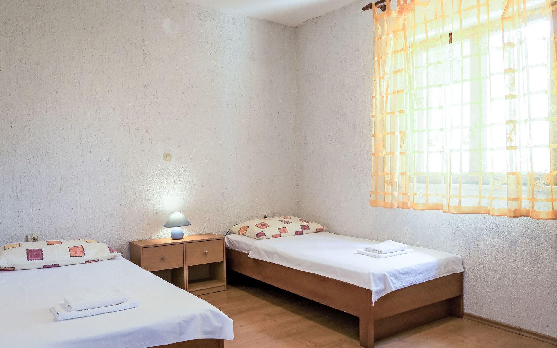Prizna: 2-family house "Mara", 2 storeys. In the resort 10 km from the centre of Karlobag, 20 m from the sea, 20 m from the beach. Private: property 500 m2. Outdoor shower, barbecue. In the house: internet access. Parking (for 2 cars) on the premises. Shop 10 km, bus stop 550 m, ferry 600 m, rocky beach 20 m. The owner does not accept any youth groups.
