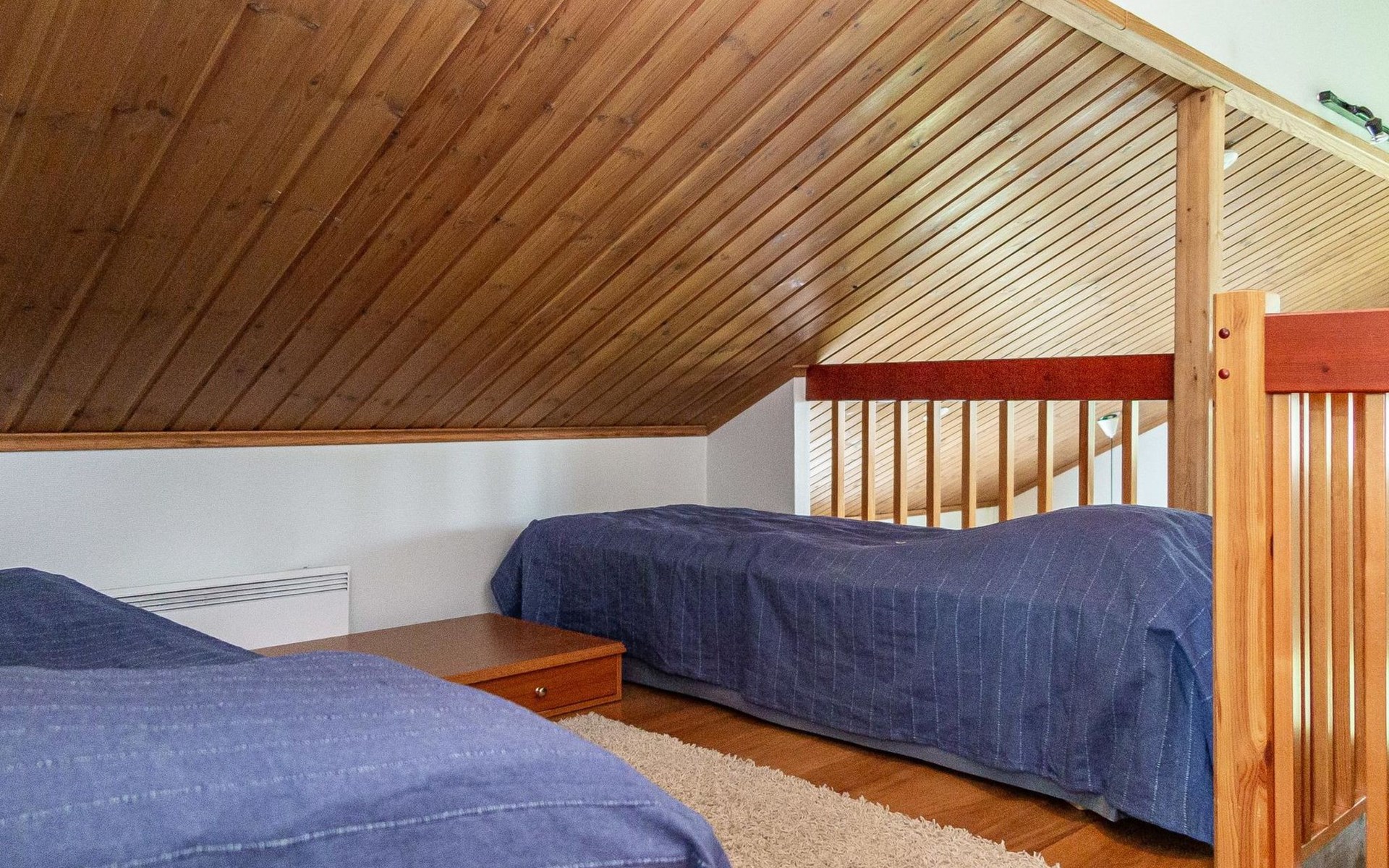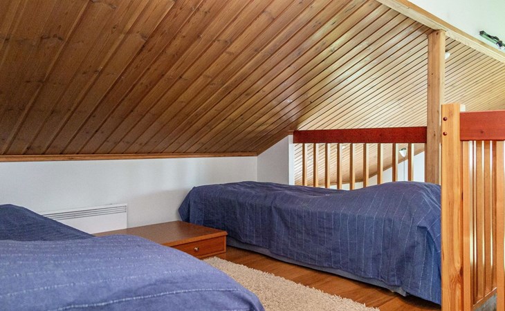 In this semi-detached apartment you have downstairs a living room/kitchen, a bedroom with 2 beds, a washroom, a separate toilet, sauna (electric stove), a hall and a terrace. The loft has a bedroom with 2 beds and 2 extra beds in the lobby lof the loft. Wifi, Air source heat pump for additional heating and cooling. Distance to the ski slopes approx. 0.8 km, to the spa 0.5 km. 0.4 km to Lake Syväri, 1.5 km to the common shore, no own boat, 13 km to Nilsiä, 65 km to Kuopio. Tahko Golf 0.1km, IKEA and Matkus shopping center 70km. Tahko Old Course 0.1km.