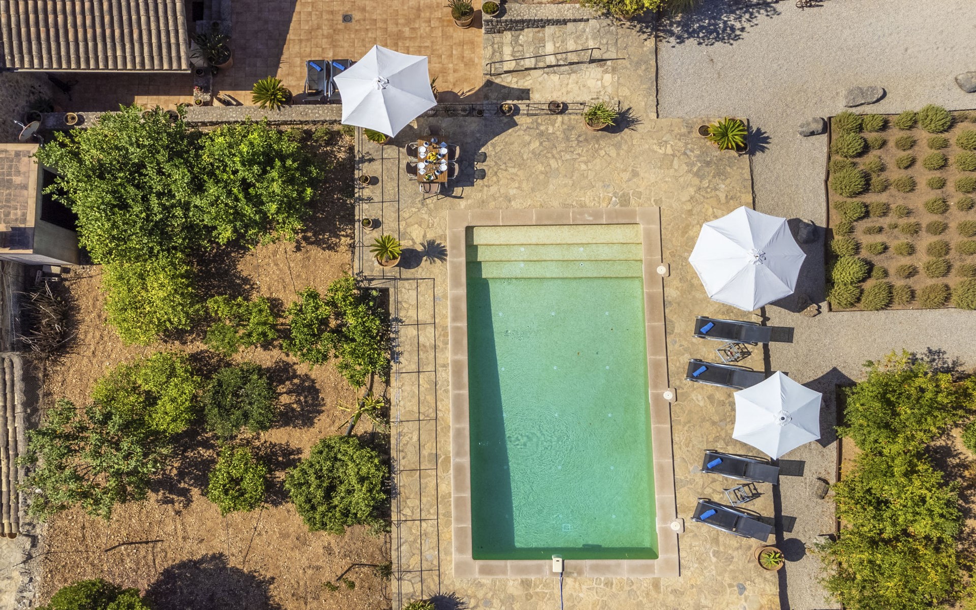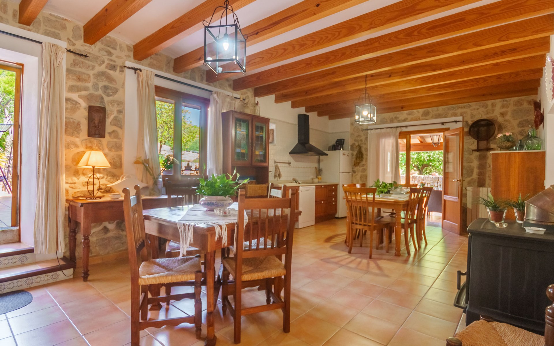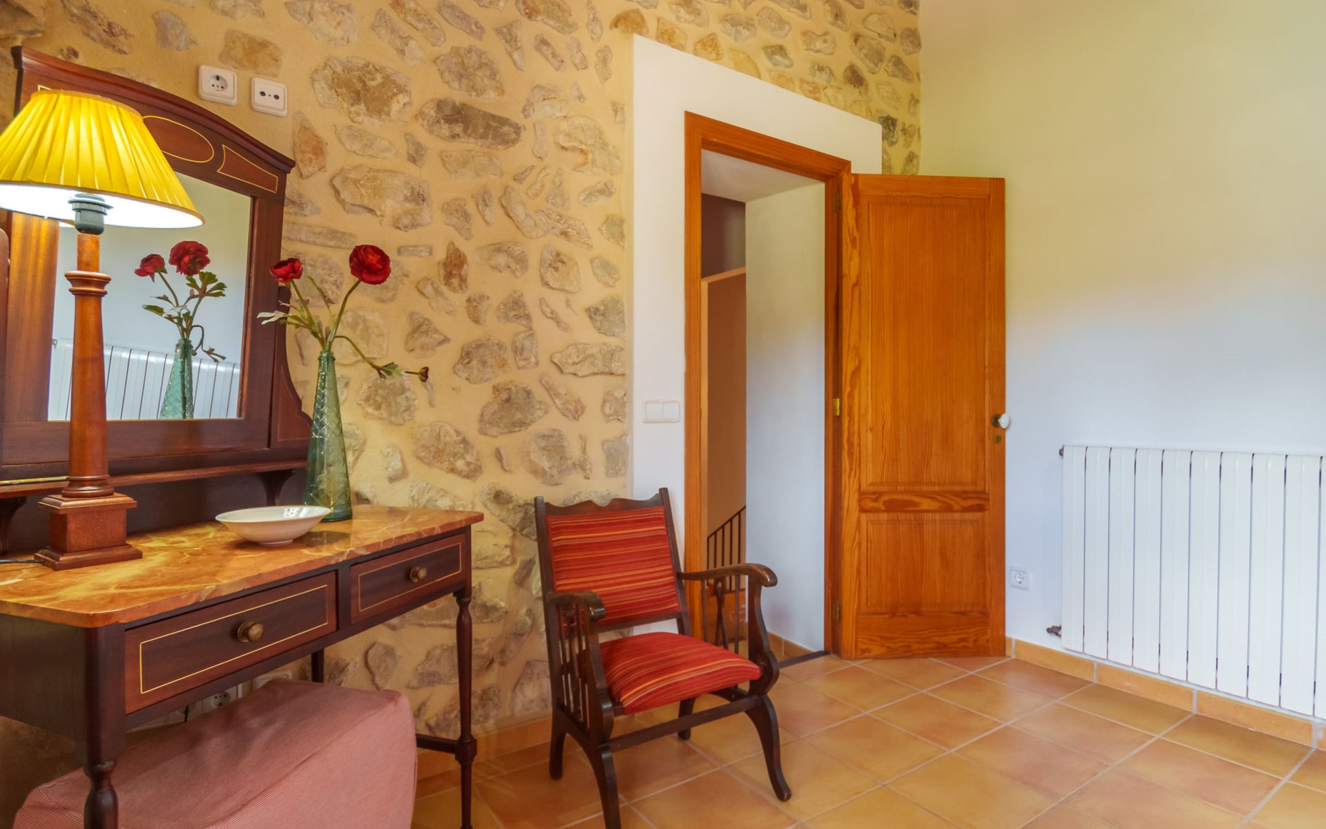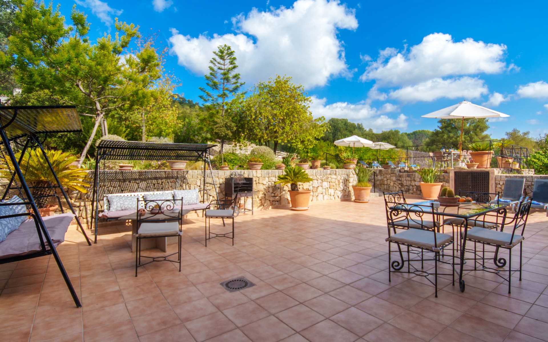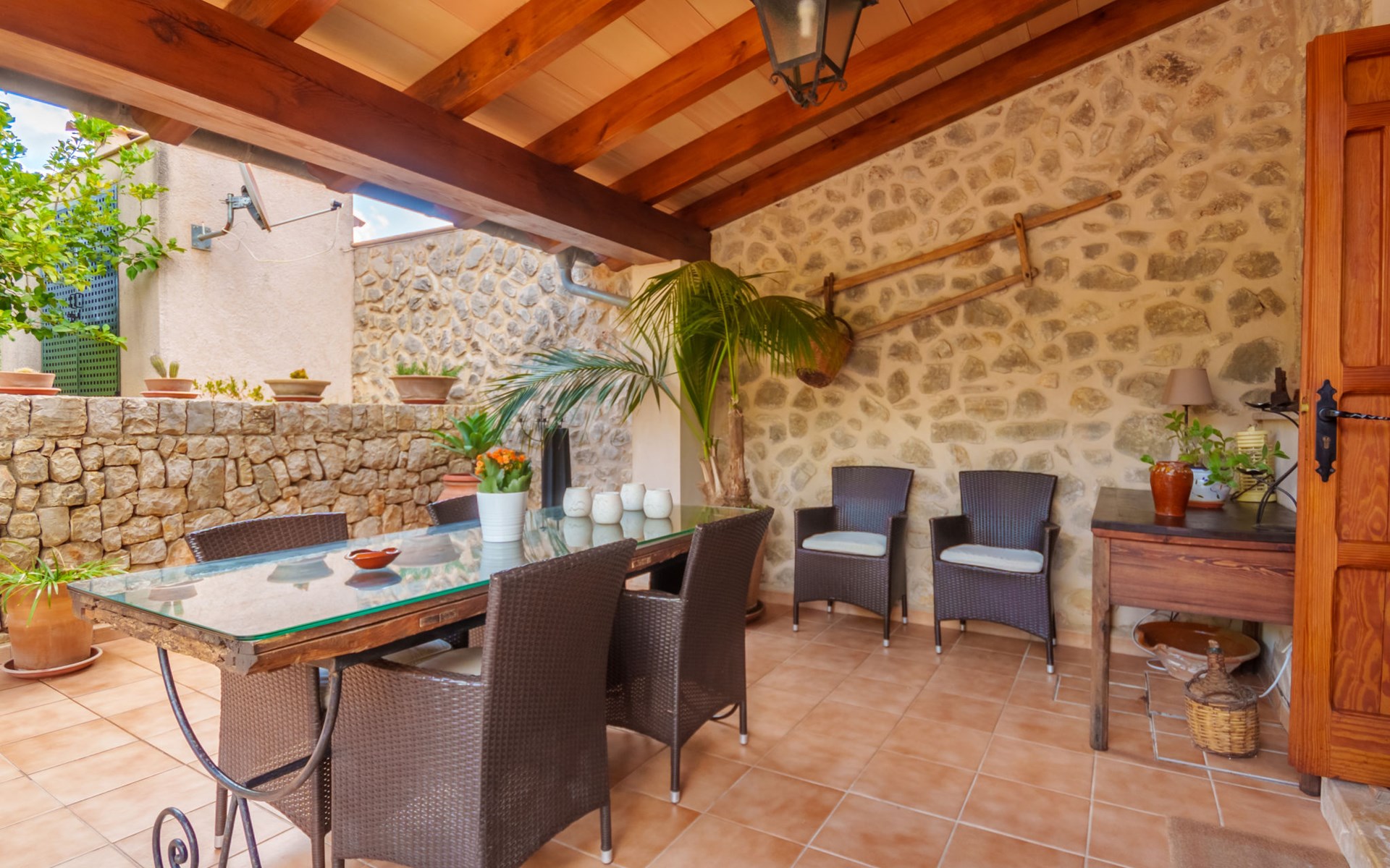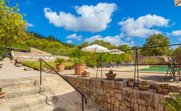 Beautiful, historical house "Sa Rota", from the 19th century. 200 m from the centre of Biniamar, on the outskirts, 5 km from the centre of Inca, 31 km from the centre of Alcudia, in an elevated position, 30 km from the sea. Private: property 2'500 m2 (fenced), beautiful terraced garden with wildlife garden and trees, orchard, swimming pool (9 x 5 m, seasonal availability: 01.Jan. - 31.Dec.) with salt-electrolysis pool-cleaning system. Outdoor shower. Stepped path (6 steps) to the house. Roofed, parking on the premises. Shop 4 km, bus stop "Biniamar" 300 m, sandy beach "Playa de Muro" 30 km. Please note: car recommended.