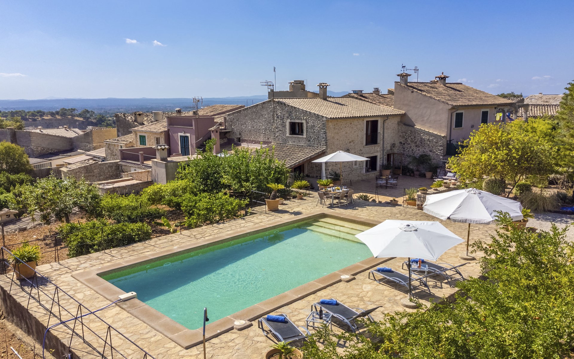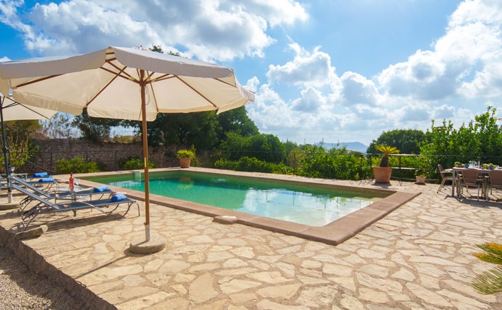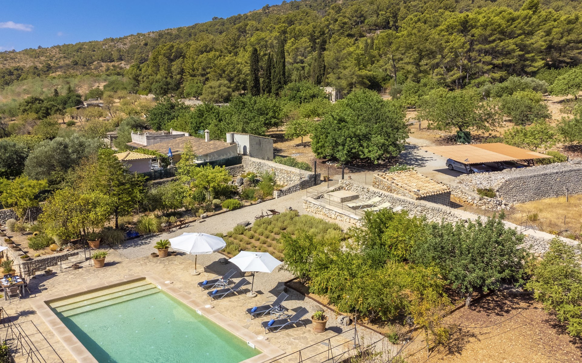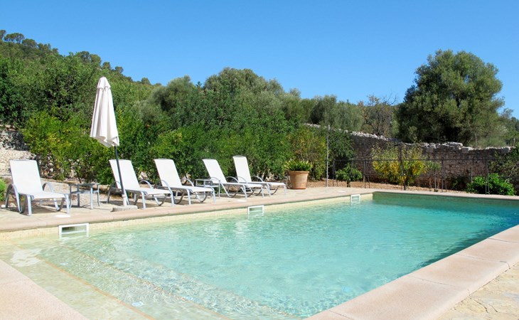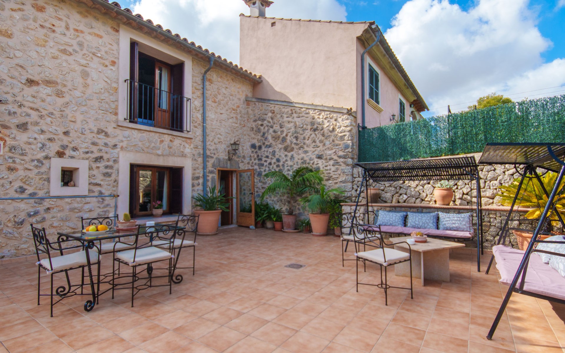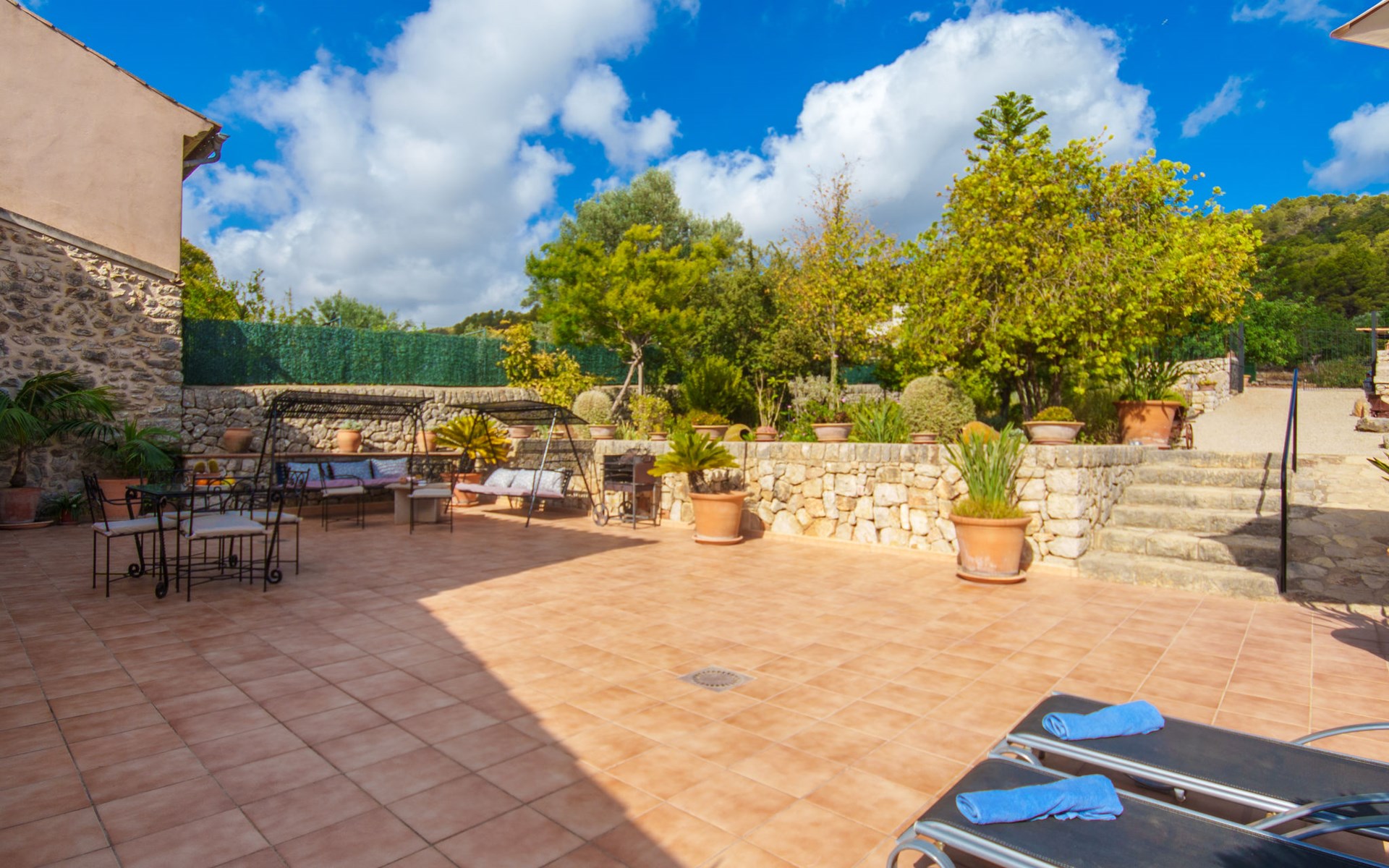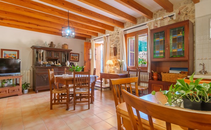 Beautiful, historical house "Sa Rota", from the 19th century. 200 m from the centre of Biniamar, on the outskirts, 5 km from the centre of Inca, 31 km from the centre of Alcudia, in an elevated position, 30 km from the sea. Private: property 2'500 m2 (fenced), beautiful terraced garden with wildlife garden and trees, orchard, swimming pool (9 x 5 m, seasonal availability: 01.Jan. - 31.Dec.) with salt-electrolysis pool-cleaning system. Outdoor shower. Stepped path (6 steps) to the house. Roofed, parking on the premises. Shop 4 km, bus stop "Biniamar" 300 m, sandy beach "Playa de Muro" 30 km. Please note: car recommended.