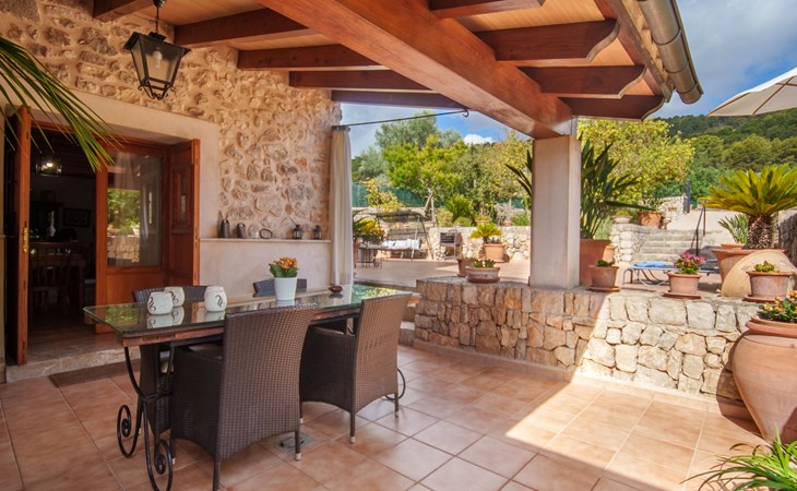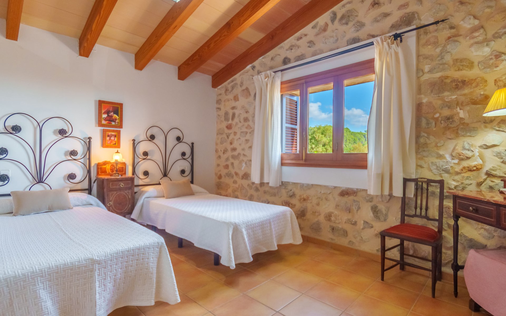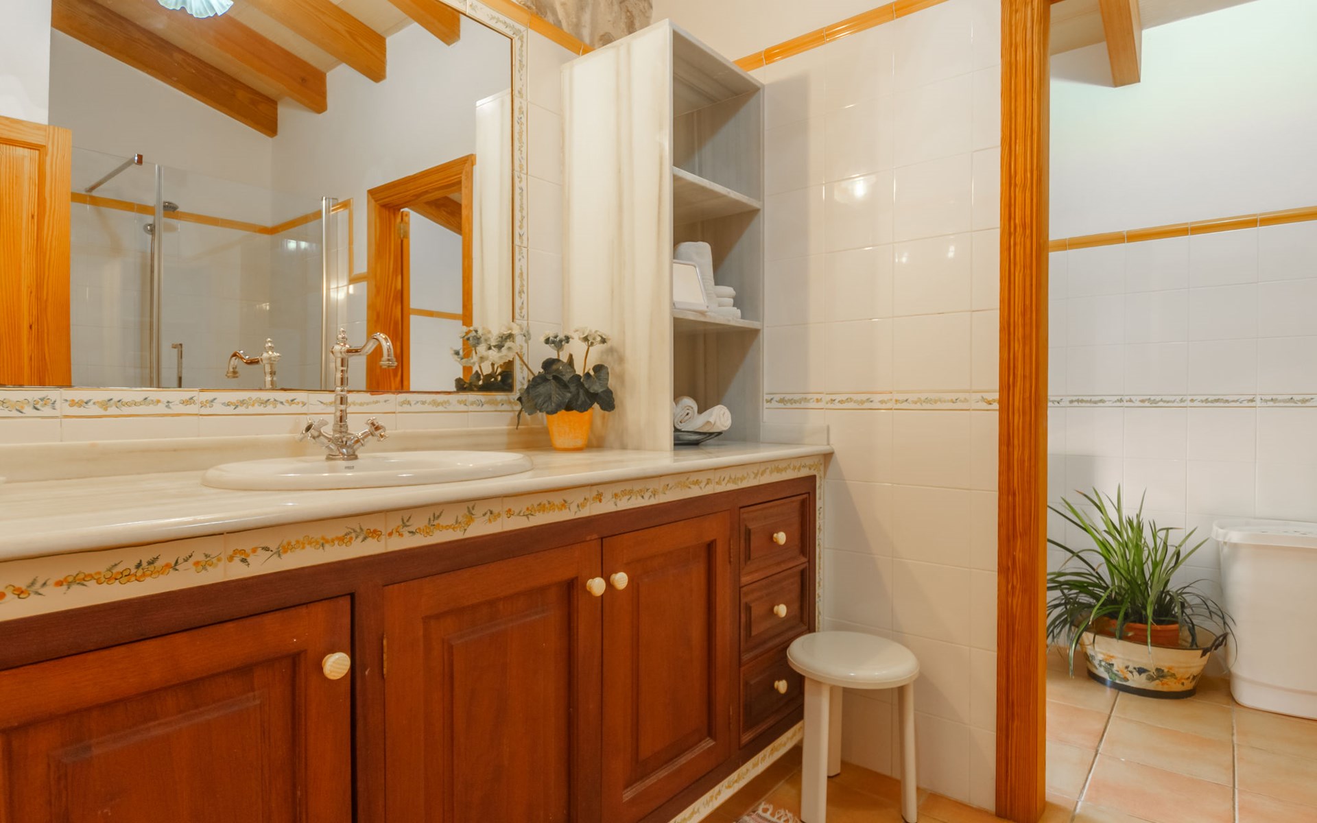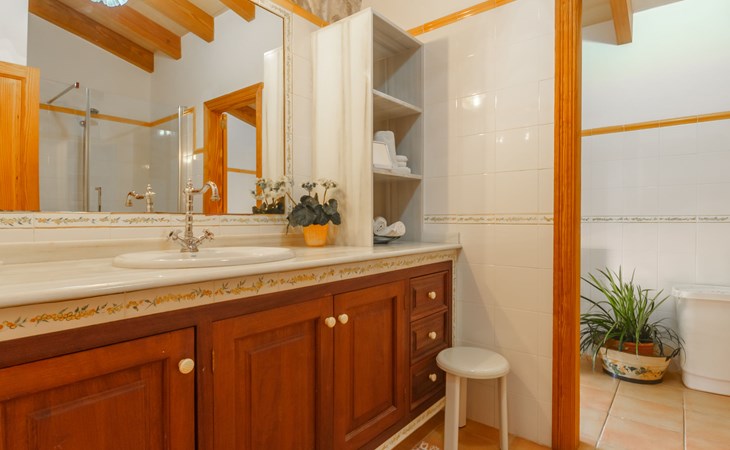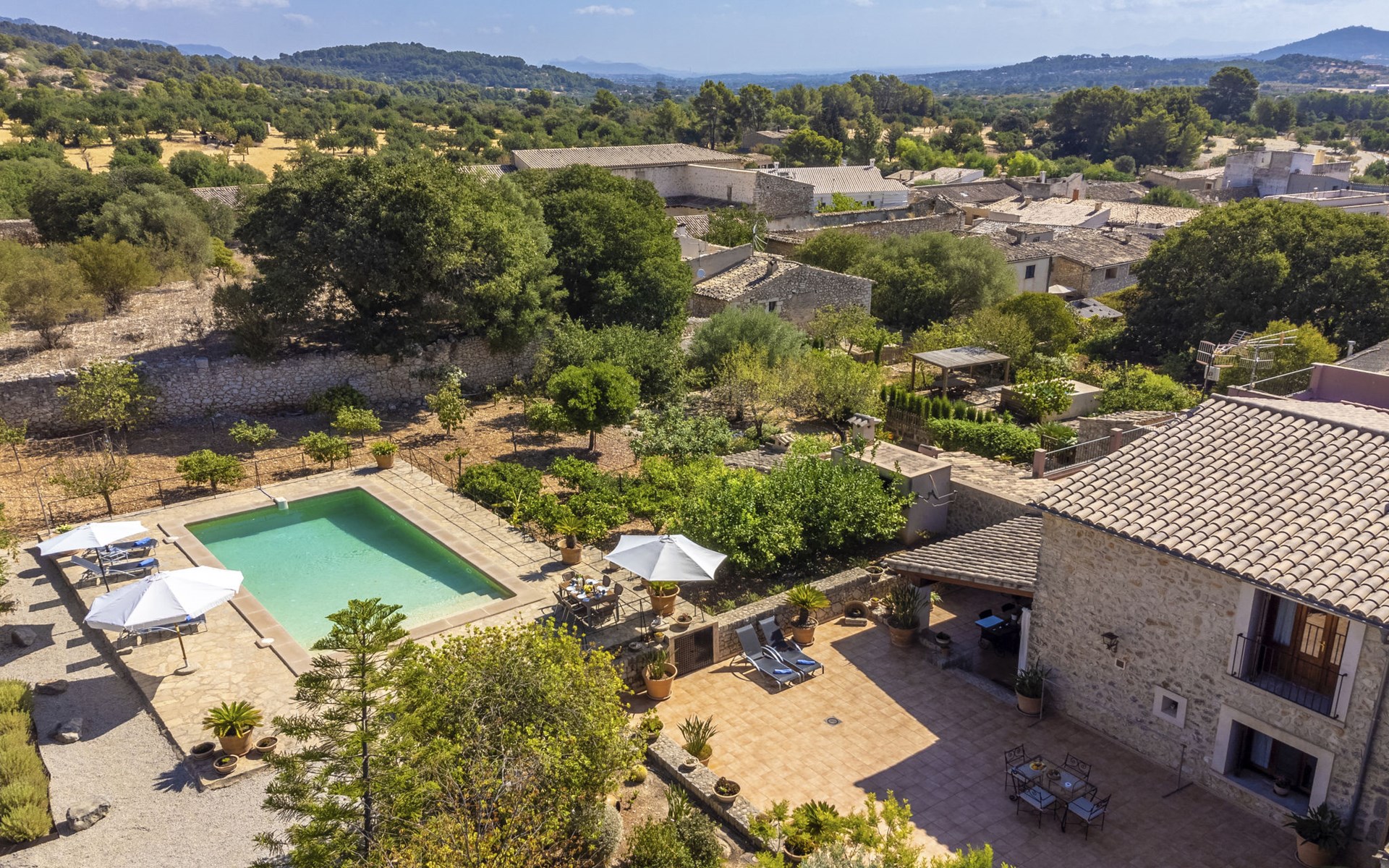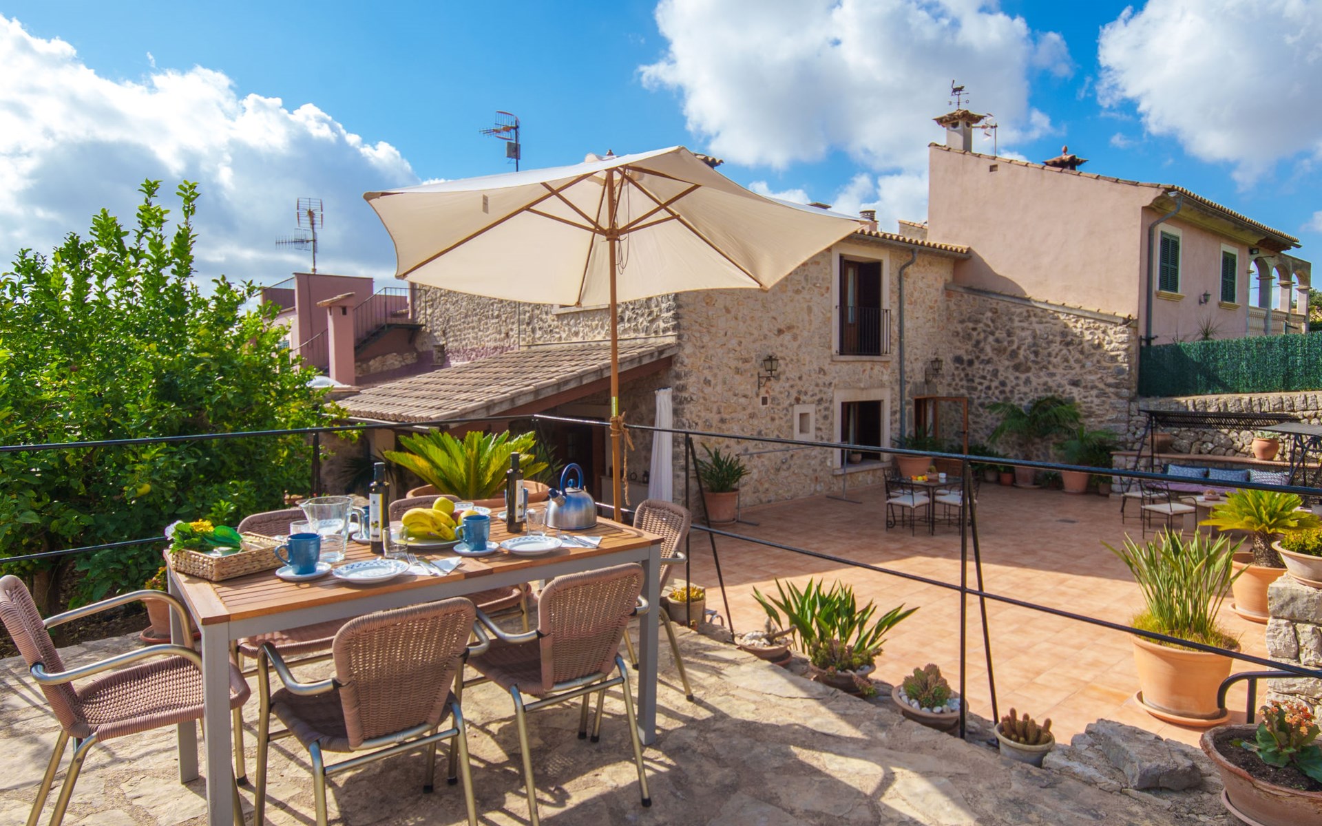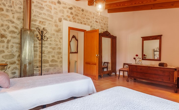 Beautiful, historical house "Sa Rota", from the 19th century. 200 m from the centre of Biniamar, on the outskirts, 5 km from the centre of Inca, 31 km from the centre of Alcudia, in an elevated position, 30 km from the sea. Private: property 2'500 m2 (fenced), beautiful terraced garden with wildlife garden and trees, orchard, swimming pool (9 x 5 m, seasonal availability: 01.Jan. - 31.Dec.) with salt-electrolysis pool-cleaning system. Outdoor shower. Stepped path (6 steps) to the house. Roofed, parking on the premises. Shop 4 km, bus stop "Biniamar" 300 m, sandy beach "Playa de Muro" 30 km. Please note: car recommended.