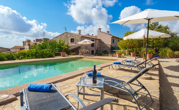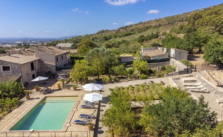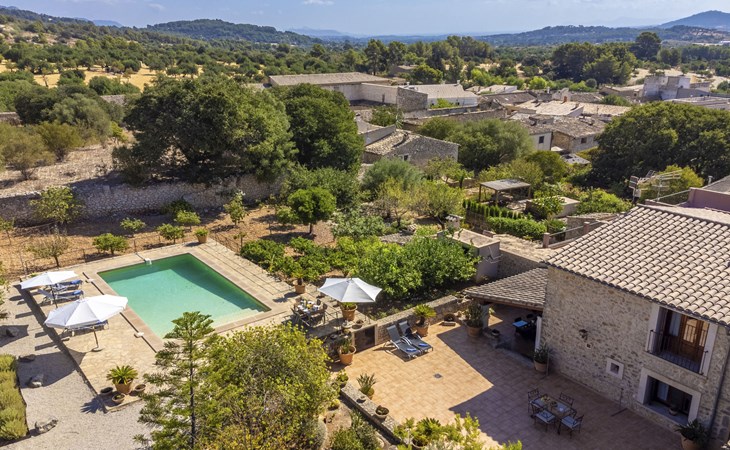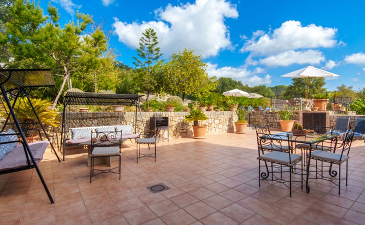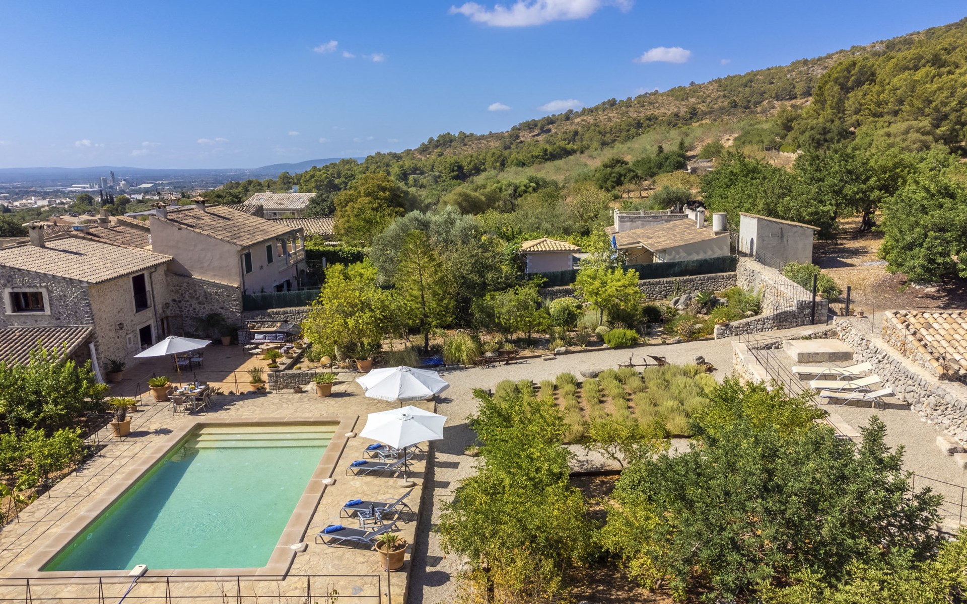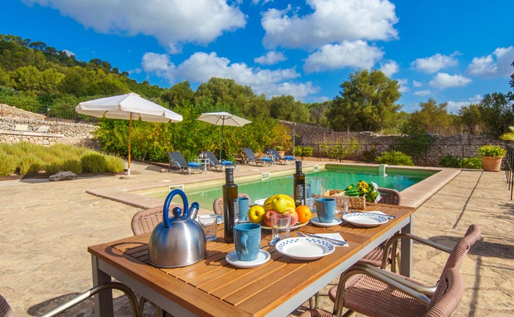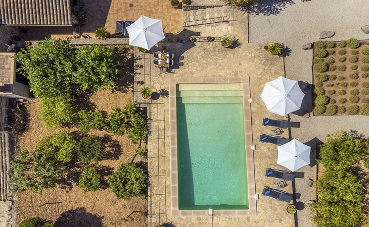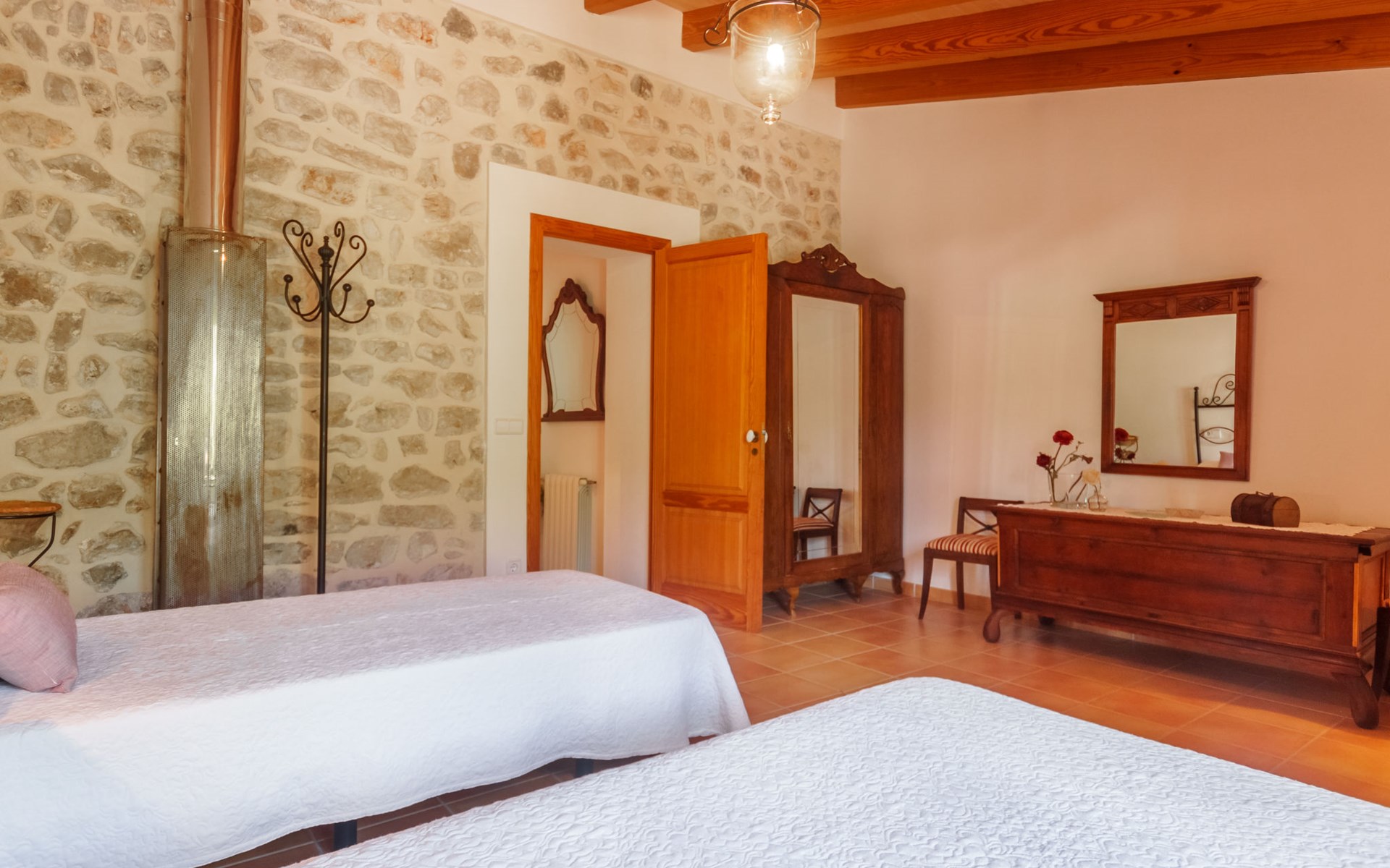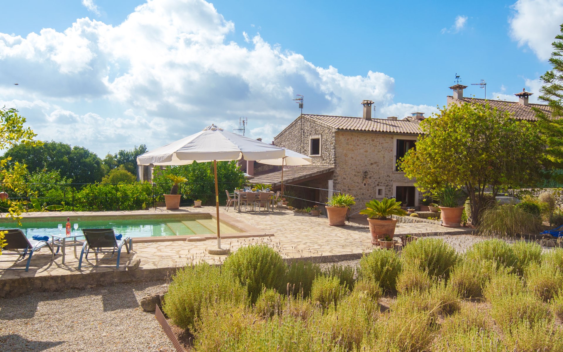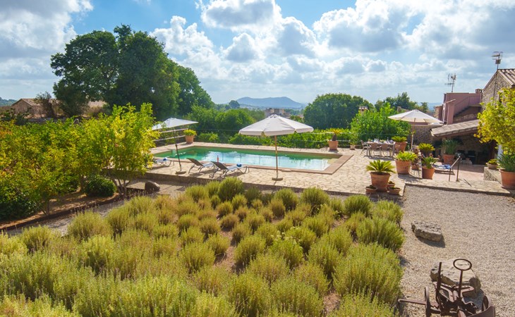 Beautiful, historical house "Sa Rota", from the 19th century. 200 m from the centre of Biniamar, on the outskirts, 5 km from the centre of Inca, 31 km from the centre of Alcudia, in an elevated position, 30 km from the sea. Private: property 2'500 m2 (fenced), beautiful terraced garden with wildlife garden and trees, orchard, swimming pool (9 x 5 m, seasonal availability: 01.Jan. - 31.Dec.) with salt-electrolysis pool-cleaning system. Outdoor shower. Stepped path (6 steps) to the house. Roofed, parking on the premises. Shop 4 km, bus stop "Biniamar" 300 m, sandy beach "Playa de Muro" 30 km. Please note: car recommended.