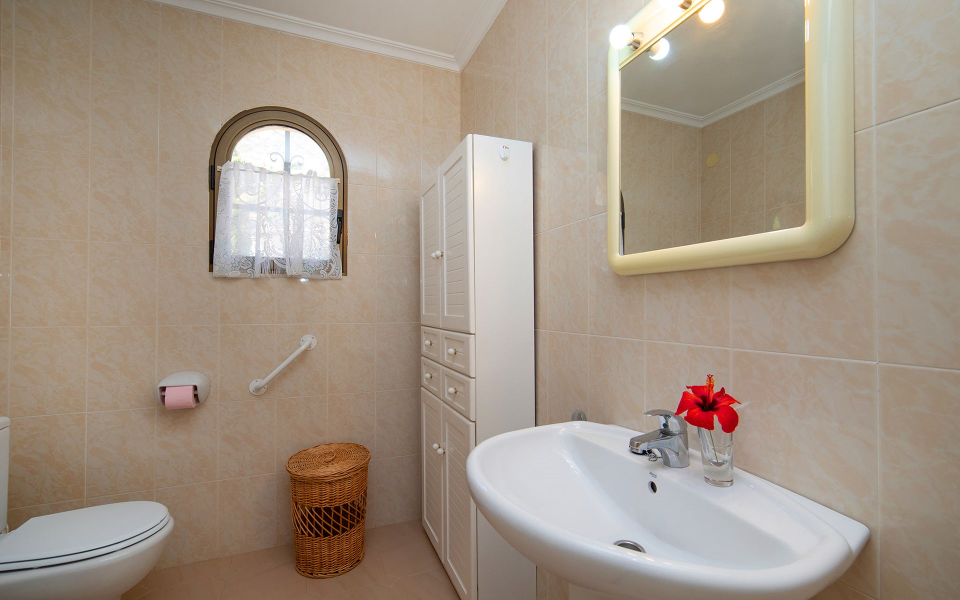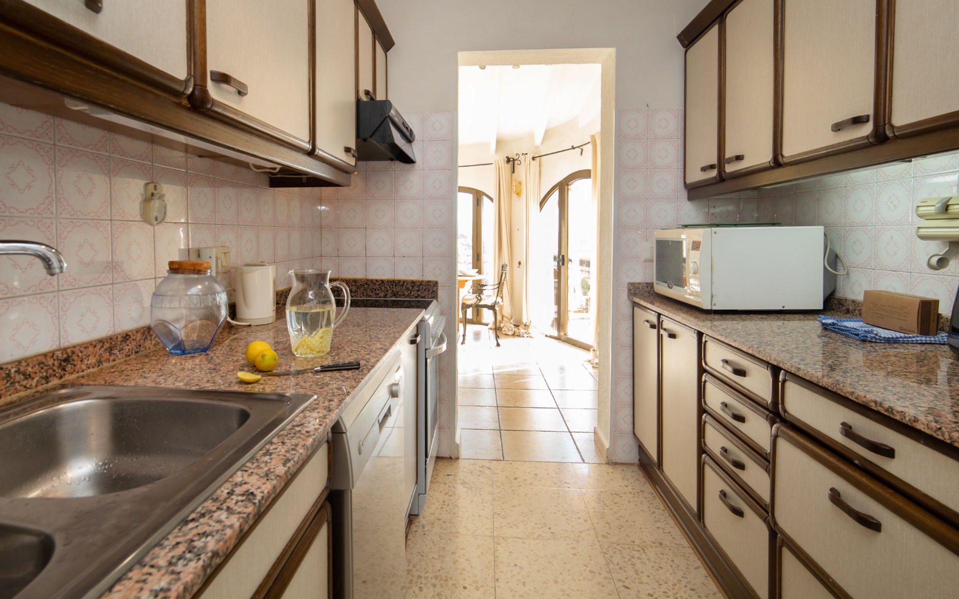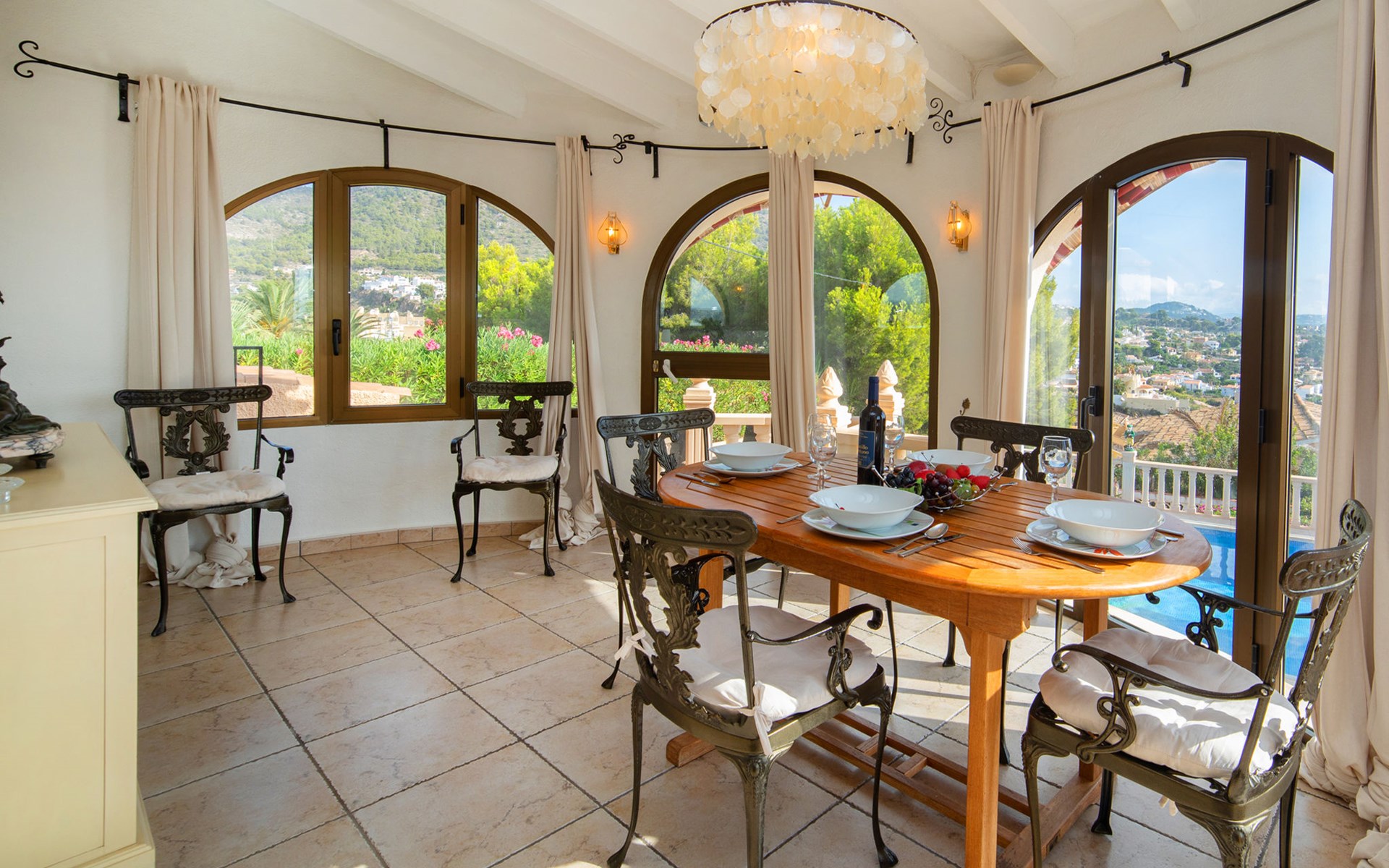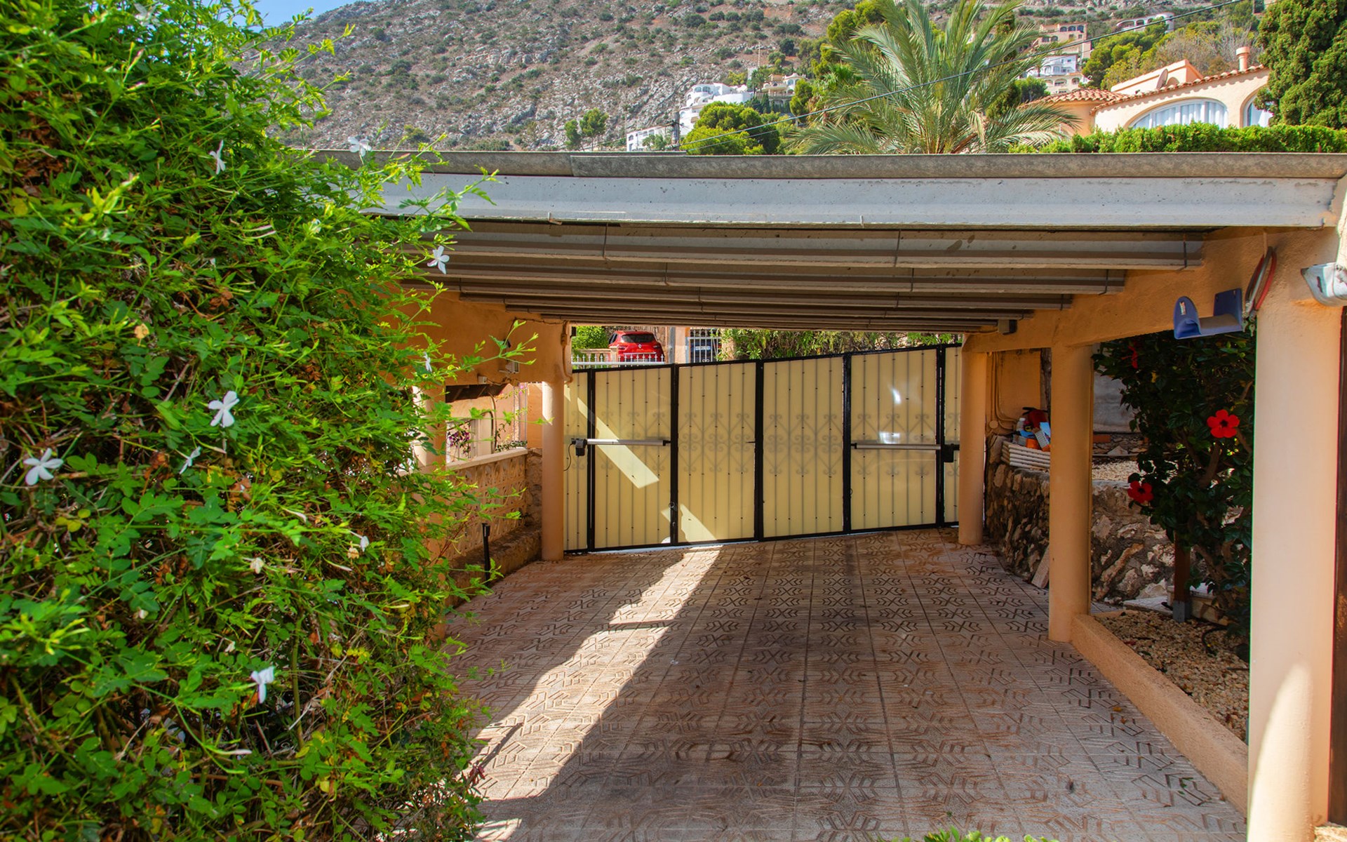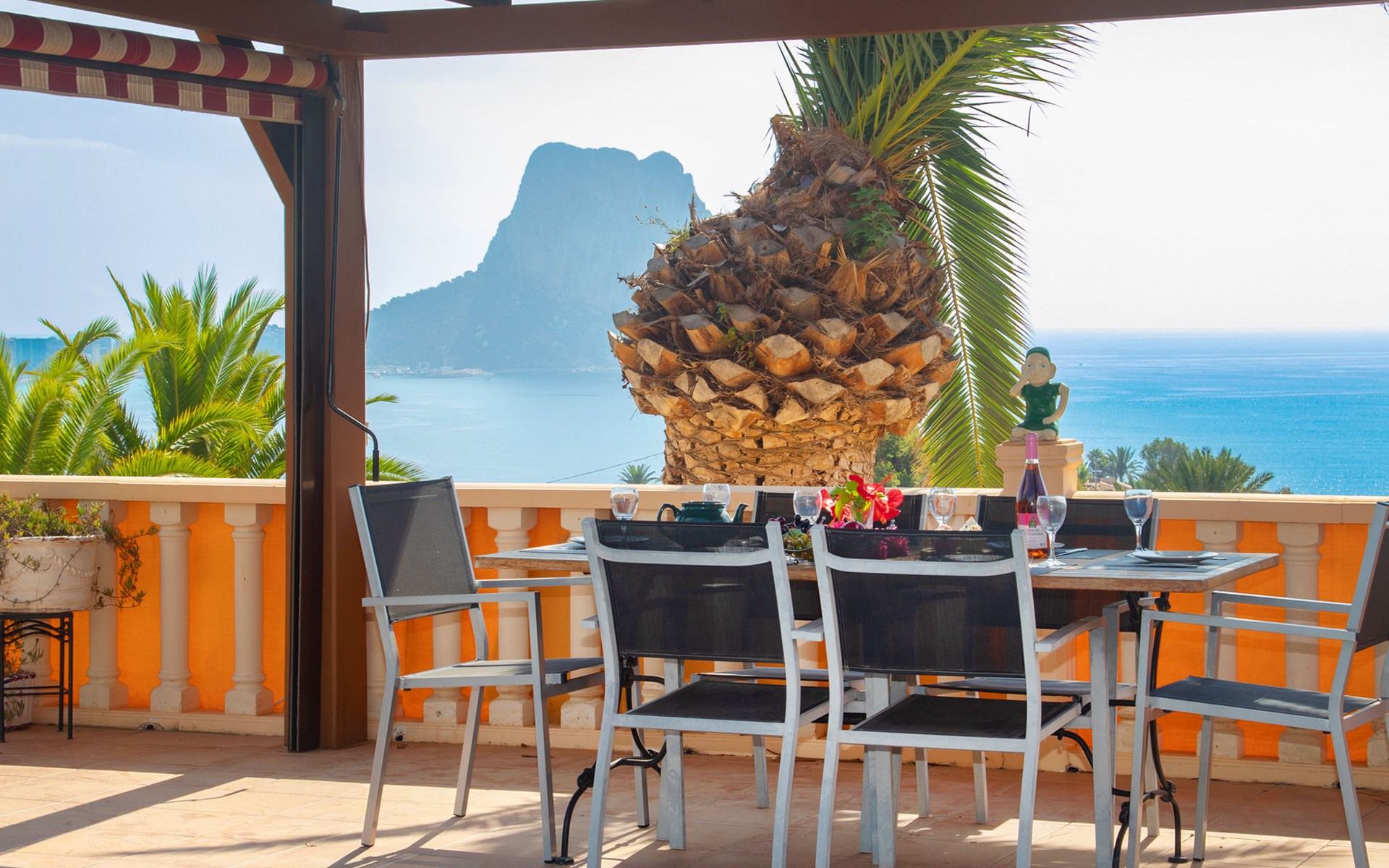 Maryvilla: Beautiful house "Leon", 2 storeys. 2 km from the centre of Calpe, in a sunny, elevated position residential area (villas), 400 m from the sea, 950 m from the beach. Private: property (fenced), swimming pool (10 x 5 m, seasonal availability: 01.Jan. - 31.Dec.). Outdoor shower, pool house with fridge and cooking stove, terrace, garden furniture, barbecue. Grocery 2 km, supermarket 2 km, restaurant, bar 50 m, bus stop "Parada Bus" 2.1 km, sandy beach "Playa Arenal" 3 km, rocky beach "Cala Les Urques" 400 m. Sports harbour 5 km, golf course (9 hole) 15 km. Nearby attractions: Aqualandia, Mundomar, Terra MÃtica, Terra Natura, Benidorm Palace (Benidorm), Les Fonts de l'Algar, Castillo de Guadalest. The owner does not accept any youth groups.