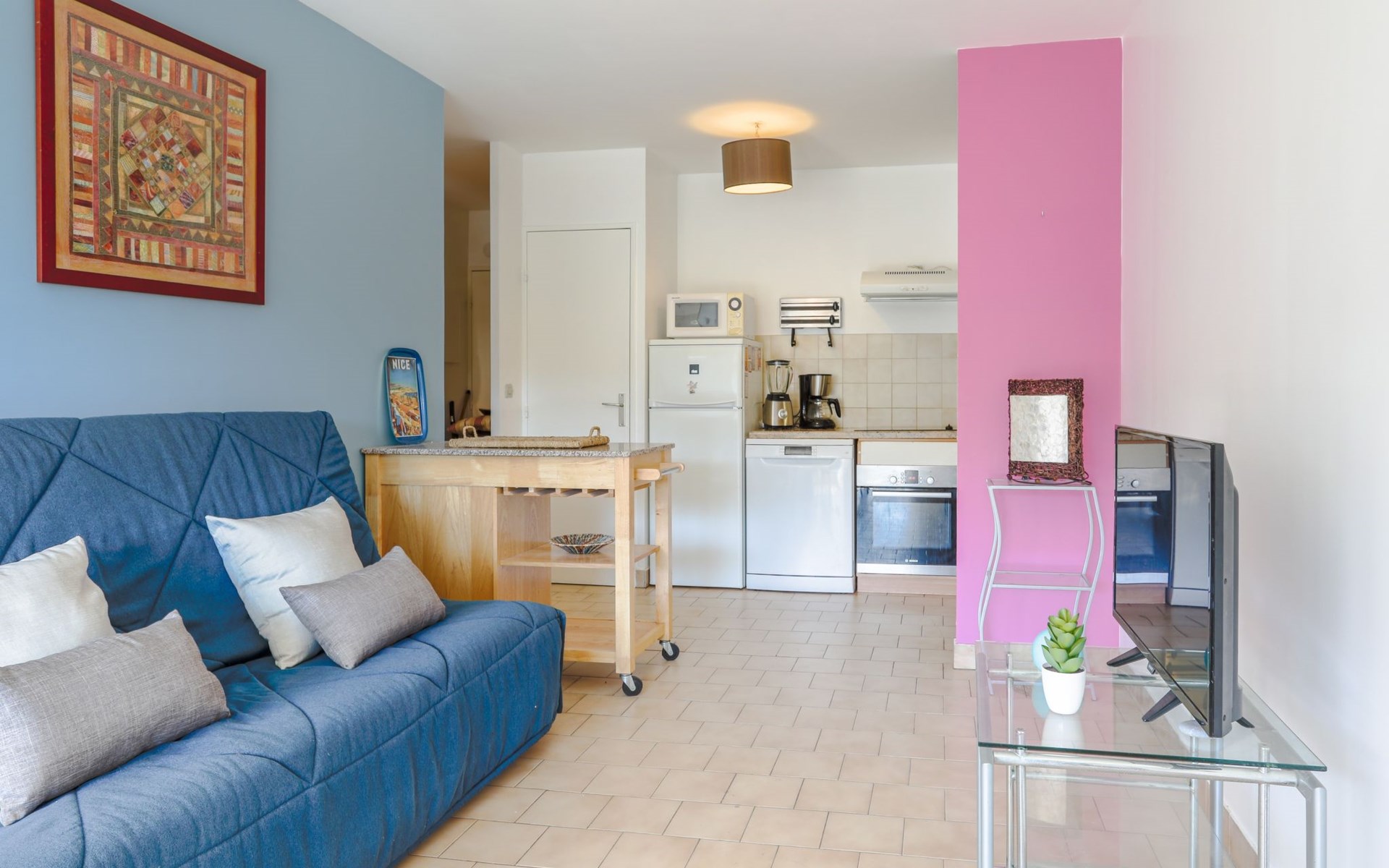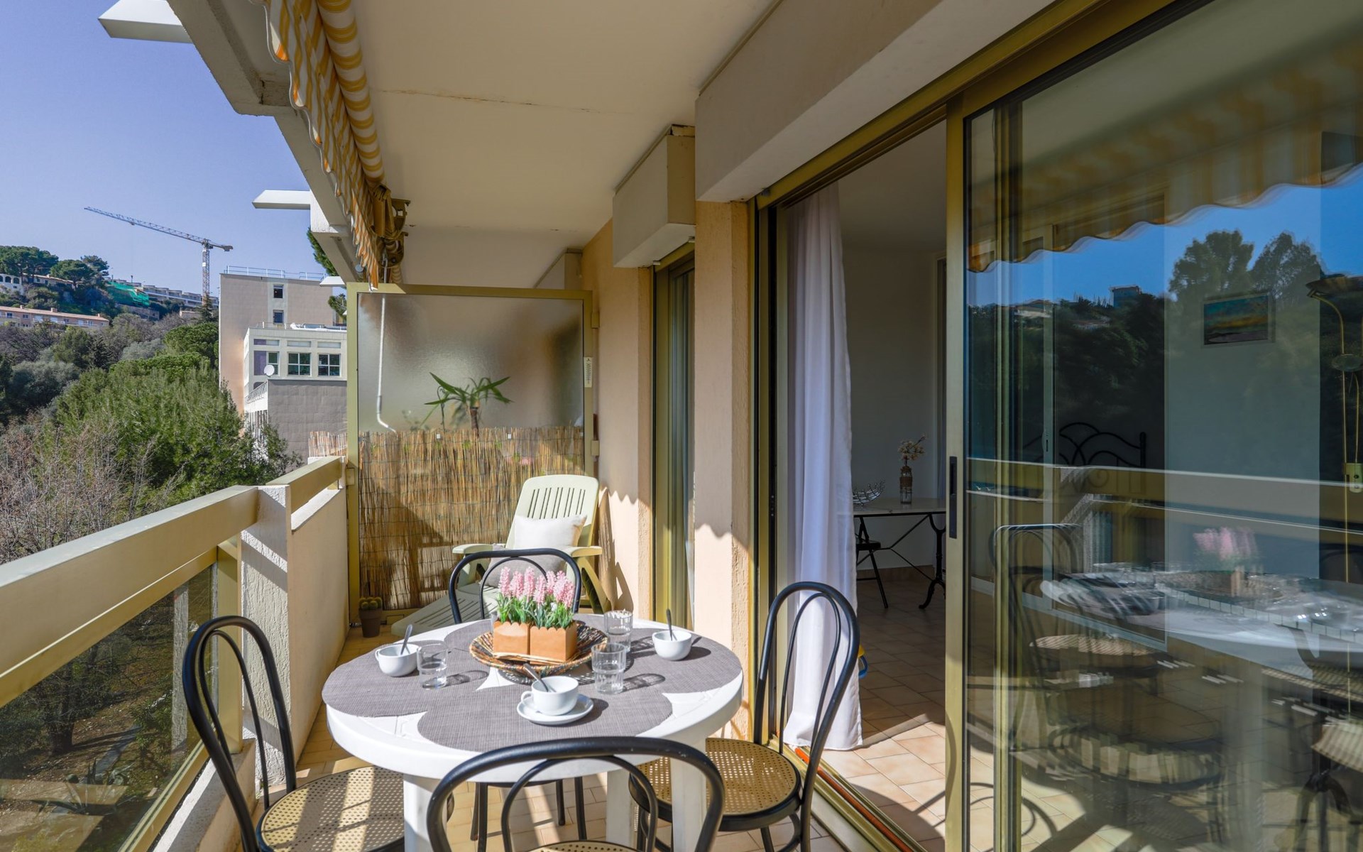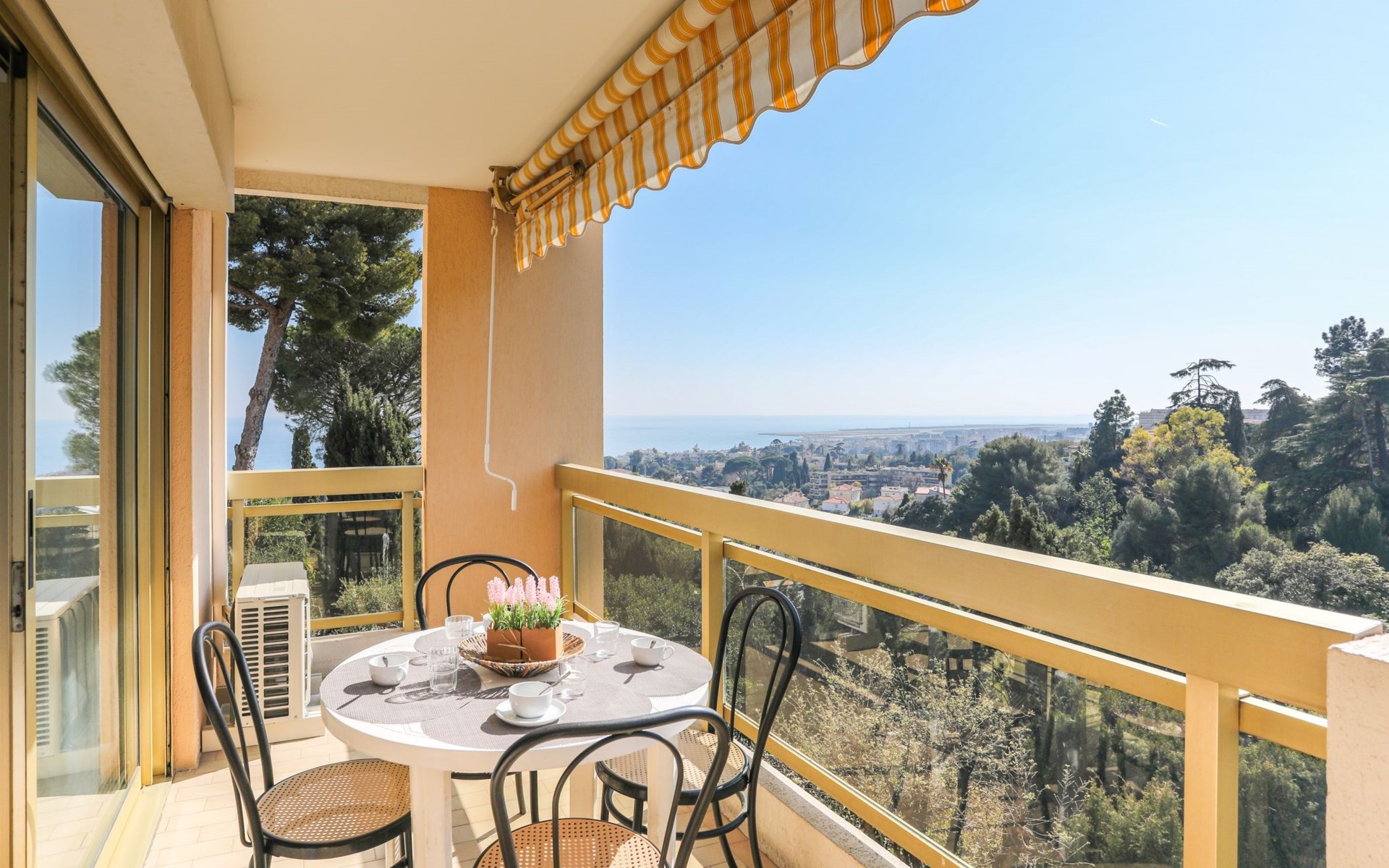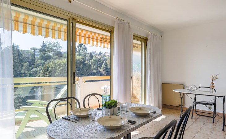 Beautiful residence "Domaine du Clairfontaine", 4 storeys, surrounded by trees. In the district of Fabron, in the residential district, 950 m from the sea, 950 m from the beach. For shared use: swimming pool (10 x 5 m, depth 110 - 190 cm, seasonal availability: 15.May. - 15.Oct. pool opening hours: 09:00-21:00). Outdoor shower. In the house: lift. Grocery 550 m, bakery 500 m, bus stop "Impératrice Eugénie" 400 m, railway station "Nice-Ville" 3.5 km, shingle beach "publique" 950 m. Golf course (18 hole) 20 km. Nearby attractions: Place Masséna 4 km, Cours Saleya 4 km, Musée Art Moderne et Contemporain 5 km, Arènes de Cimiez 6 km, Chateau de Nice 5 km, Musée Masséna 3 km. Well-known lakes can easily be reached: St Cassien 50 km. Hiking paths: Parc National du Mercantour 56 km.