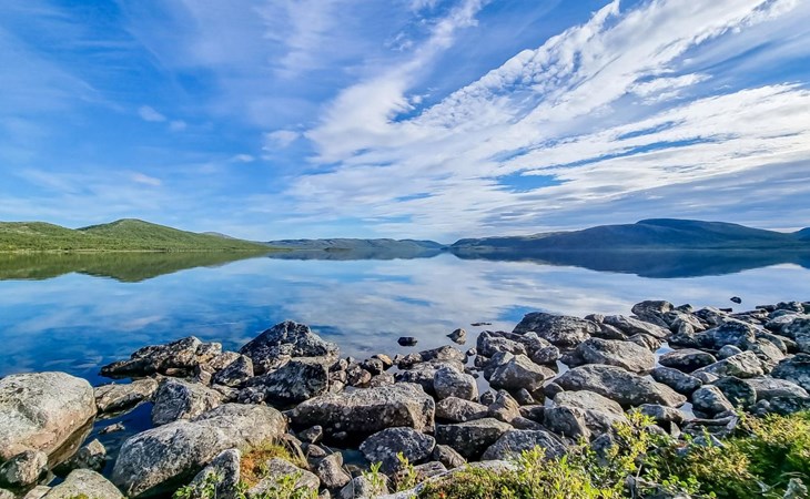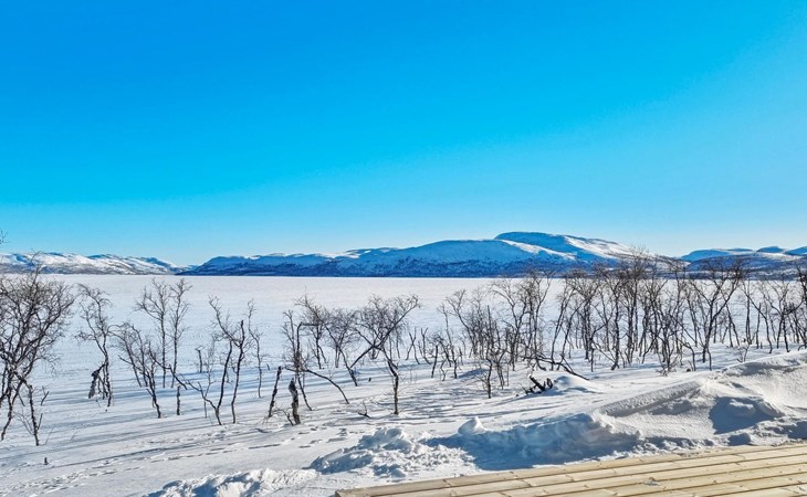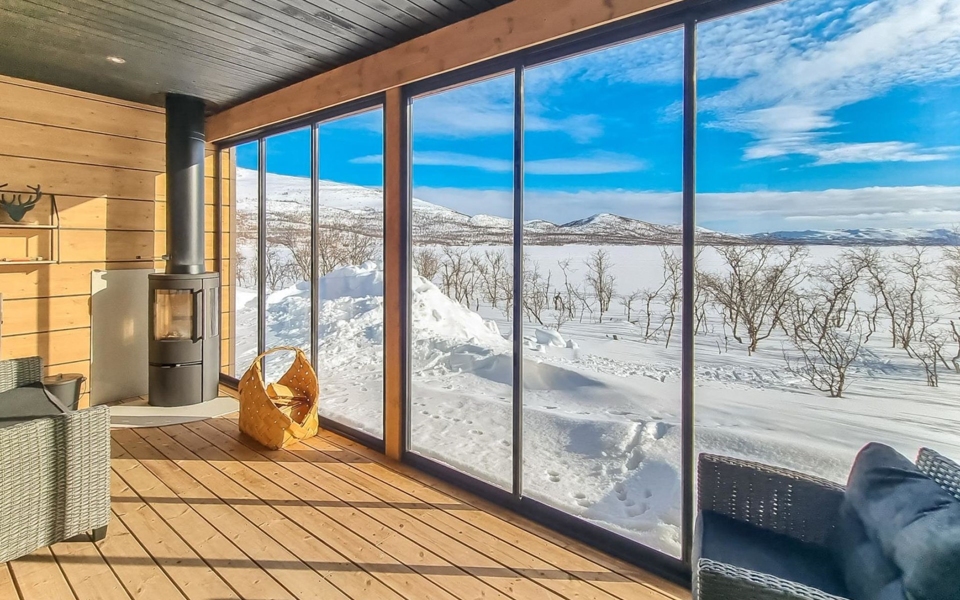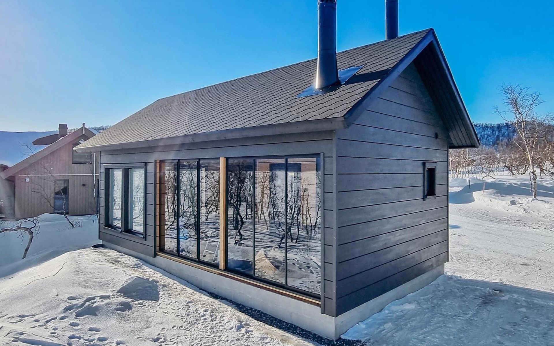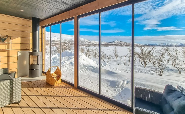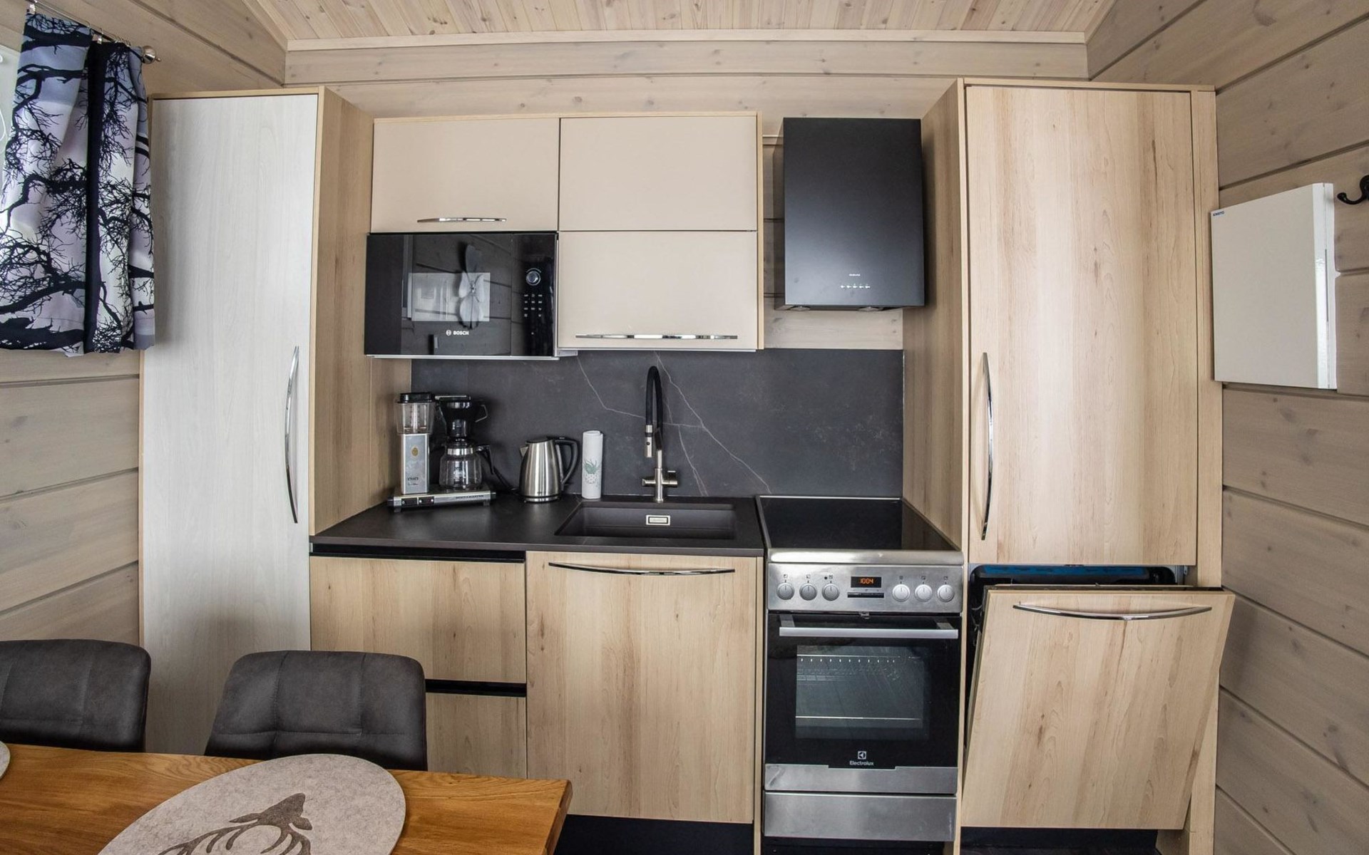 On one side, there is a comfortable living and sleeping area having convenient spreadable sofa bed that can be converted into two separate 80 cm wide beds. On the other side, you'll find the washroom with shower and a traditional wood-heated sauna. The sauna has a window offering stunning views of the lake and fells.