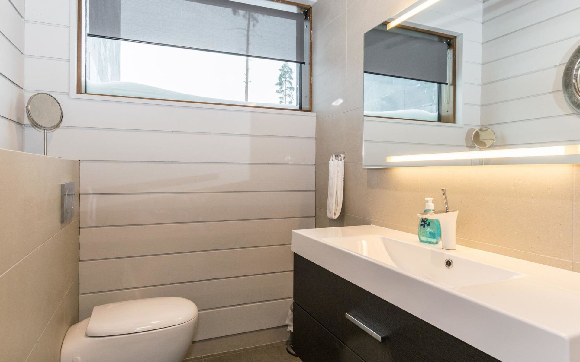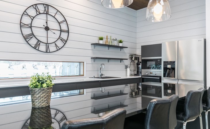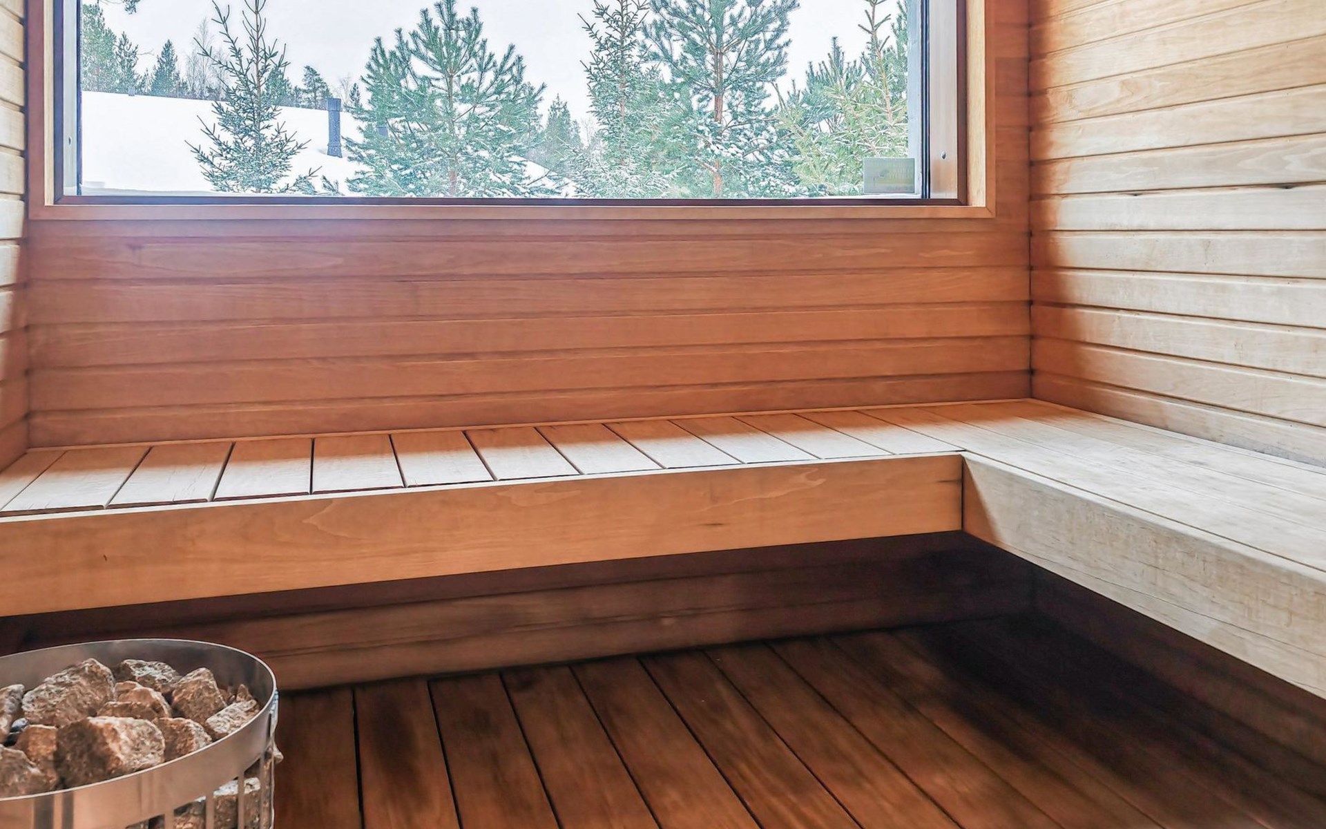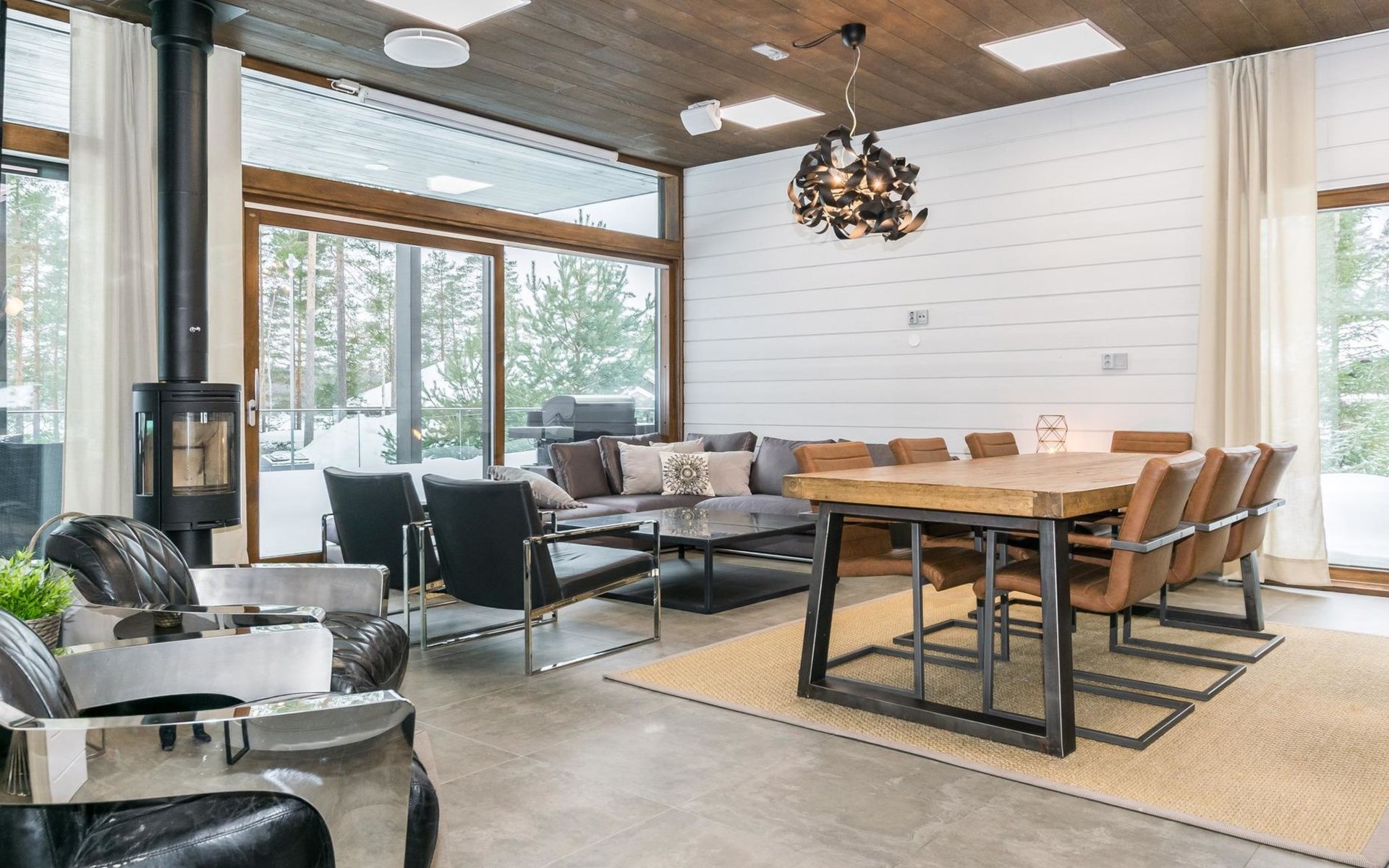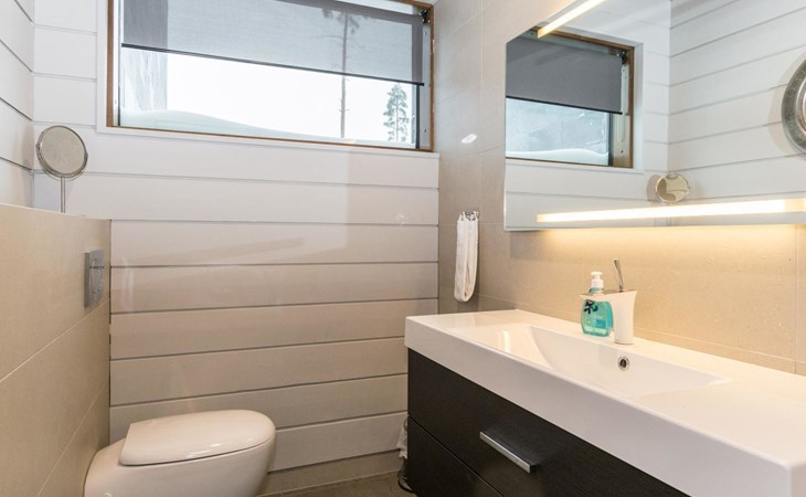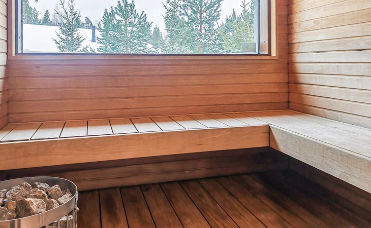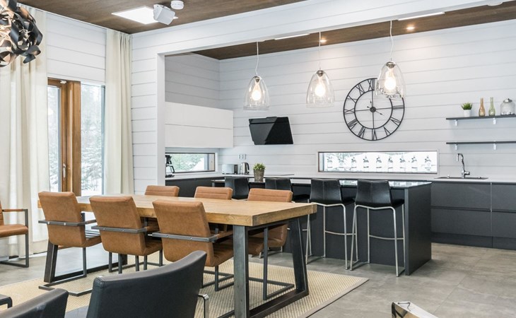 The villa is spacious and suitable for hosting events. The tableware accommodates up to 15 people, and the kitchen is equipped with two large thermos coffee makers and a spacious refrigerator. If you need more accommodation, the owner also offers stylish Naava Chalet apartments with saunas within 300 meters, apartments 101, 102, 103, 104, and 105 (Lomarengas destination IDs: 16960 - 16964).