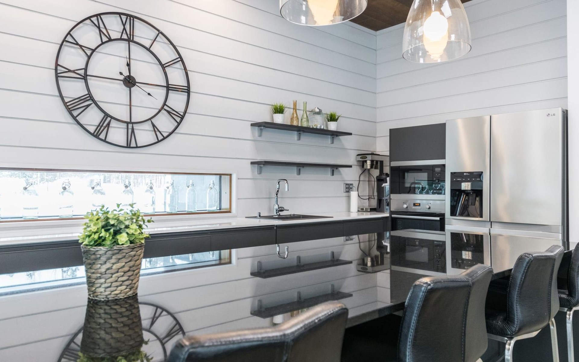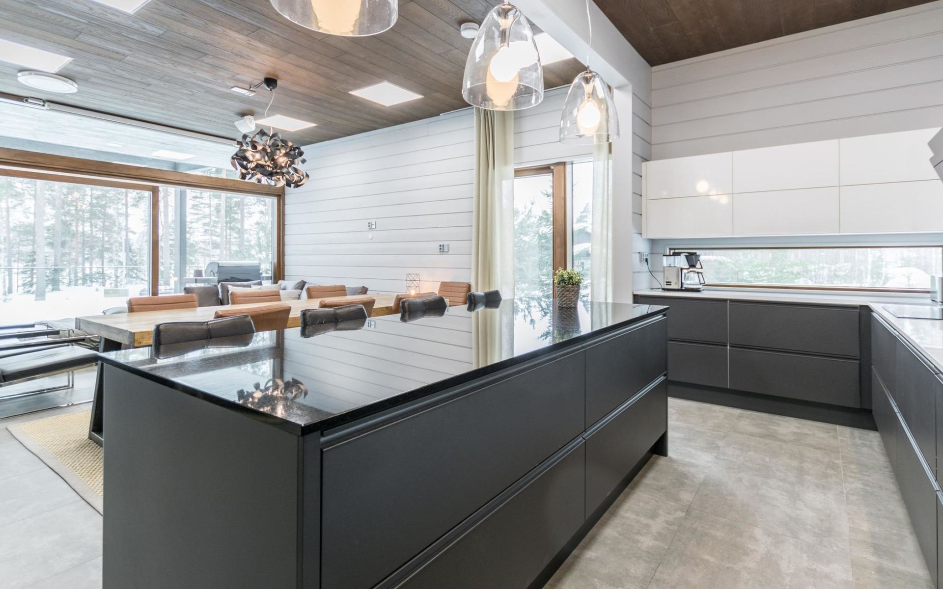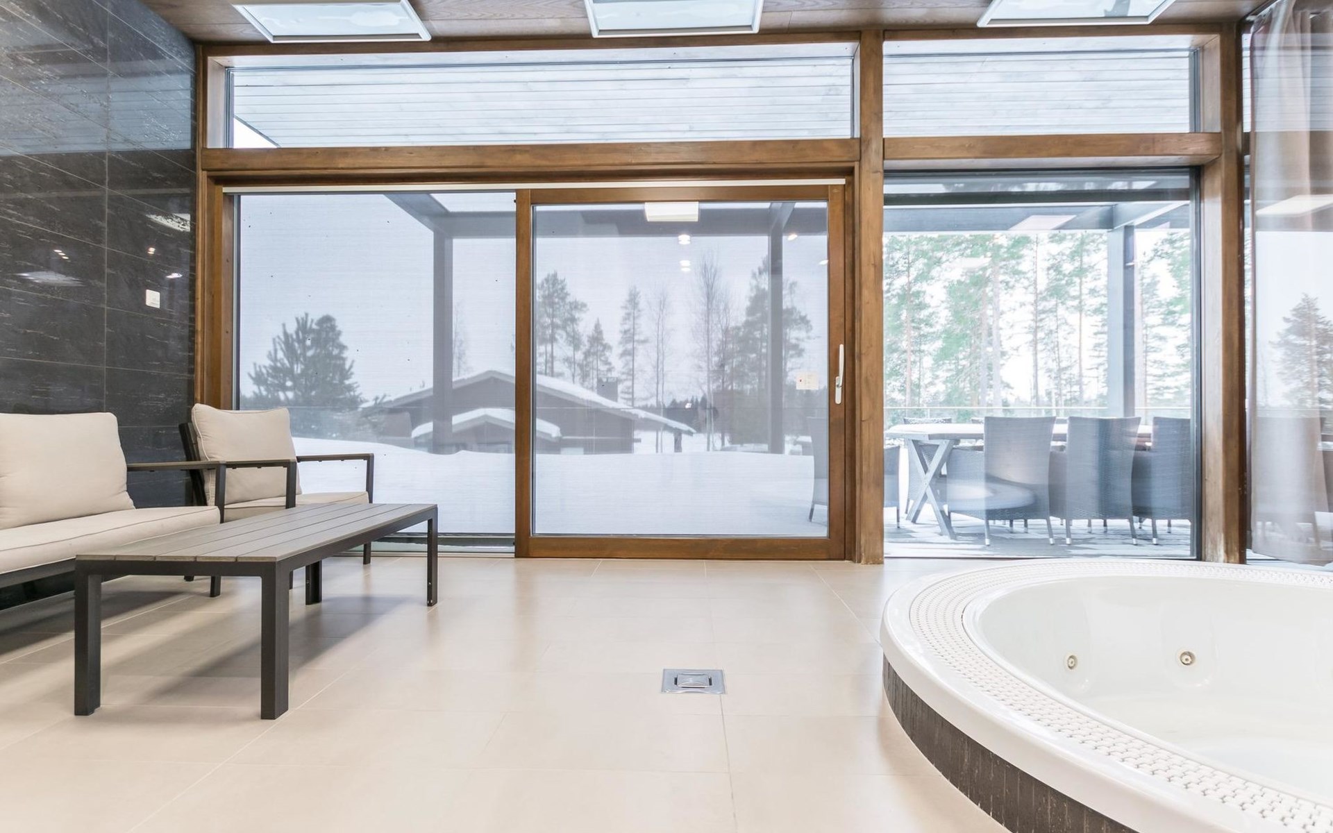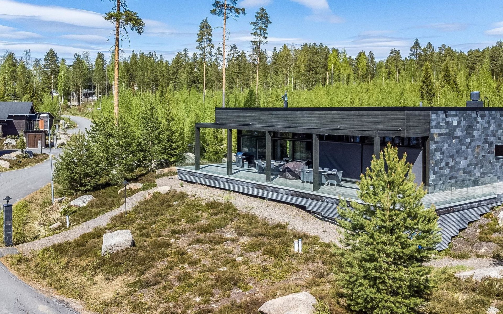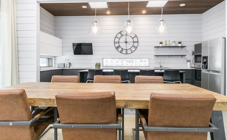 The villa is spacious and suitable for hosting events. The tableware accommodates up to 15 people, and the kitchen is equipped with two large thermos coffee makers and a spacious refrigerator. If you need more accommodation, the owner also offers stylish Naava Chalet apartments with saunas within 300 meters, apartments 101, 102, 103, 104, and 105 (Lomarengas destination IDs: 16960 - 16964).