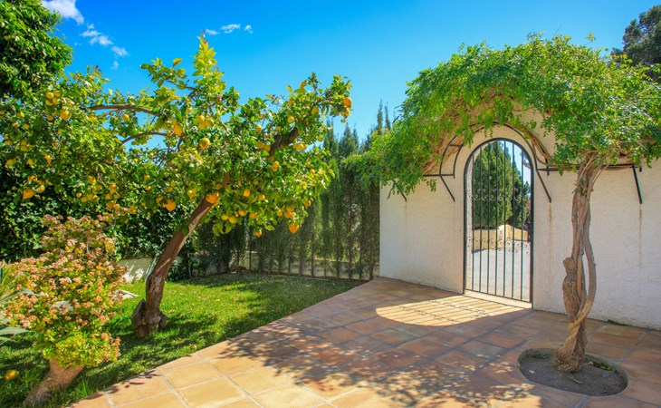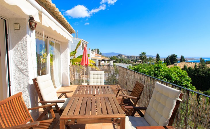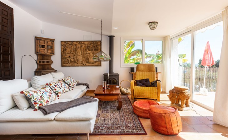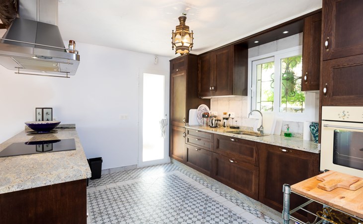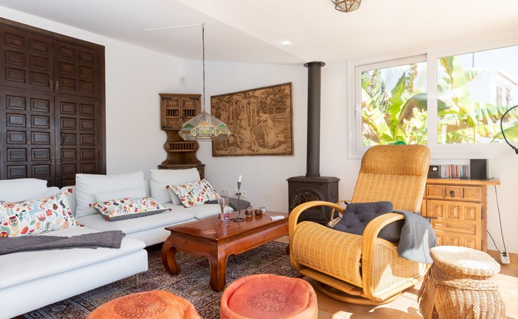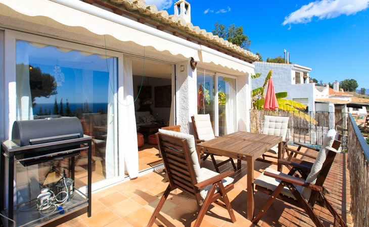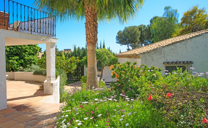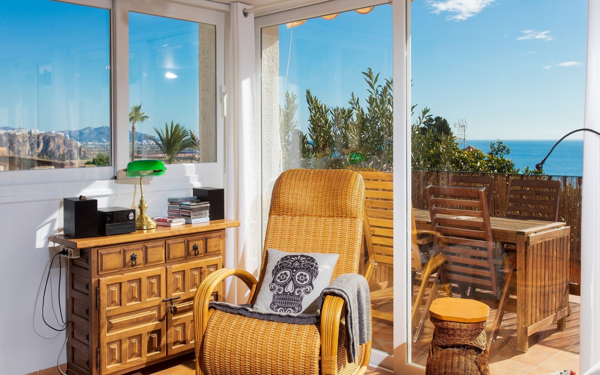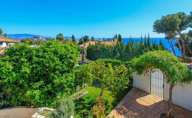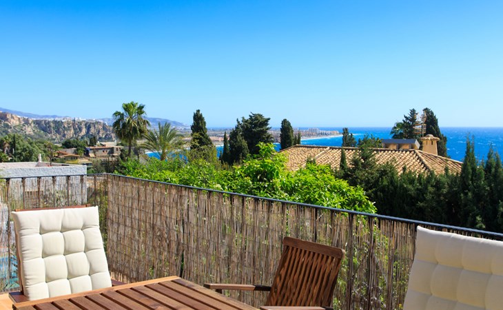 Salobreña: Cosy single-family house "Granado", 2 storeys. On the outskirts Salobreña, in a quiet, sunny position residential area (villas), 100 m from the sea, 100 m from the beach. Private: beautiful garden with flowers and trees, orchard. In the house: air conditioning. Public parking on the road. Grocery 1 km, supermarket 3 km, restaurant 1.7 km, bar 1 km, bakery 1 km, bus stop 600 m, sandy beach 1 km, rocky beach 100 m (small), outdoor swimming pool 1 km. Nearby attractions: Granada 70 km, Málaga 85 km. Well-known ski regions can easily be reached: Sierra Nevada 100 km. Hiking paths: Sierra del Huétor 93 km, Sierra de Tejada 70 km. Please note: car recommended. Groups of teenagers on request only. Neighbourhood highly sensitive to noise. Quietness and good behaviour expected. 1 km West from the house you will find a large hotel with pool area, which as a bar guest you are allowed to use.
