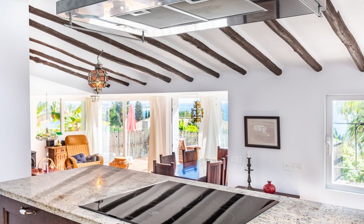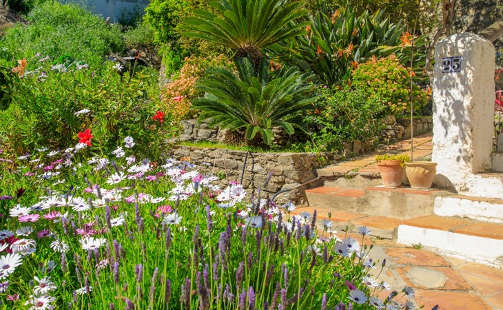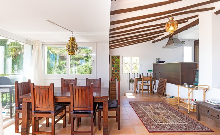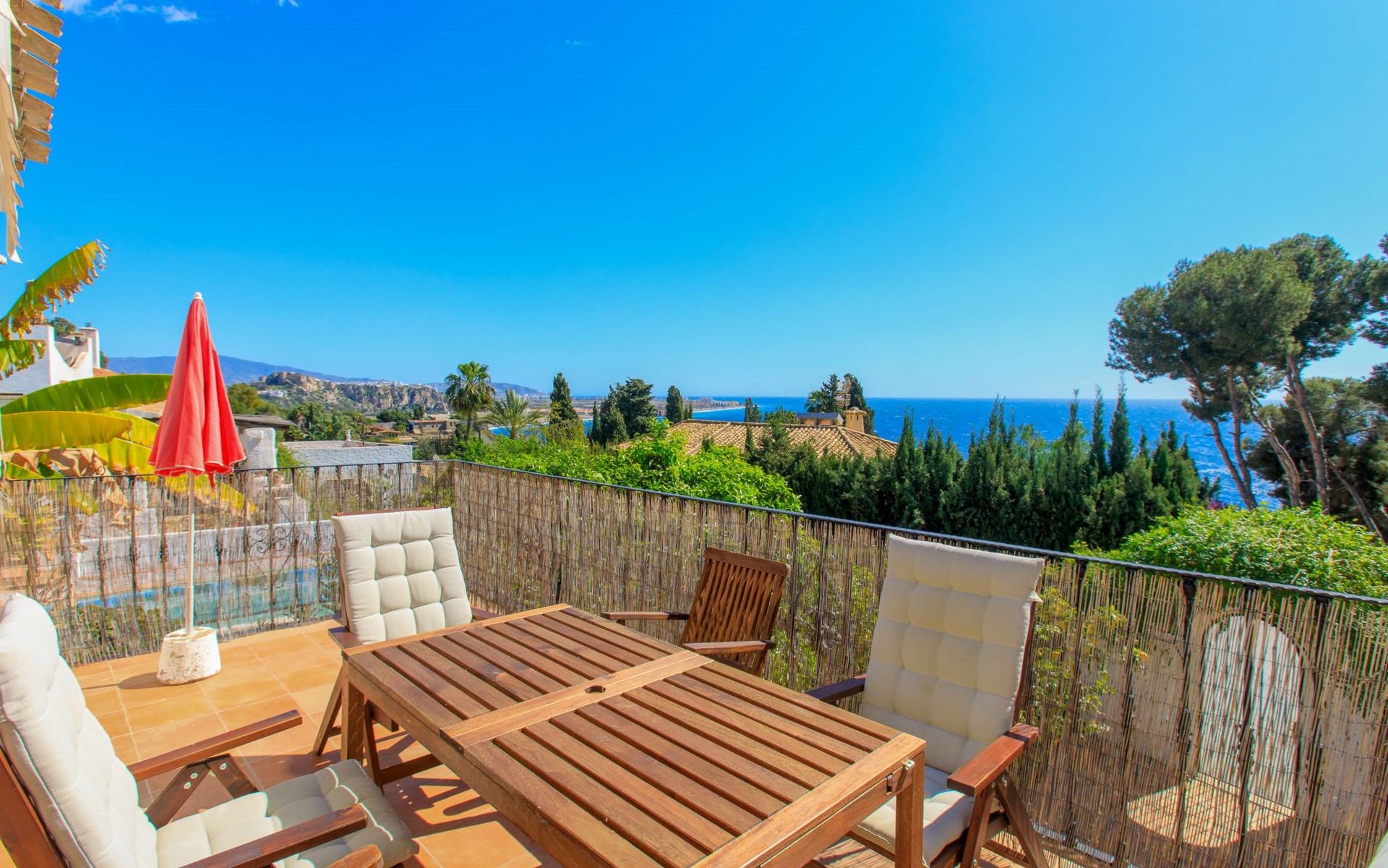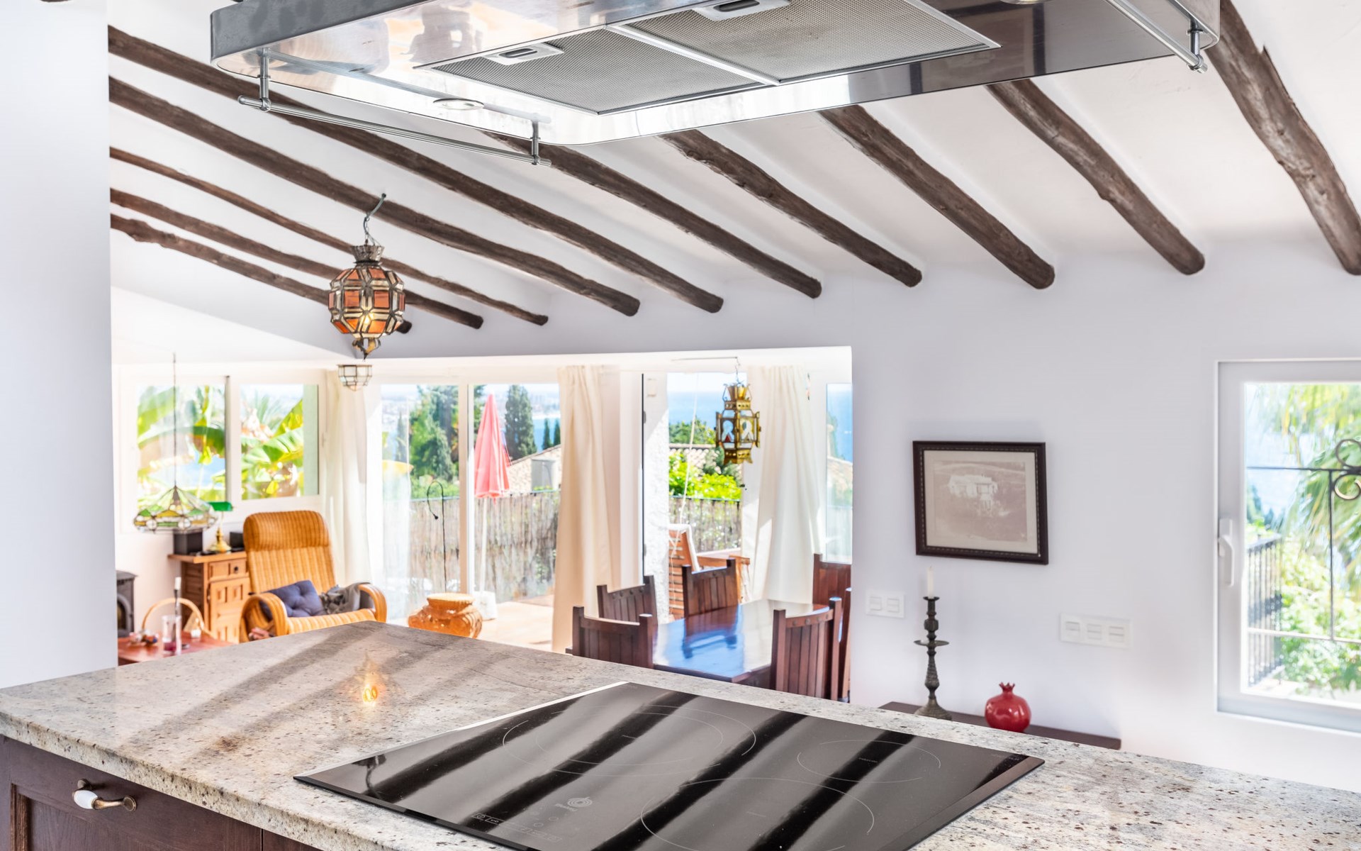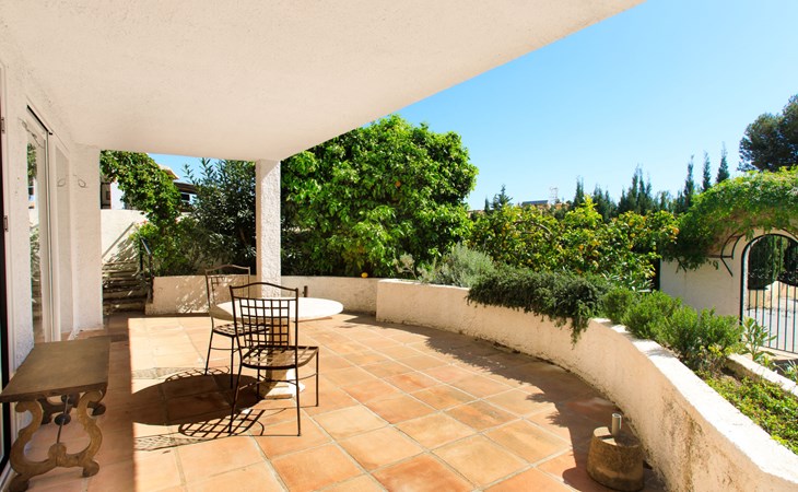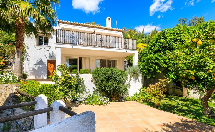Salobreña: Cosy single-family house "Granado", 2 storeys. On the outskirts Salobreña, in a quiet, sunny position residential area (villas), 100 m from the sea, 100 m from the beach. Private: beautiful garden with flowers and trees, orchard. In the house: air conditioning. Public parking on the road. Grocery 1 km, supermarket 3 km, restaurant 1.7 km, bar 1 km, bakery 1 km, bus stop 600 m, sandy beach 1 km, rocky beach 100 m (small), outdoor swimming pool 1 km. Nearby attractions: Granada 70 km, Málaga 85 km. Well-known ski regions can easily be reached: Sierra Nevada 100 km. Hiking paths: Sierra del Huétor 93 km, Sierra de Tejada 70 km. Please note: car recommended. Groups of teenagers on request only. Neighbourhood highly sensitive to noise. Quietness and good behaviour expected. 1 km West from the house you will find a large hotel with pool area, which as a bar guest you are allowed to use.