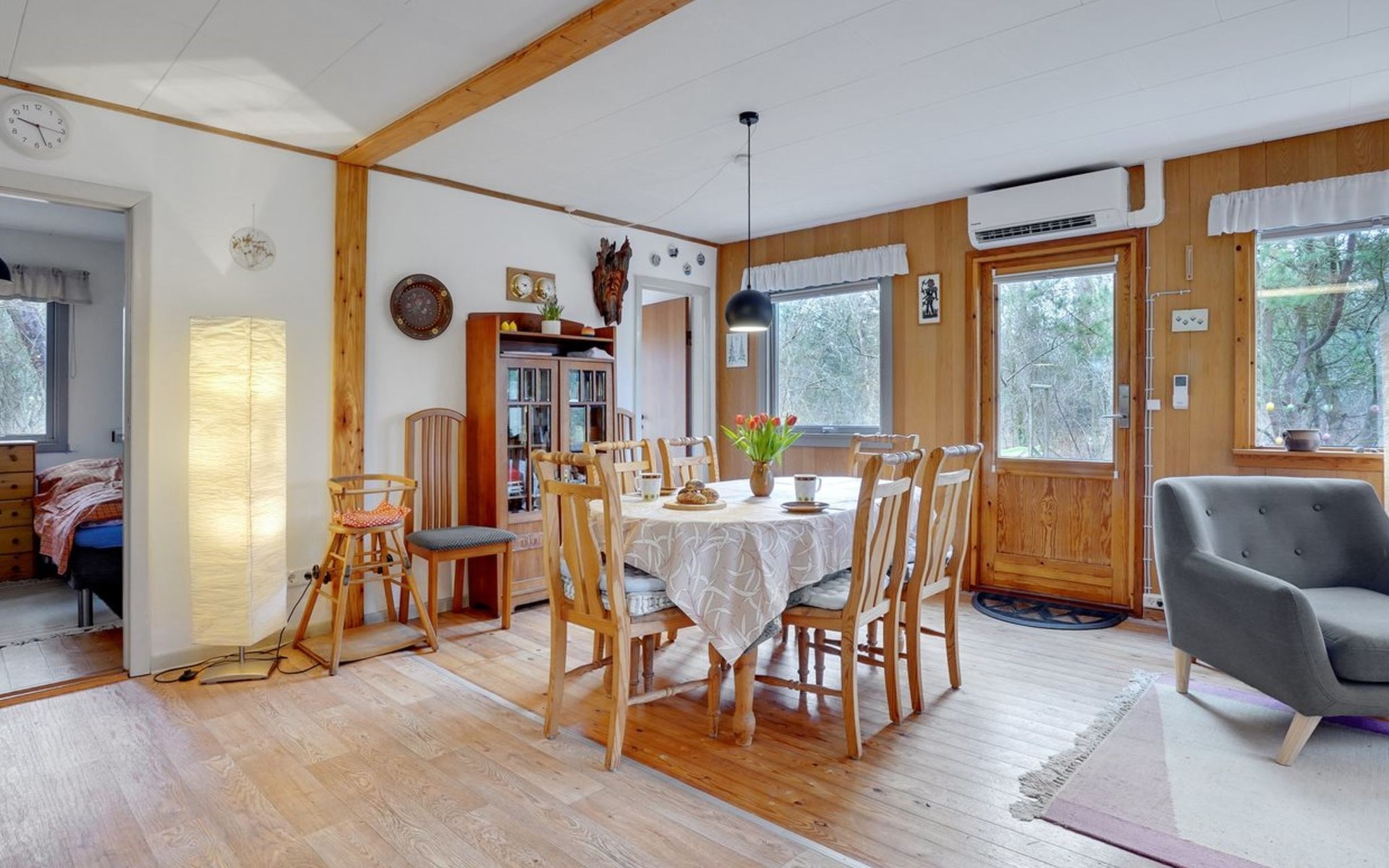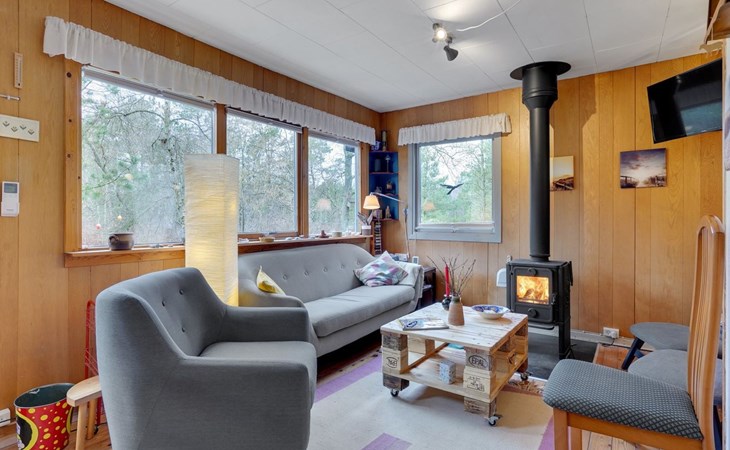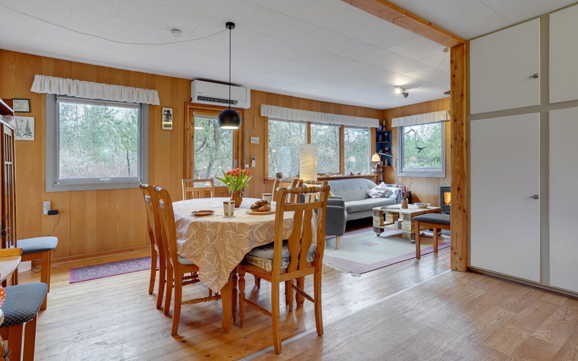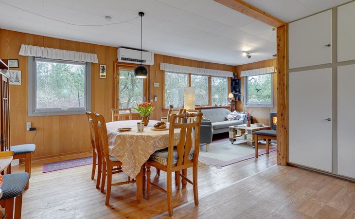 Single-family house, built in 1960. 2.5 km from the sea. Private: natural state property 2'900 m2. Terrace (130 m2), barbecue, children's playground (swing), parking at the house. E-charging station. Grocery 1.5 km. The owner does not accept any youth groups.