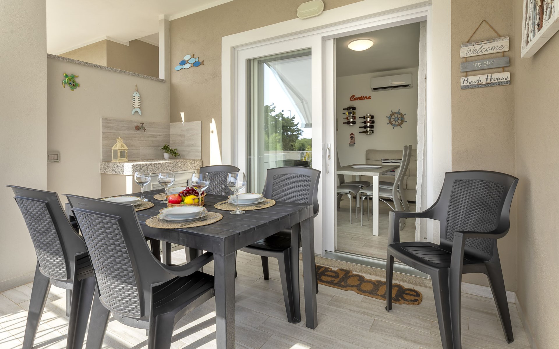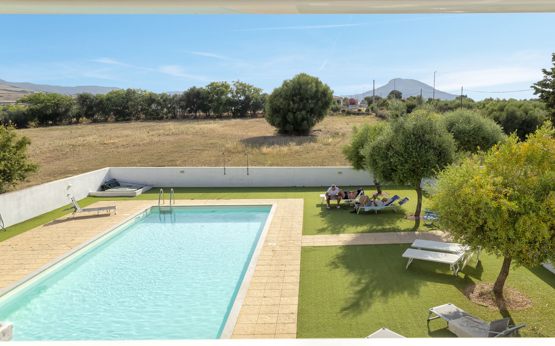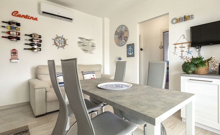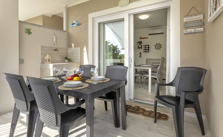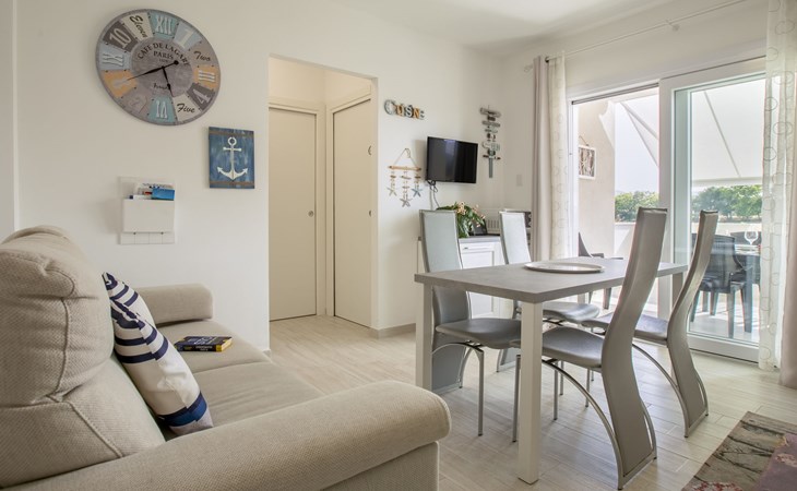 Modern, cosy apartment block "Residenza il Quarzo", 2 storeys, built in 2020. La Muddizza, 4 km from the centre of Valledoria, in a quiet, sunny position in the residential district, 2 km from the sea, 2 km from the beach. For shared use: swimming pool (6 x 12 m, depth 125 cm, seasonal availability: 01.Jun. - 30.Sep.). Outdoor shower. Stepped path (18 steps) to the house. Parking space n 6 at the house. Supermarket, shopping centre, restaurant 300 m, bus stop 4 km, sandy beach "Baia Verde" 2 km. Nearby attractions: Isola Rossa 20 km, Costa Paradiso 30 km, Stintino 78 km, Olbia 87 m, Porto Torres 48 km, Alghero. Please note: car recommended, no lift.