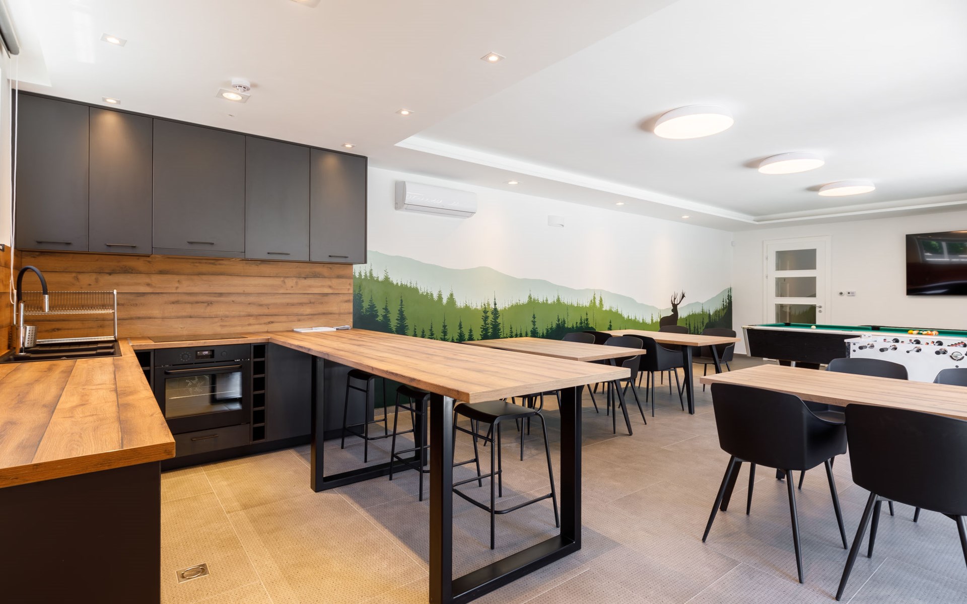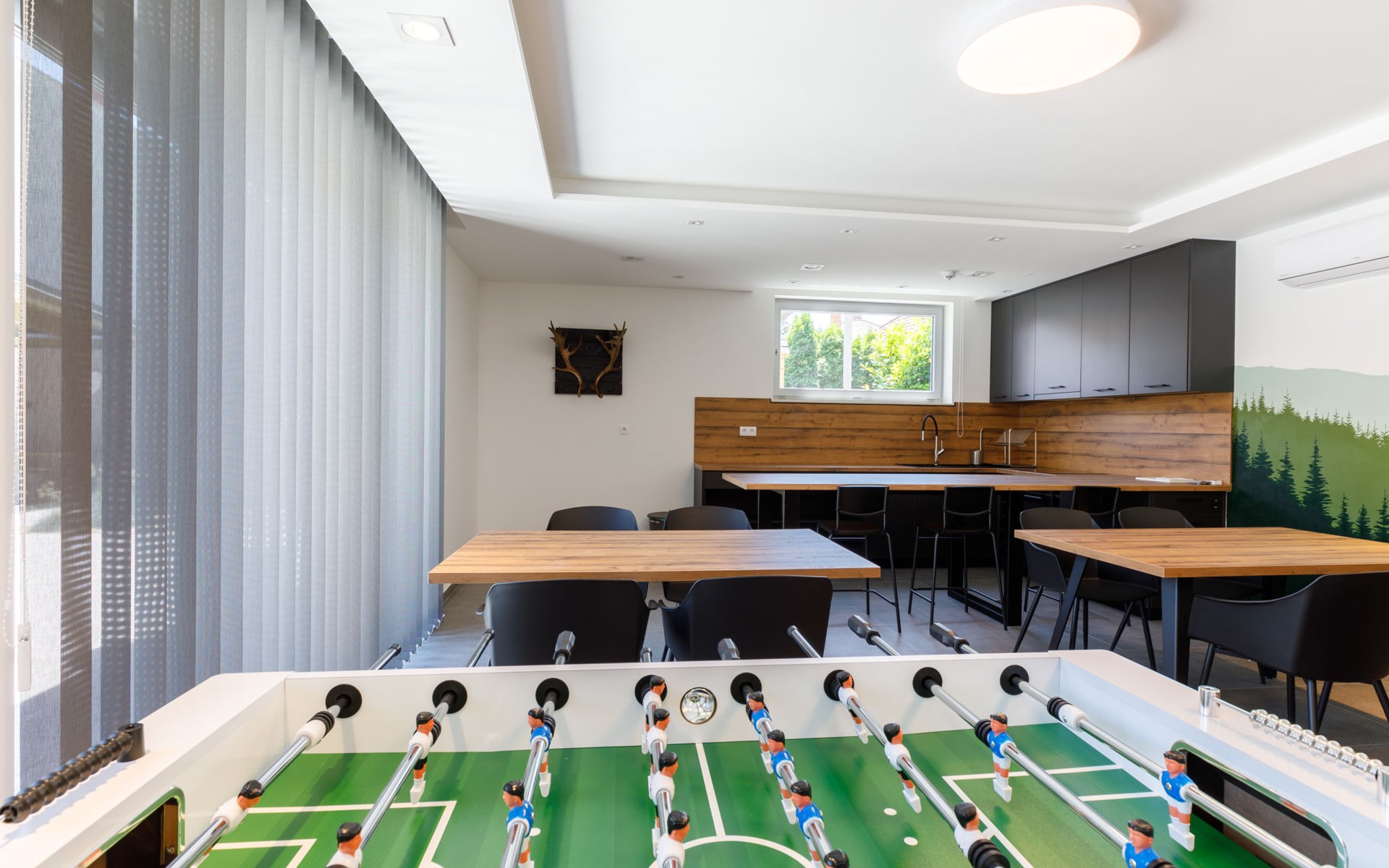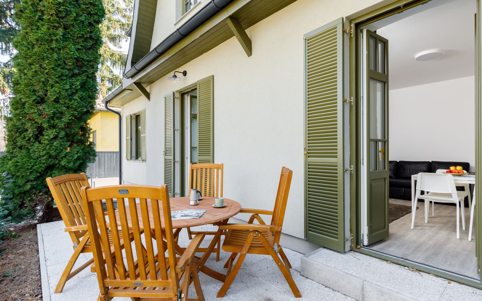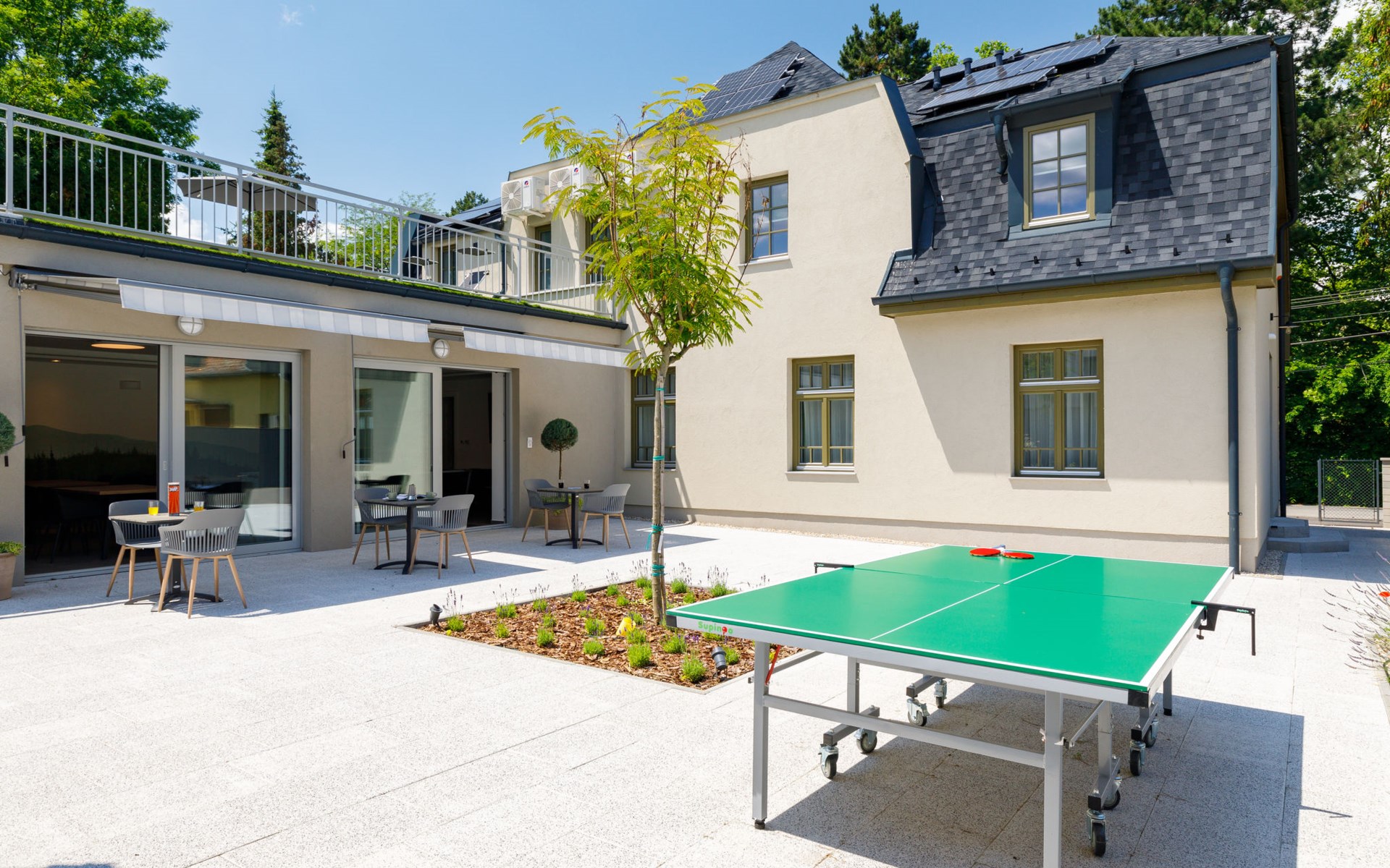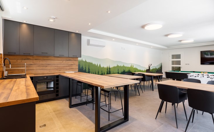 Balatonszárszó 5 km from Balatonföldvár: Large, modern, beautiful apartment house, built in 2023. 5 apartments in the residence. Excellent location: right in the centre but still quiet, 290 m from the lake, 350 m from the beach. Private: property (fenced). Outdoor shower, hot tub, table tennis, pergola, garden furniture, barbecue, children's playground (slide, sandbox). In the house: WiFi, table tennis, billiard table, table football, sun terrace, central heating system, air conditioning, washing machine, tumble dryer. Breakfast on request (extra). Parking at the house. Grocery 90 m, supermarket 7 km, restaurant, café 140 m, bicycle rental 150 m, bus stop 850 m, railway station 200 m, 200 m, thermal baths "Csiszta" 36 km. Surf school 4 km, sailing school 1 km, tennis 500 m, riding stable 9 km, children's playground 600 m. Nearby attractions: Siófok Bella Zoo 24 km, Tihany 12 km, Siófok Theme Pak 24 km, Festetics Castle 57 km, Hévíz 61 m.