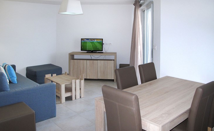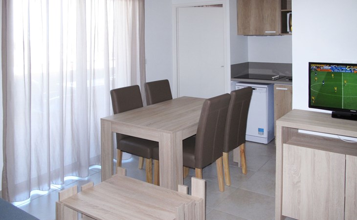 Child friendly resort "Le Lotus Blanc", 6 storeys, built in 2015. 115 apartments in the residence. 5 km from the centre of Le Barcarès, on the outskirts, 25 km from the centre of Perpignan, 100 m from the sea, 100 m from the beach. For shared use: swimming pool heated, fenced (10 x 15 m, seasonal availability: 15.Apr. - 15.Sep.) with internal staircase. Children's pool. In the complex: reception, restaurant, sauna (extra). Fitness room (extra). Steam room (extra). Lift, washing machine, tumble dryer (for shared use, extra). Parking. Shop 5 km, supermarket 5 km, bus stop "Lydia" 550 m, sandy beach "Grand Plage" 100 m. Nearby attractions: Céret 56.3 km, Palais des rois de Majorque 27.4 km, Leucate Plage 9.2 km, Ille-sur-Têt 48.6 km, Forteresse de Salses 18.6 km, Musée de Préhistoire de Tautavel 38.3 km. Please note: the photograph shows a typical example. The holiday properties may differ in living space, floorplan, equipment and furnishing.
