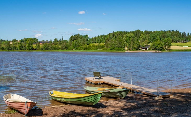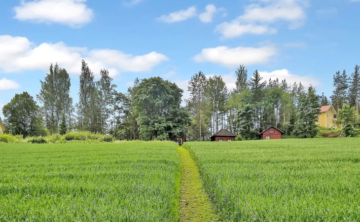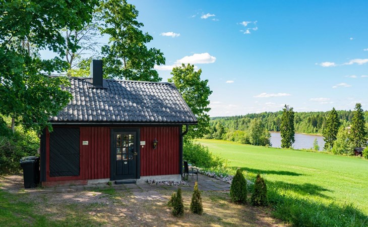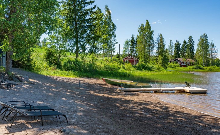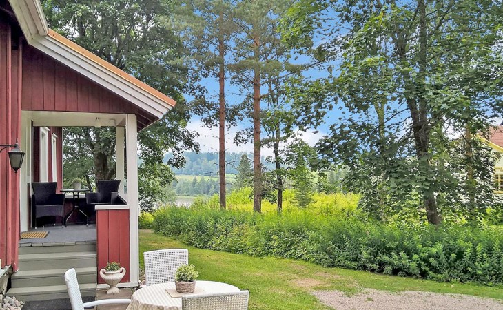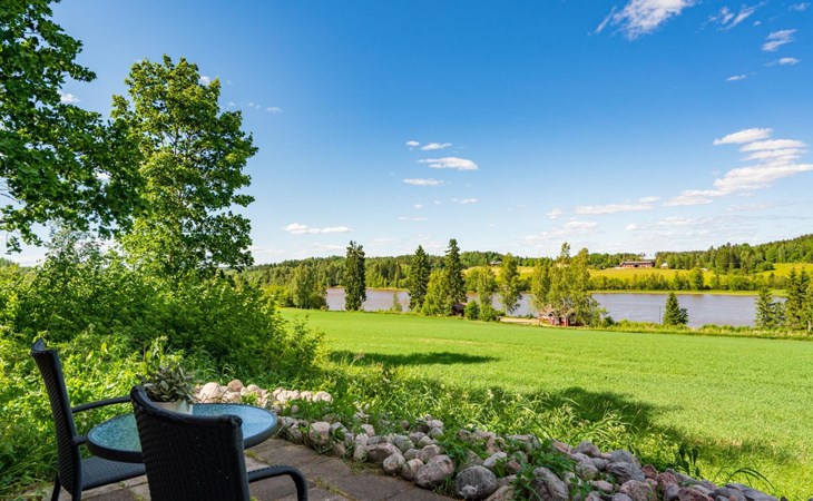 Beautiful view of the manor yard area, flat yard area. Neighbour in the same building, own entraces, no direct view of the neighbour. From sauna building view of the lake.