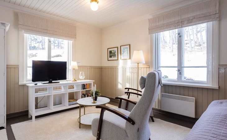 High standard former stewards house near owner's manor, living room/bedroom with 2 beds, kitchen, foyer, bathroom with toilet and shower. Open porch, WiFi. DVD on demand.