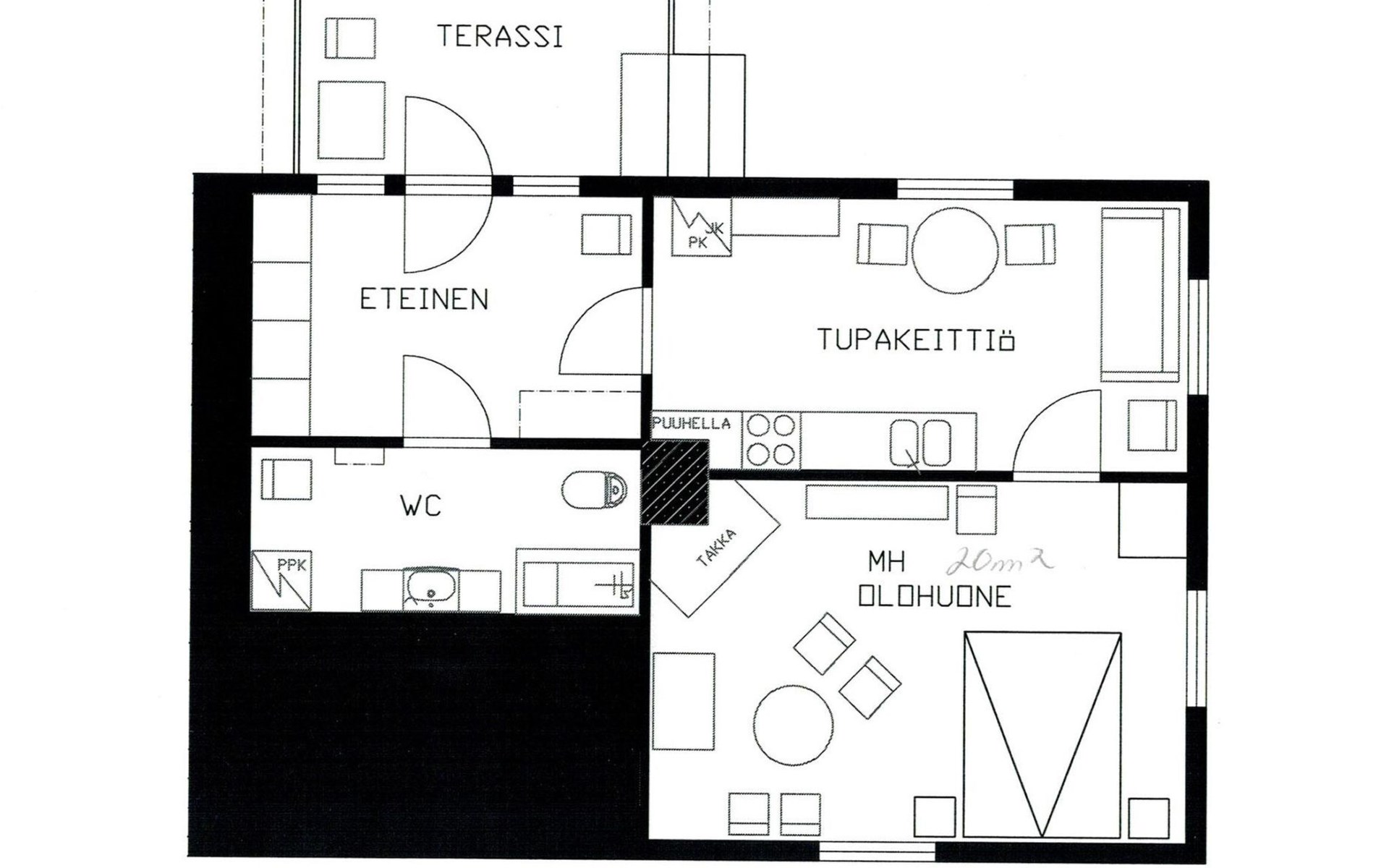 Own separate sauna (woodheated) with shower. Dressing room with fireplace.