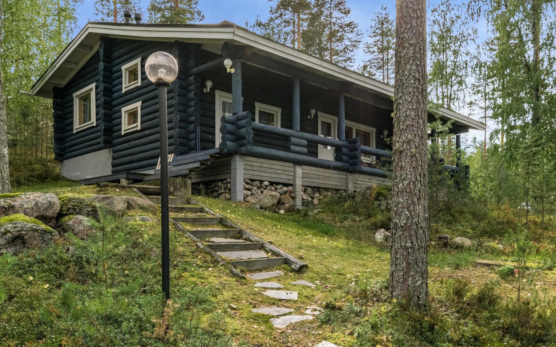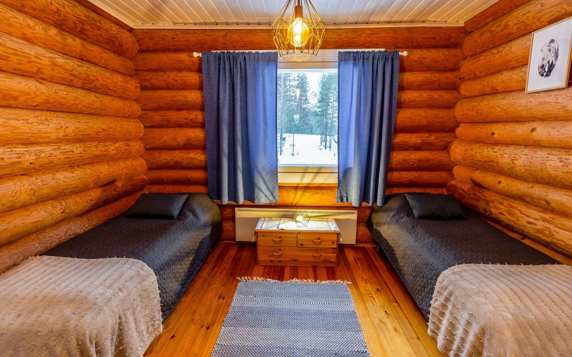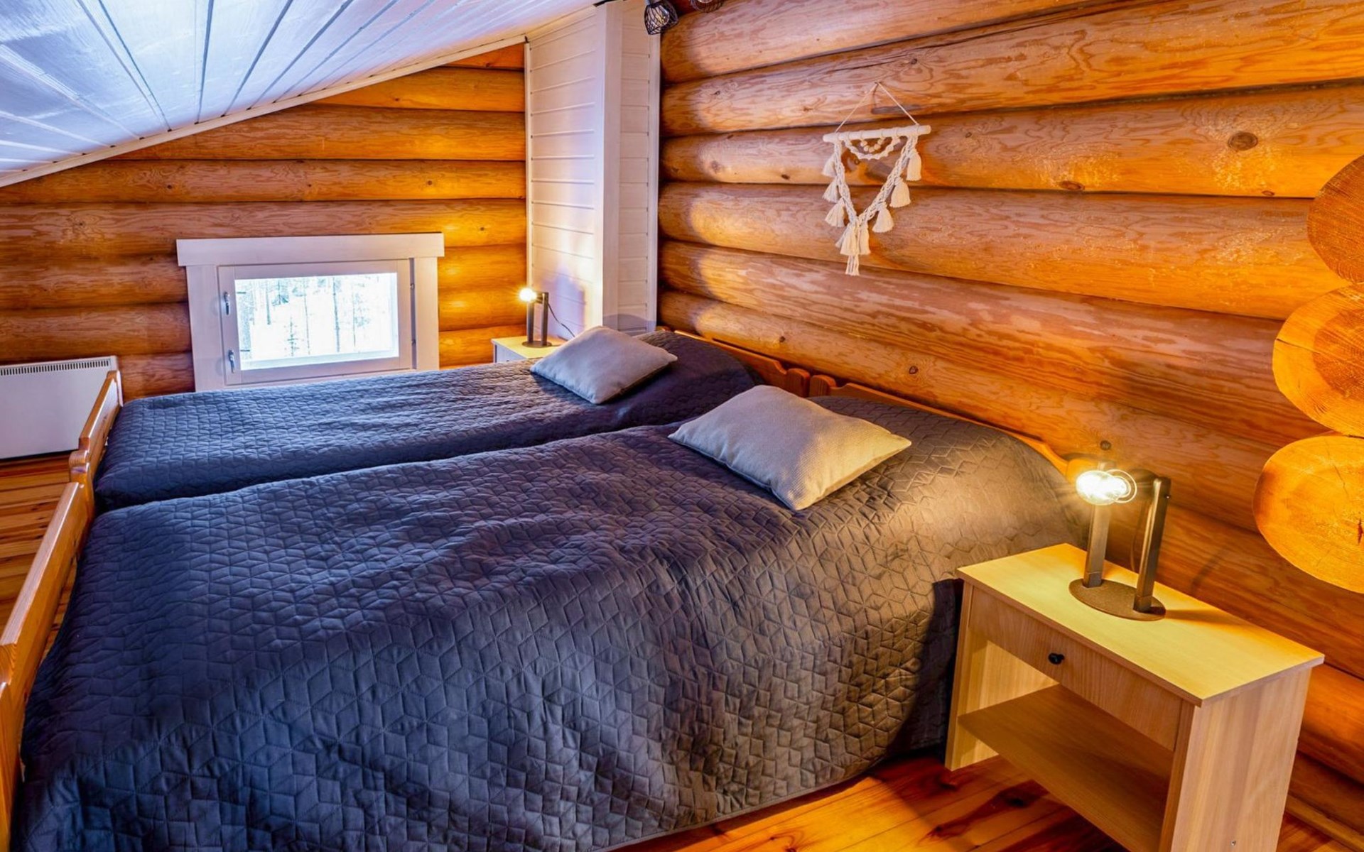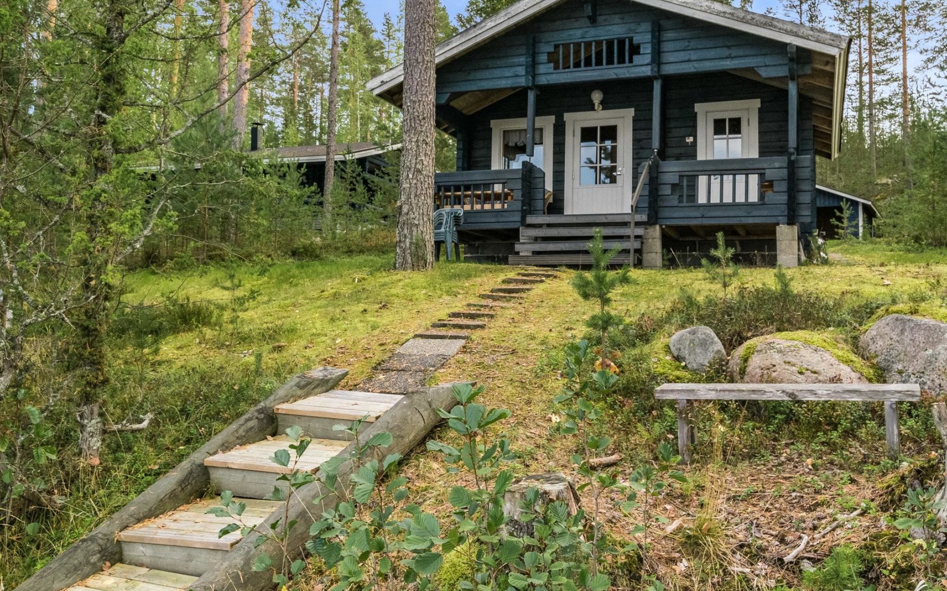 Log cottage 2005, kitchen, living room convertible sofa/bed, bedroom 2 beds, bedroom 2 beds, sleeping loft 2 beds, sauna (electric stove), washroom shower, dressing/utility room, toilet, roofed terrace. Gas grill in summer use (1.6. - 30.9.).