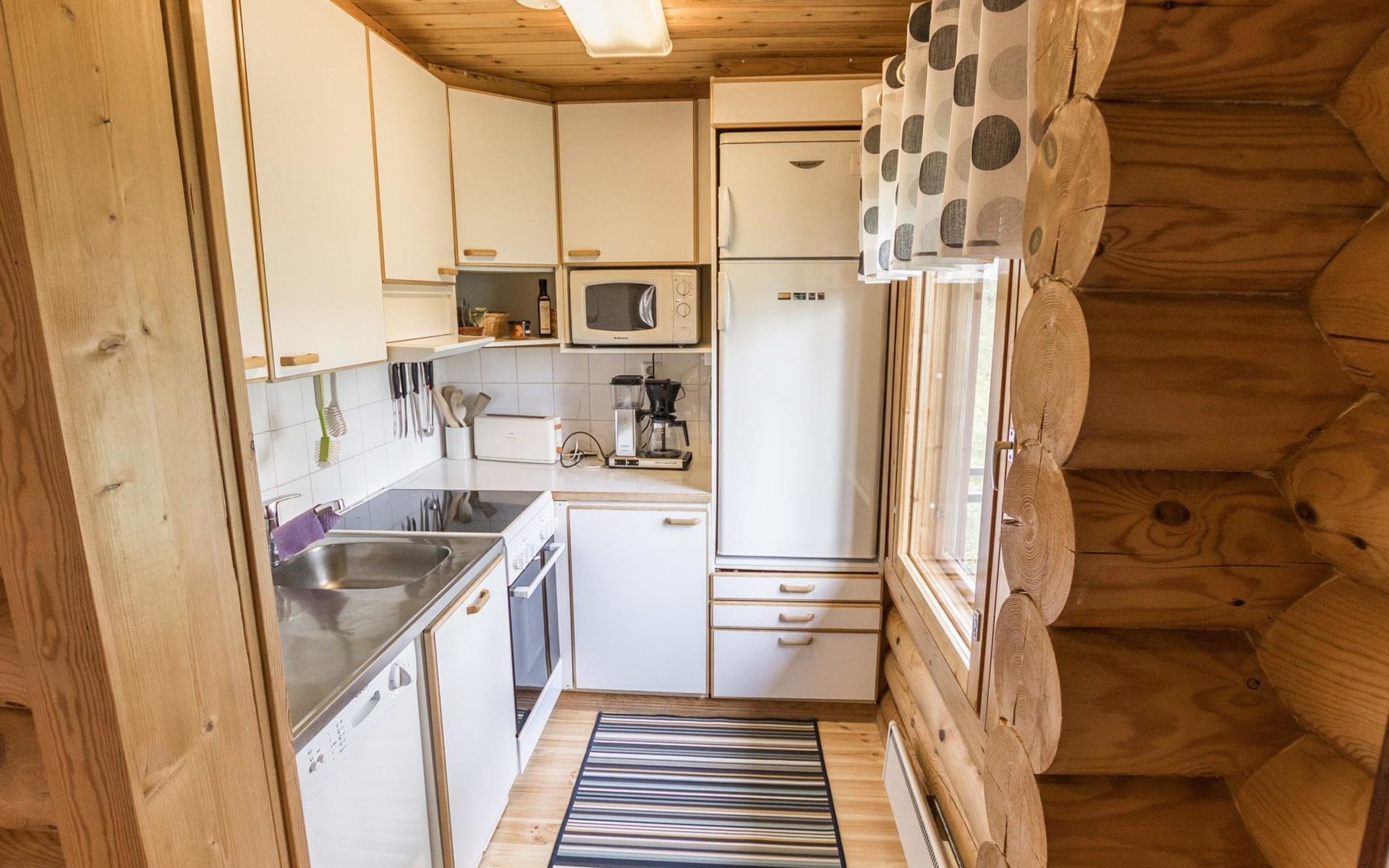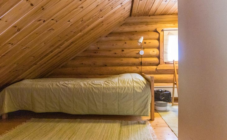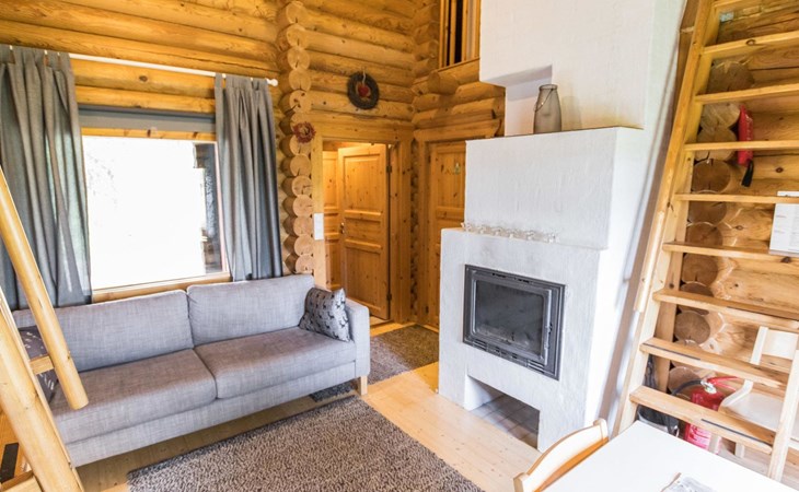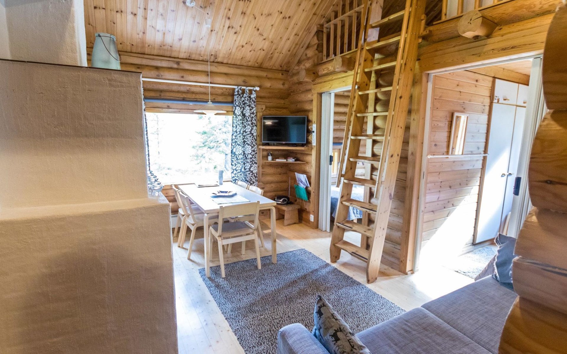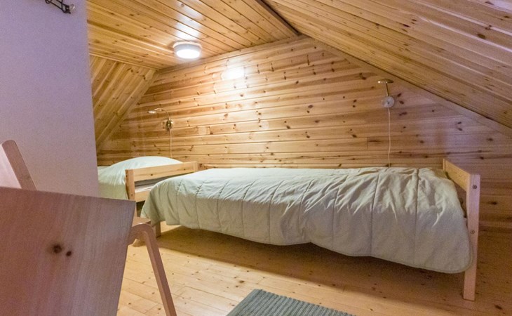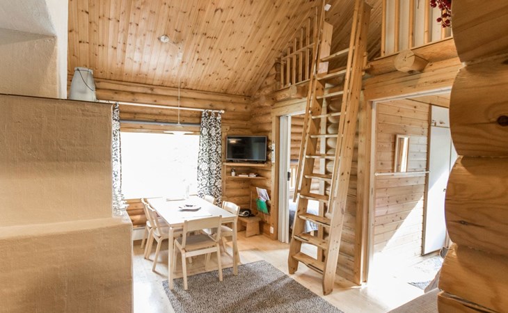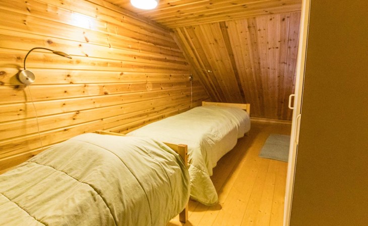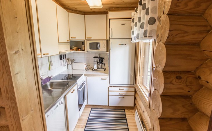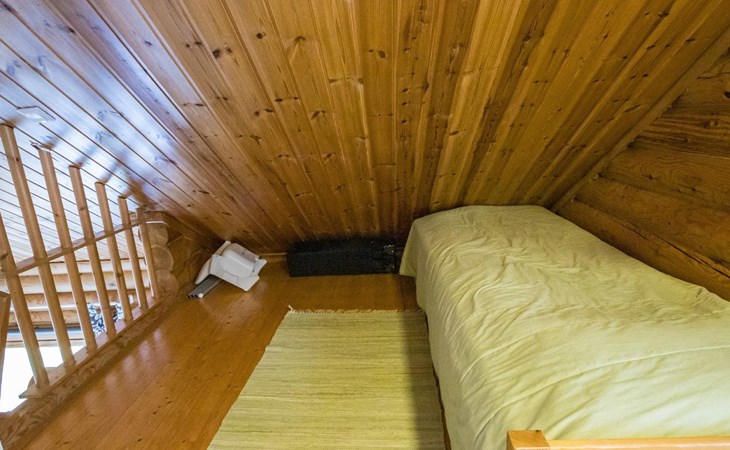 Log duplex apartment, built 1990. Livingroom, kitchen, two alcow (folding doors), each with 120 cm bed, two lofts (one 14 m² and one 9 m²) each with two separate beds, electric sauna, shower, separate toilet. Heated ski maintenance space; ski stand and heater.
