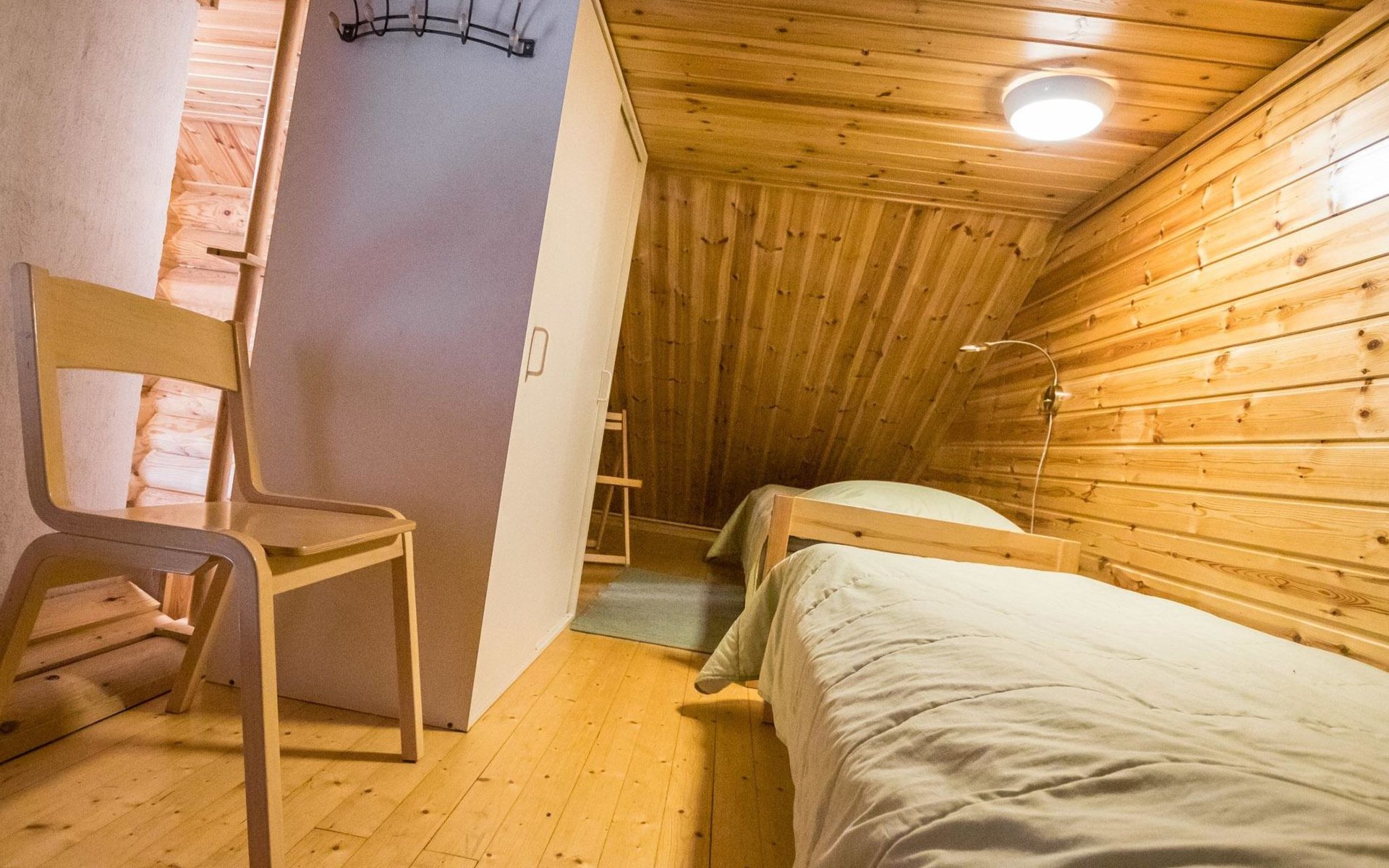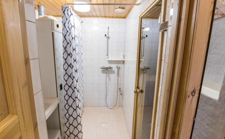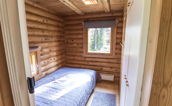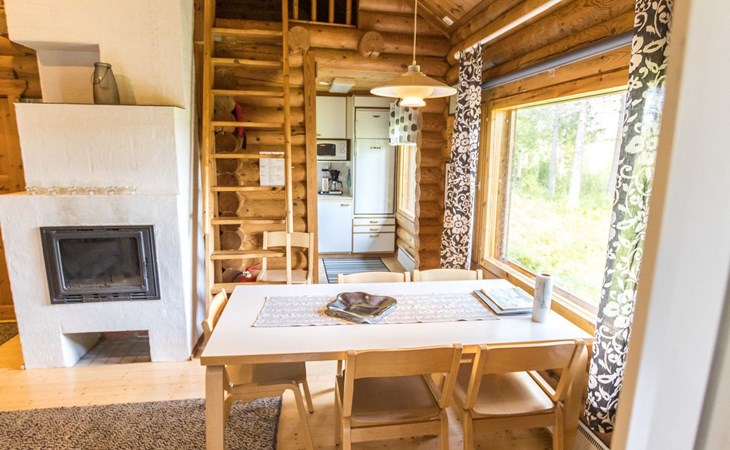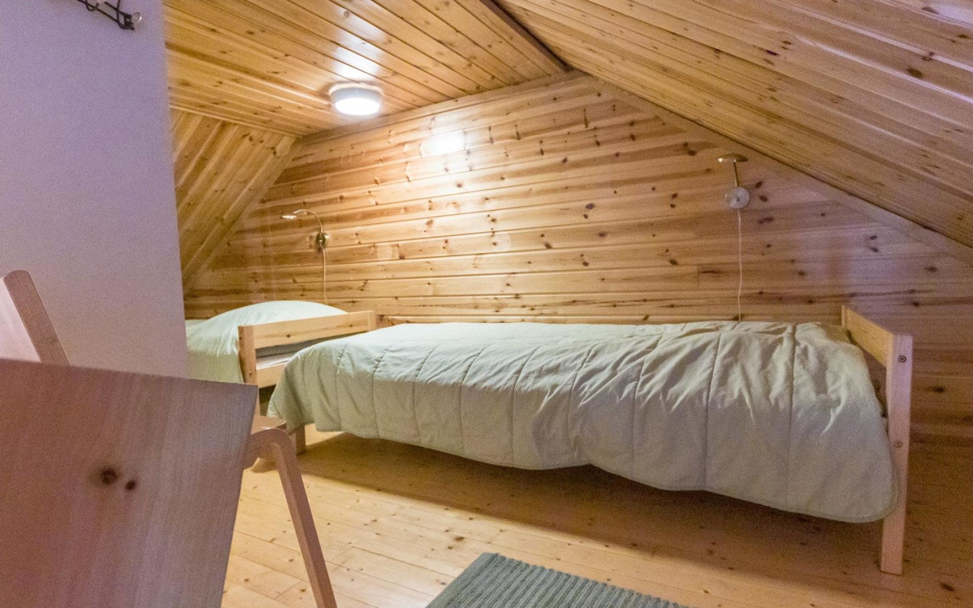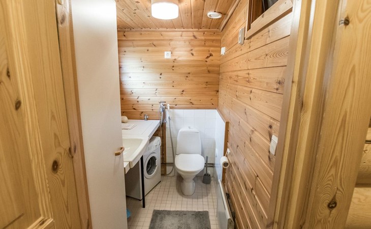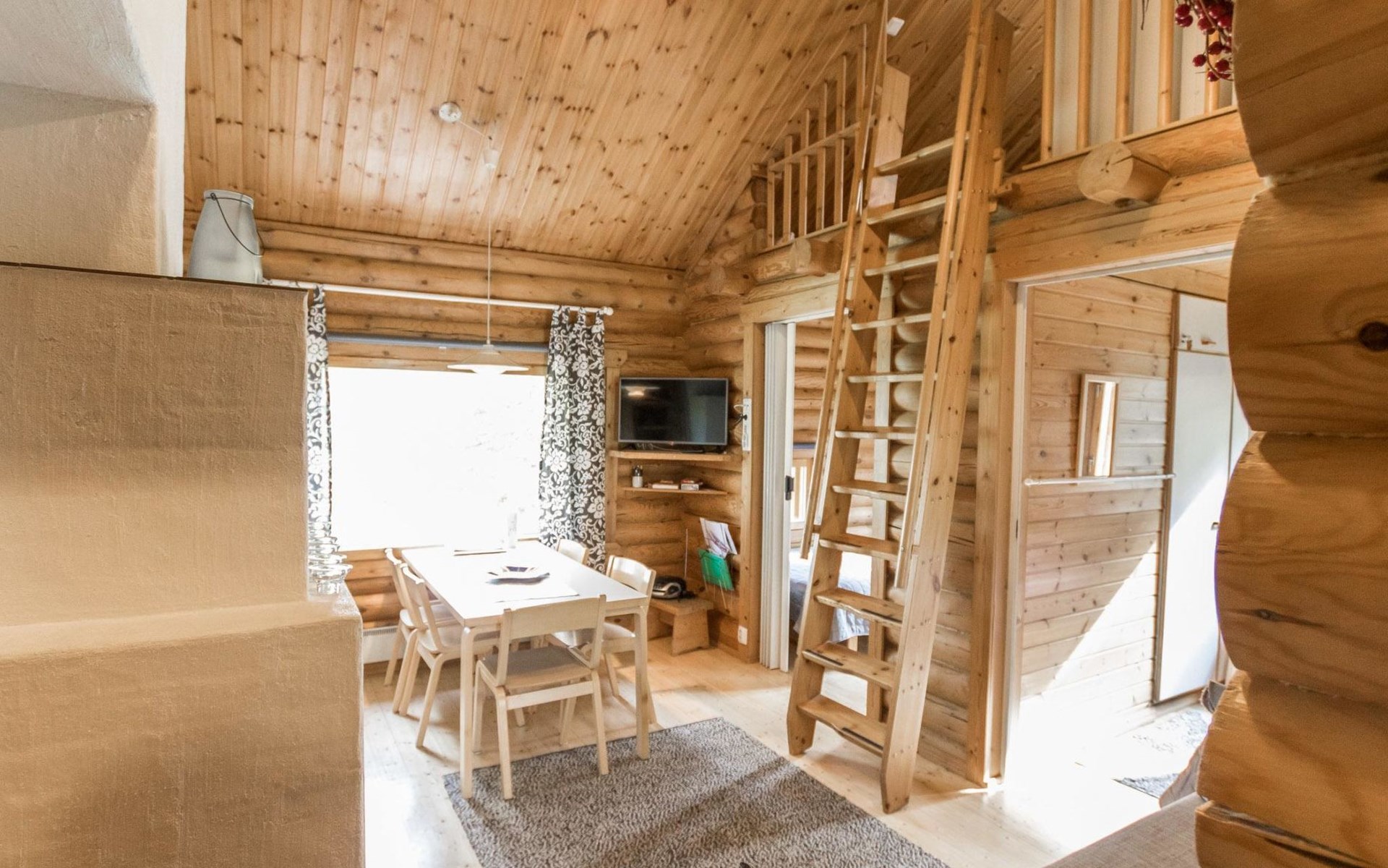 Log duplex apartment, built 1990. Livingroom, kitchen, two alcow (folding doors), each with 120 cm bed, two lofts (one 14 m² and one 9 m²) each with two separate beds, electric sauna, shower, separate toilet. Heated ski maintenance space; ski stand and heater.