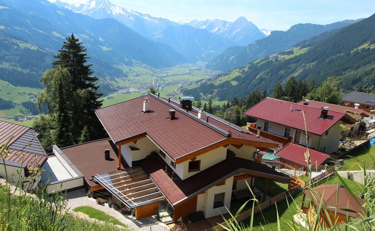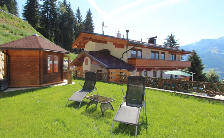 Zellberg 4 km from Zell am Ziller: Equipped with a unique wellness area, comfortable cottage "Anita", 960 m a.s.l.. Above Zell am Ziller, in the district of Zellberg, 4.5 km from the centre, in a quiet, sunny, elevated position on a slope, 6 km from the skiing area. For shared use: beautiful, well-kept terraced garden, 100 m2, lawn for sunbathing. Hot tub, arbour, garden furniture. In the house: WiFi, sauna, steam room, spa area, storage room for bicycles, storage room for skis, central heating system, ski boot dryer. Motor access to the house. In Winter: please take snow chains. Roofed, parking (limited number of spaces) at the house. Supermarket 4.5 km, restaurant 1.3 km, bus stop 4.5 km, railway station 4.5 km, outdoor swimming pool 4.5 km. Gondola lift 6 km, ski bus stop 10 m. Well-known ski regions can easily be reached: Zillertal Arena 6 km, Ski-Zillertal-3000 8 km. Please note: ski bus (free of charge). Additional accommodations can be booked. Wellness area opening hours 5:00 p.m. to 9:00 p.m. "Aqua Life" steam bath, a cedar wooden tub filled with pure spring water and heated to 35 - 40 degrees. 1 sauna towel and 1 bathrobe per person are available free of charge. The garden pavilion is heated and can accommodate 10 people. Toys available. E-bike shop for a fee. No charging option for electric cars at the house.