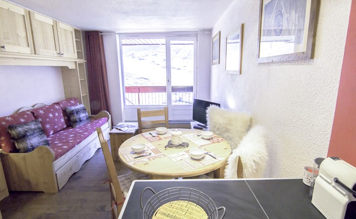 Tignes Val Claret: Residence "Les Tommeuses" - excellent location: central but quiet, right by the Tignes and Val d'Isère slopes, ski in ski out. Residence "Les Tommeuses (Val Claret)", 7 storeys. 20 m from the skiing area. In the complex: lift, storage room for skis, central heating system. Public car park at 700 m, extra. Grocery, restaurant 50 m, bus stop 600 m, indoor swimming pool 2 km. Sports centre 2 km, skisport facilities 100 m, slopes 20 m, ski rental 50 m, ski school 200 m, children's ski school 20 m, sled run 200 m. Nearby attractions: LAGON CENTRE AQUATIQUE 2 km, TIGNES ESPACE CENTRE SPORTIF 2 km, GOLF DE TIGNES 2 km, CINEMA 800 m. Well-known ski regions can easily be reached: TIGNES VAL D'ISERE 20 m. Well-known lakes can easily be reached: LAC DE TIGNES 2 km. Hiking paths: PARC DE LA VANOISE 20 m. Please note: ski bus (free of charge). Additional accommodations can be booked.