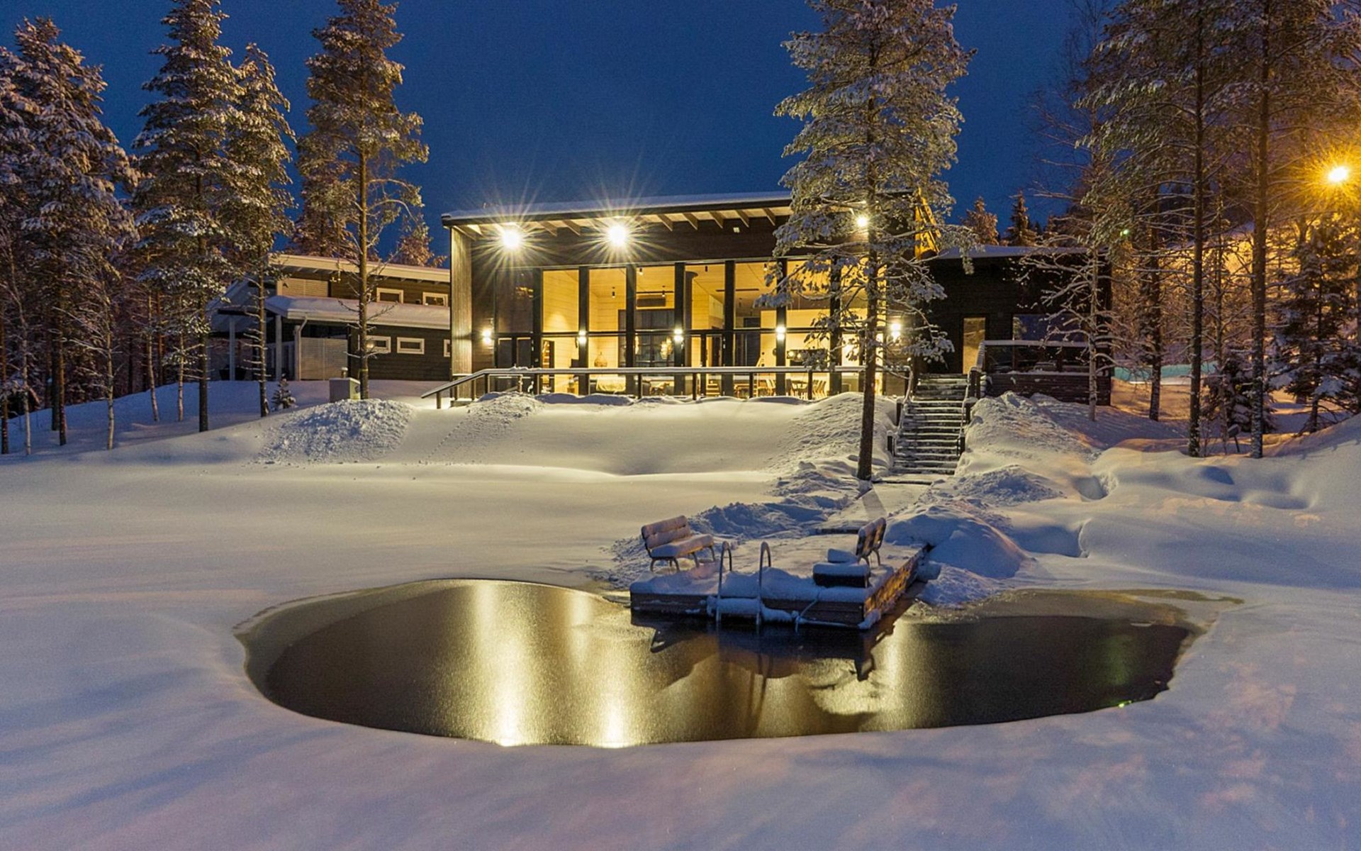 Private beach and pier and at additional fee an outdoor hydro massage bath on the terrace. High speed Wi-Fi connection suitable for work use. Modern audio equipment.