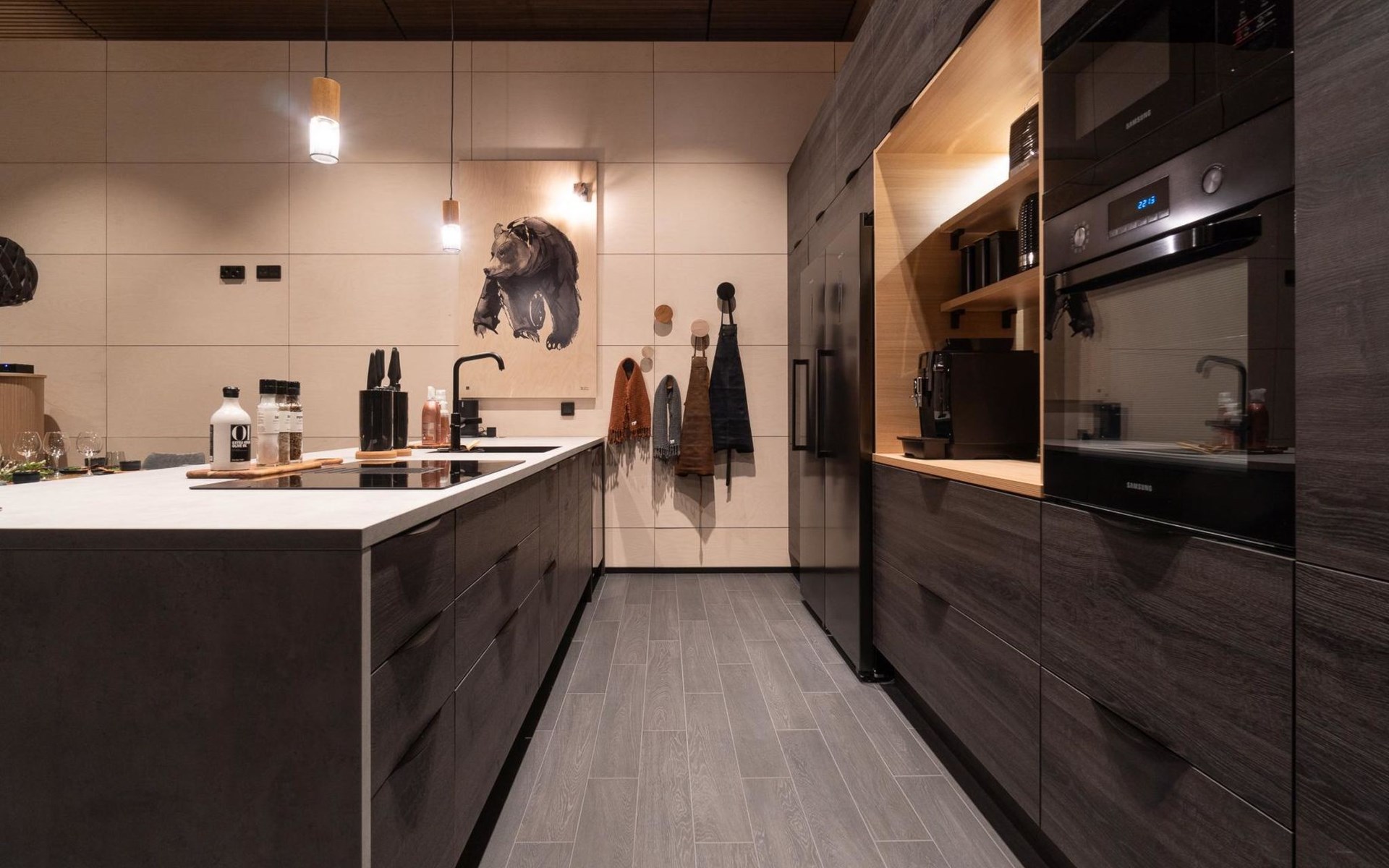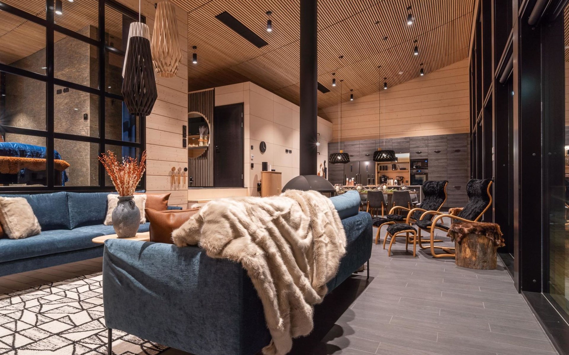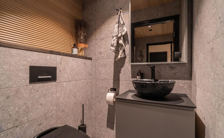 Five bedrooms, three WC and a large living area with kitchen and living room in the same space.