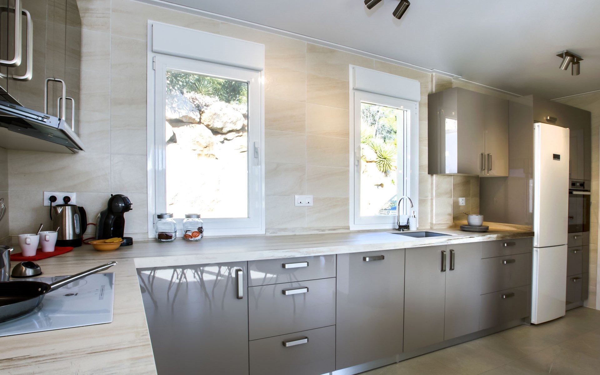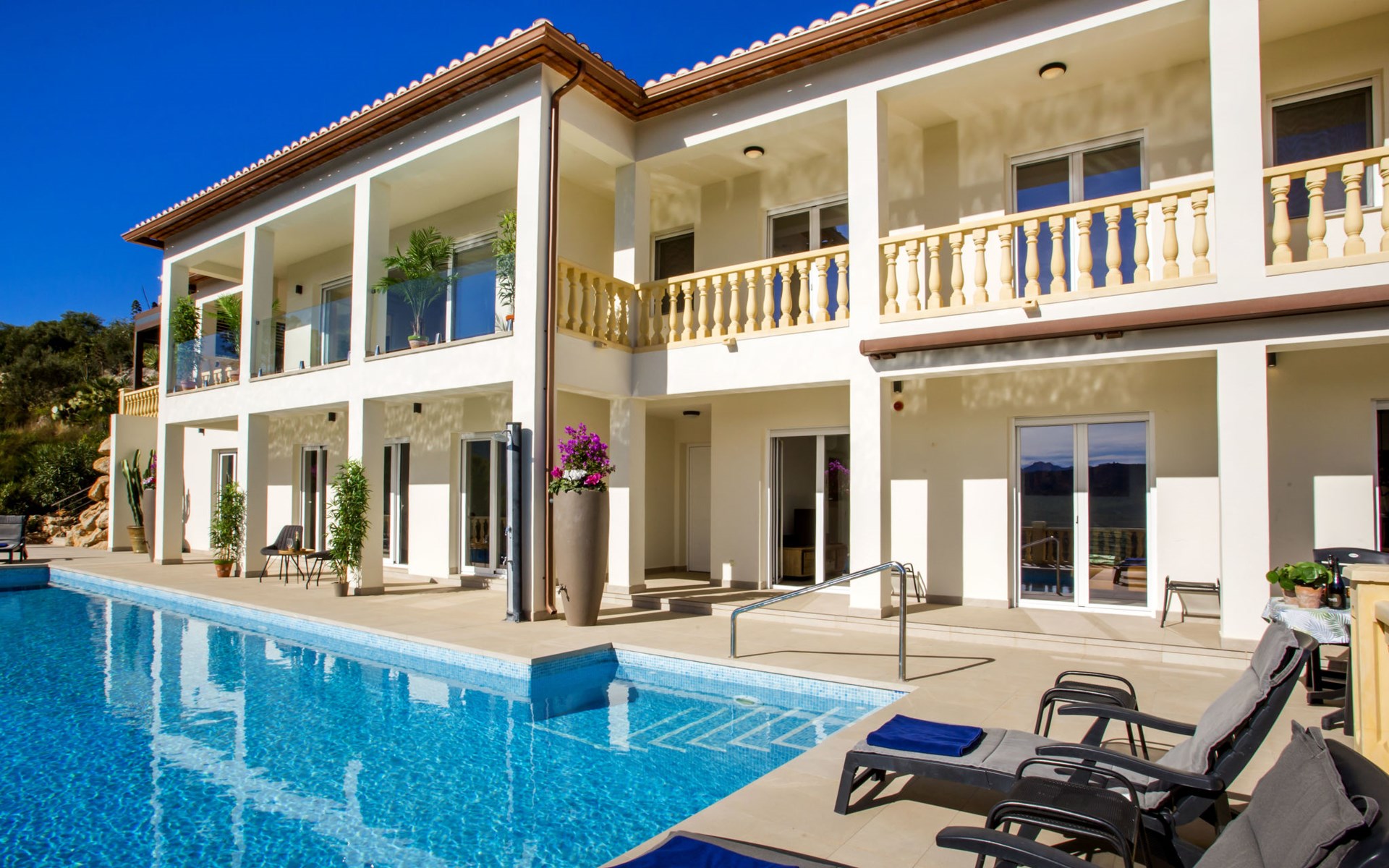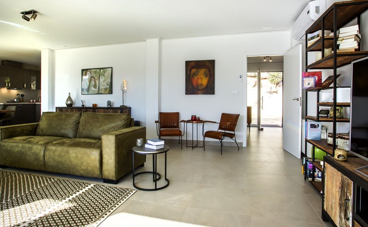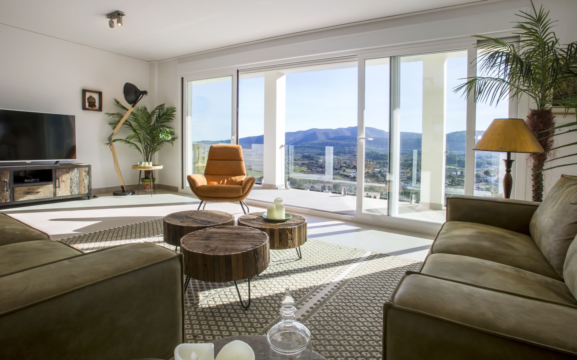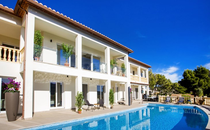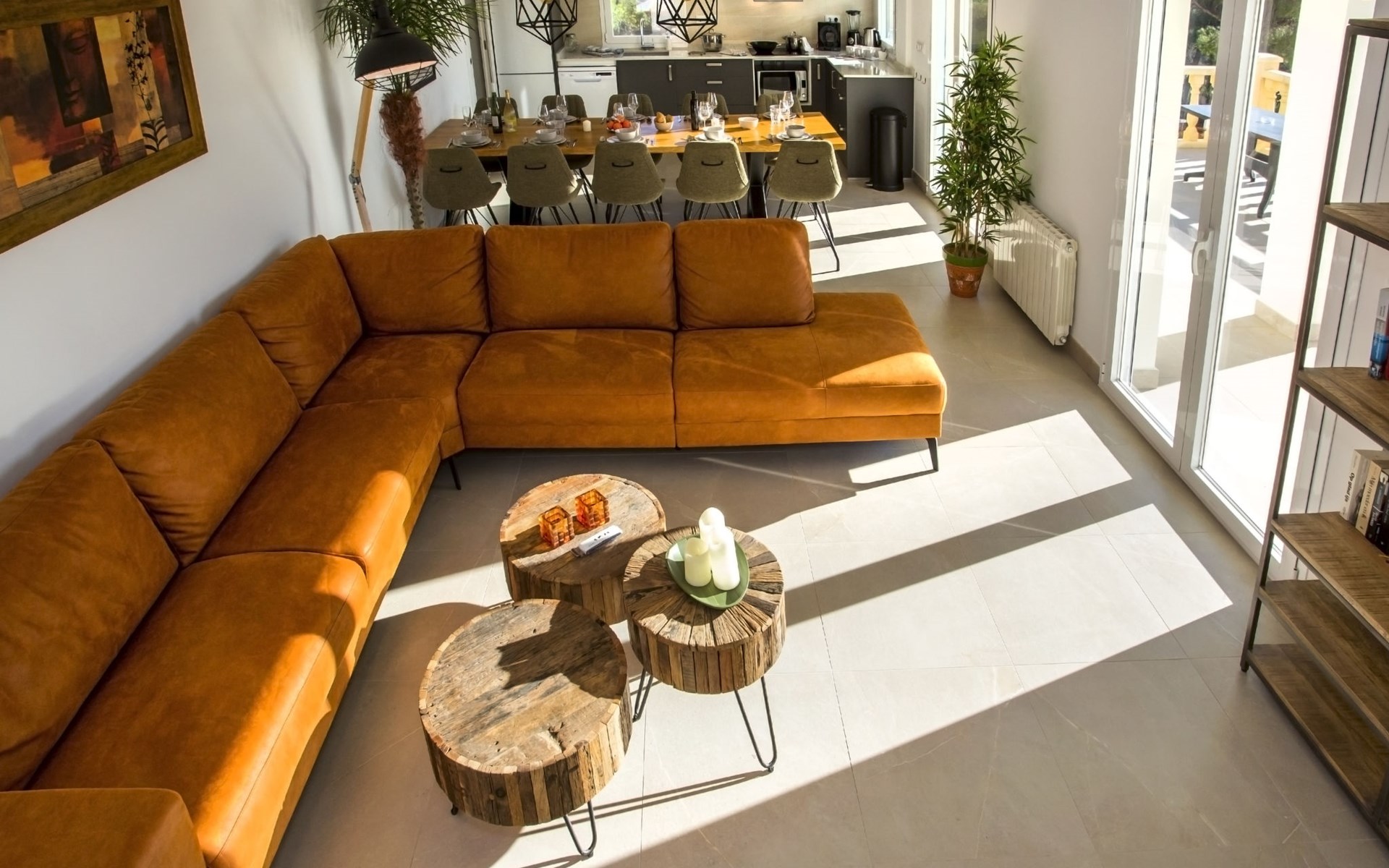 Very large, modern, very comfortable villa "Cara Mull Alcalalí", 2 storeys, built in 2020, surrounded by trees, meadows and vineyards. In the resort Alcalalí, 20 km from the centre of Calpe,Dénia,Javea,Moraira,Altea, in a quiet, sunny, elevated position, 17 km from the sea, 17 km from the beach, south facing position. Private: property 2'500 m2, large, beautiful, well-kept terraced garden wildlife garden and trees, swimming pool (15 x 6 m, depth 130 - 200 cm, seasonal availability: 01.Jan. - 31.Dec.) with internal staircase. Outdoor shower, pergola, terrace, garden furniture, barbecue, pool maintenance by the owner/gardener. In the house: lift, central heating system, air conditioning, laundry, washing machine, tumble dryer. Parking (for 5 cars) on the premises. Shop 600 m, supermarket 3 km, shopping centre 550 m, restaurant, bakery 600 m, café 500 m, bicycle rental 2 km, bus stop 22 km, railway station 21 km, ferry 22 km. Walking paths from the house 500 m. Nearby attractions: Rastro/Flea Market de Jalón 3 km, Parque Natural del Peñón de Ifach 17 km, Port de l'Olla de Altea 16 km, Fuentes del Algar 12 km. Hiking paths: cicloturismo 50 m. Please note: car recommended. The owner does not accept any youth groups.