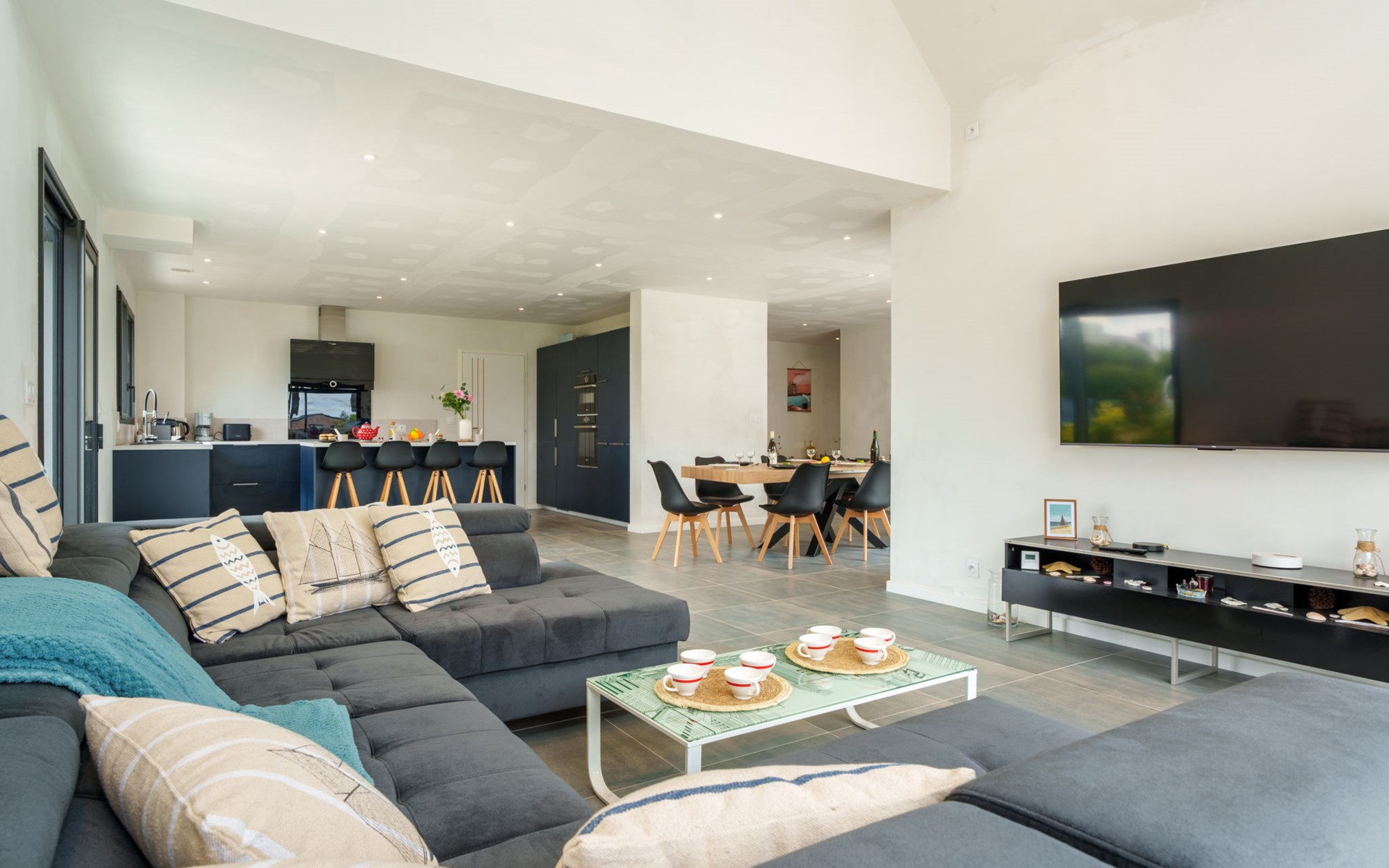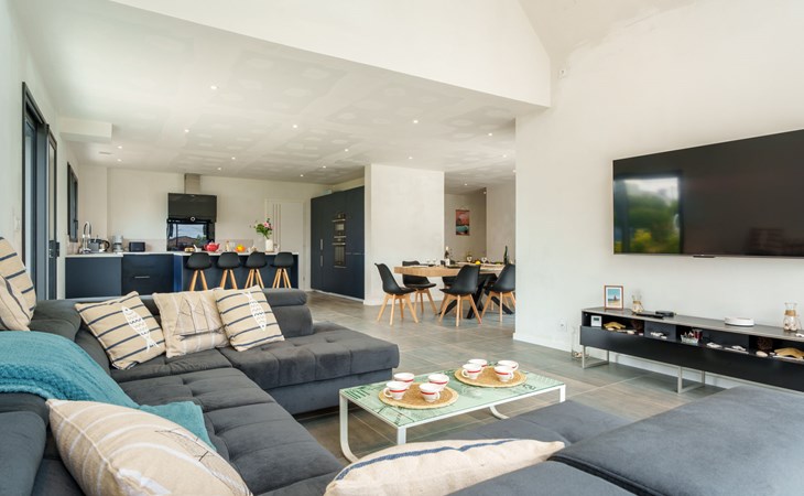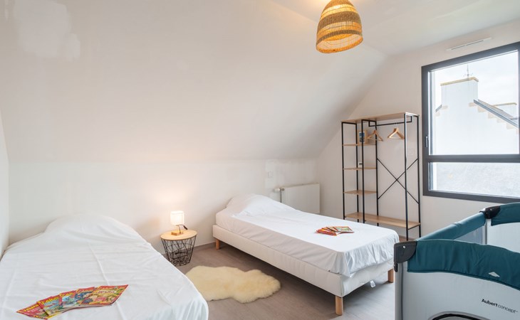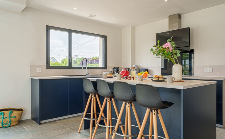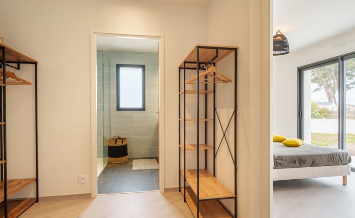 St Pierre Quiberon 4 km from Quiberon: Beautiful single-family house "Les Voiles", built in 2023. In the resort 1 km from the centre of Saint Pierre de Quiberon, 600 m from the sea, 600 m from the beach. Private: well-kept garden 300 m2 (not fenced) lawn, parking on the premises. Shop 2 km, supermarket 3 km, restaurant 2 km, sandy beach "Le Rohu" 600 m, outdoor swimming pool 3 km. Golf course (18 hole) 18 km, surf school 6 km, sailing school 200 m, tennis 2 km, riding stable 2 km. Nearby attractions: Presqu'ile de Quiberon, Belle ile en Mer, Houat, Hoedic, Carnac et les Alignments 12 km, La Trinité sur Mer 16 km, Vannes 35 km, Lorient 55 km. The keys‘ handover takes place by the agency Interhome in Quiberon, 3 km.