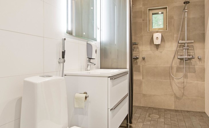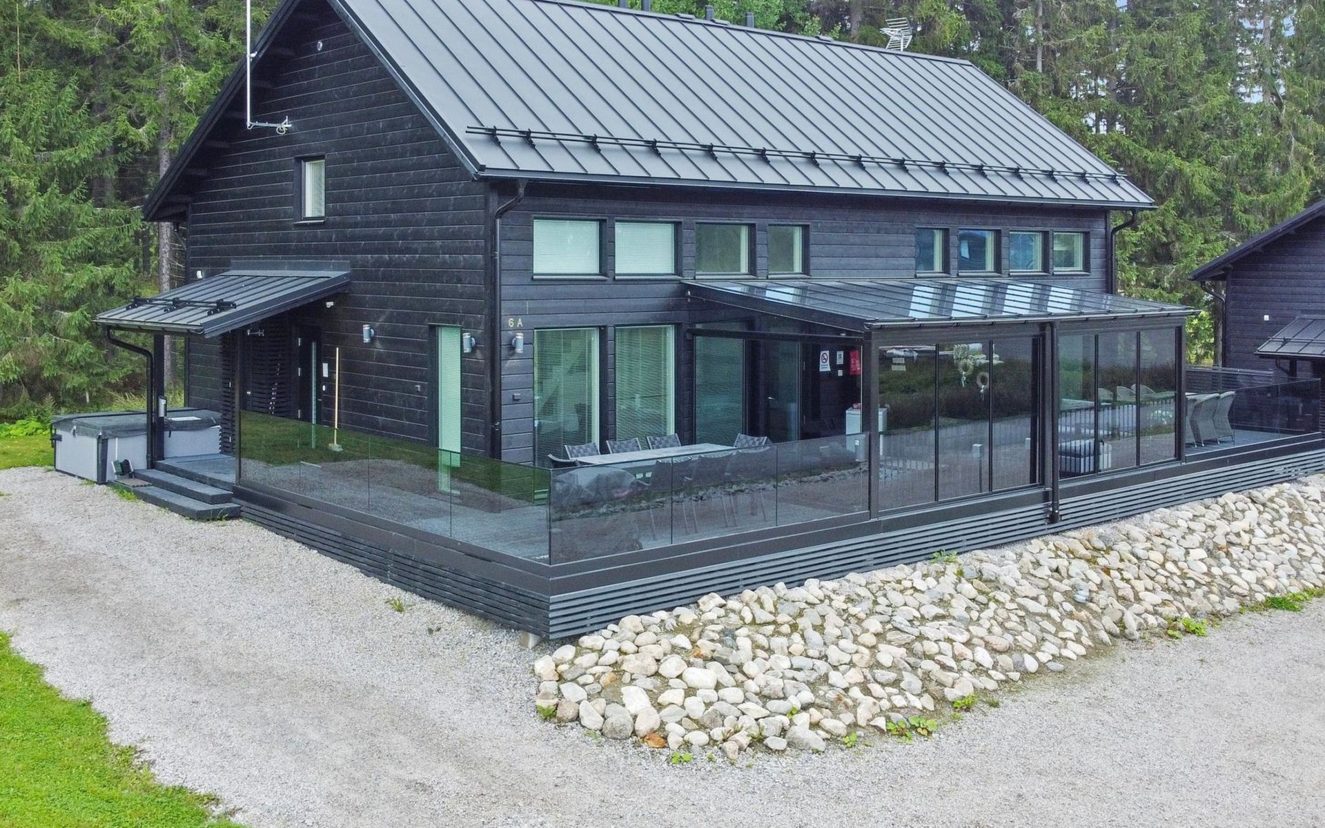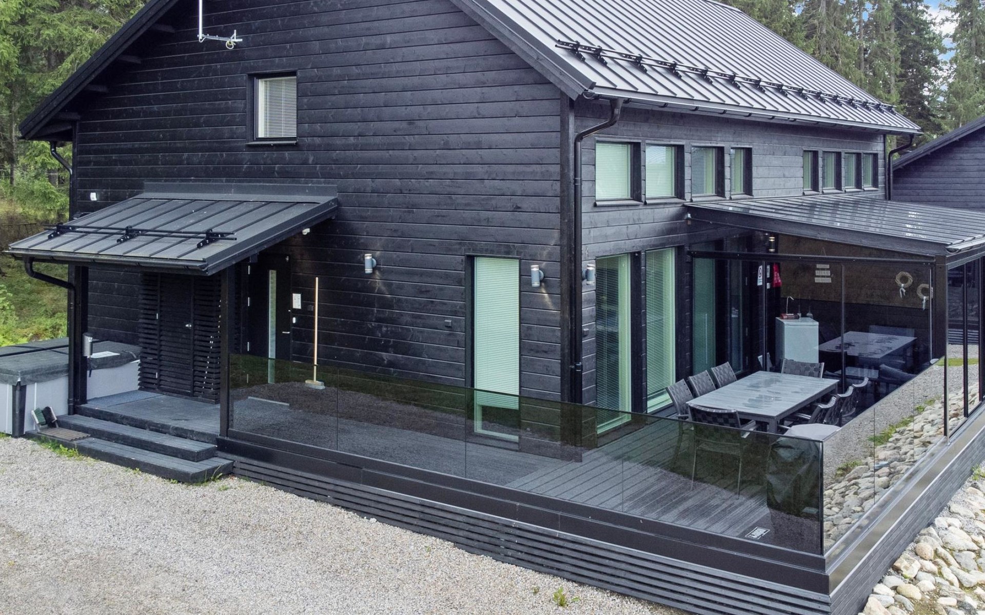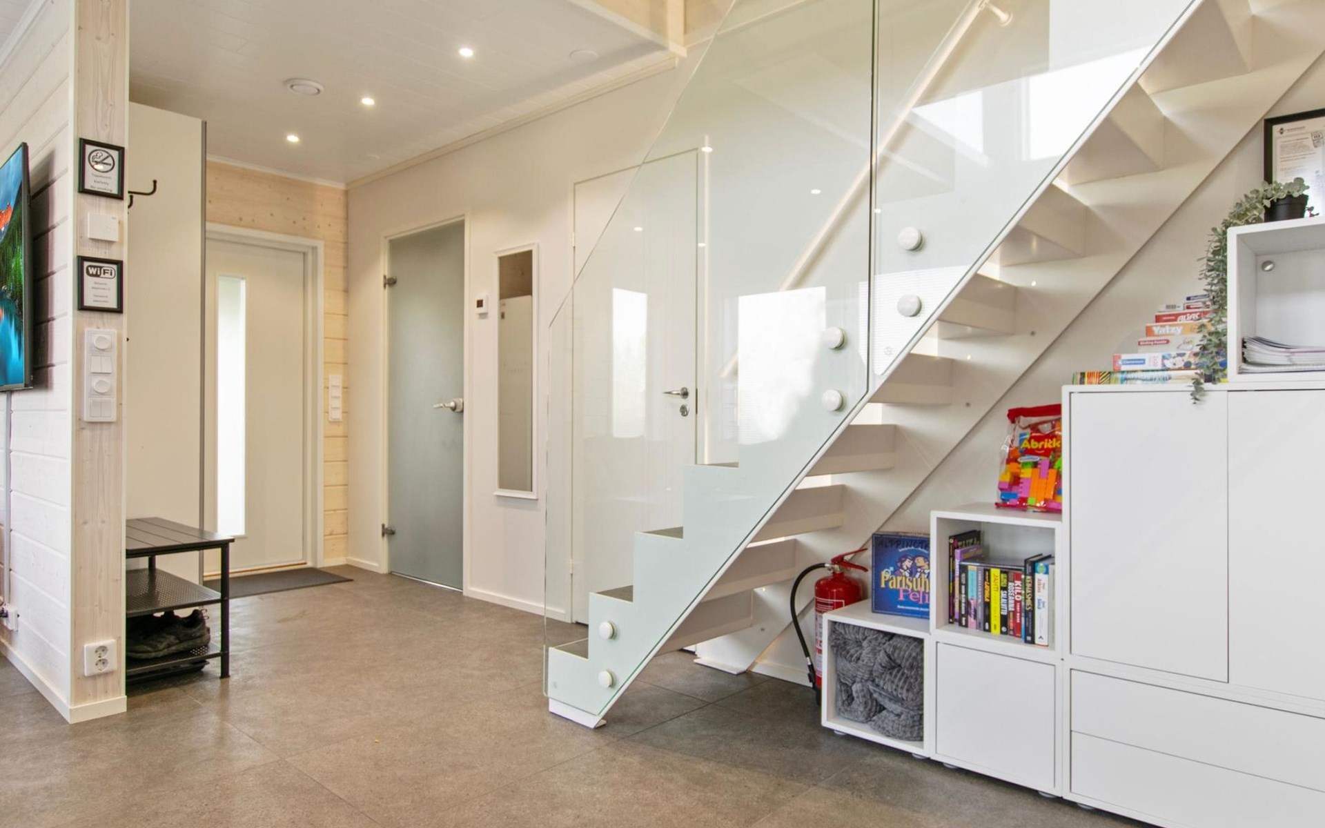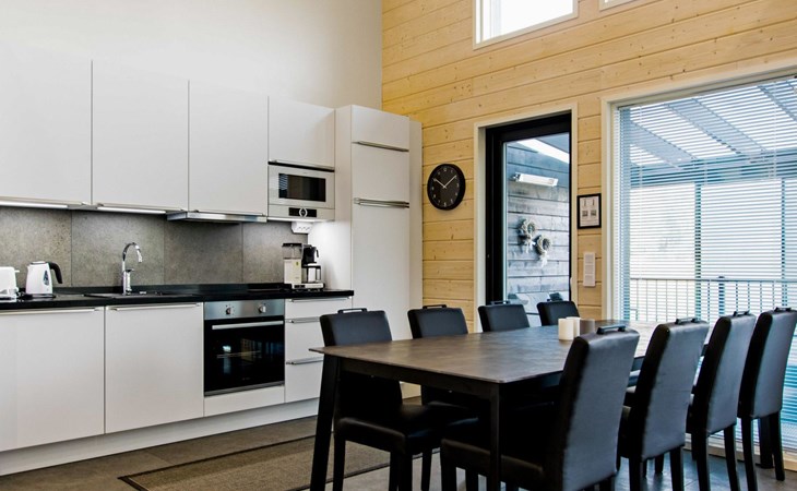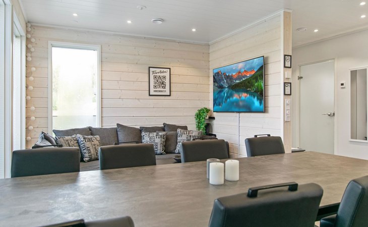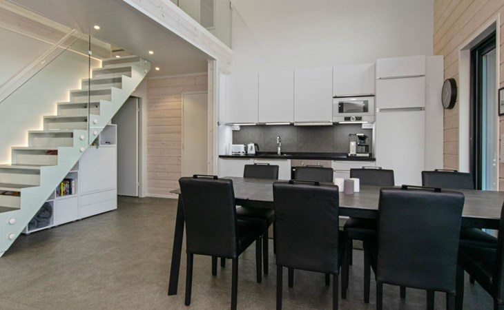 The apartment can be connected to the adjacent apartment (17220 Himos Alppinotko 6 B) if both sides are rented by the same tenant. There are two soundproof interconnecting doors on the ground floor between the apartments, which can be opened upon request in advance from the owner.