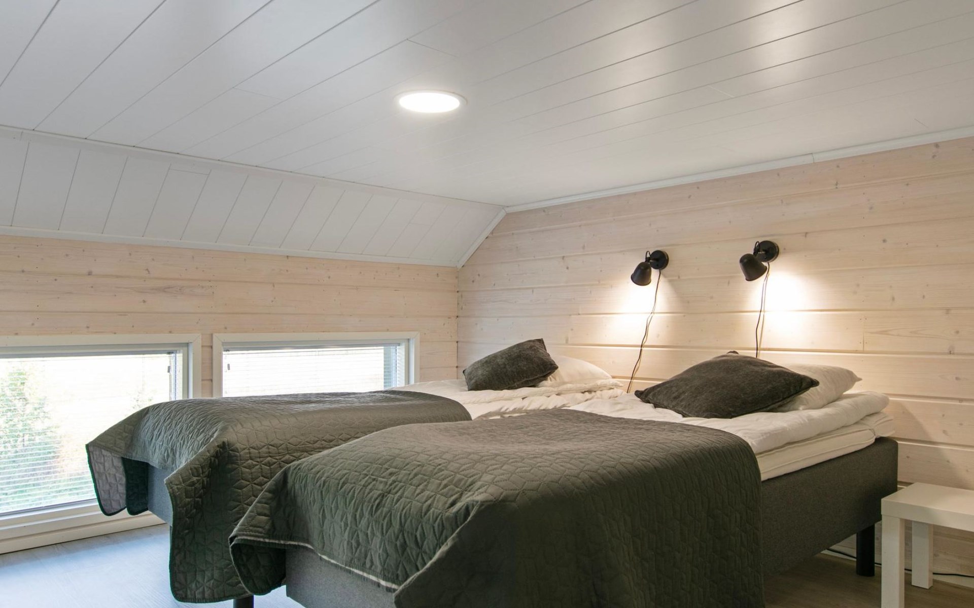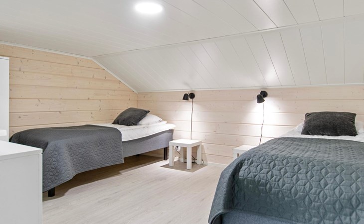 On the ground floor, there is one bedroom with two beds.