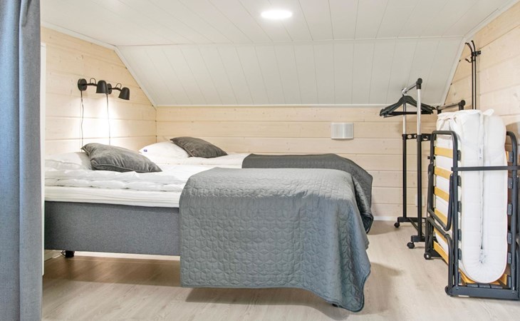 The spacious upper floor has 7 beds. In the living room there is a sofa bed 160 x 200 cm as an extra bed, but maximum number of guests is 10.