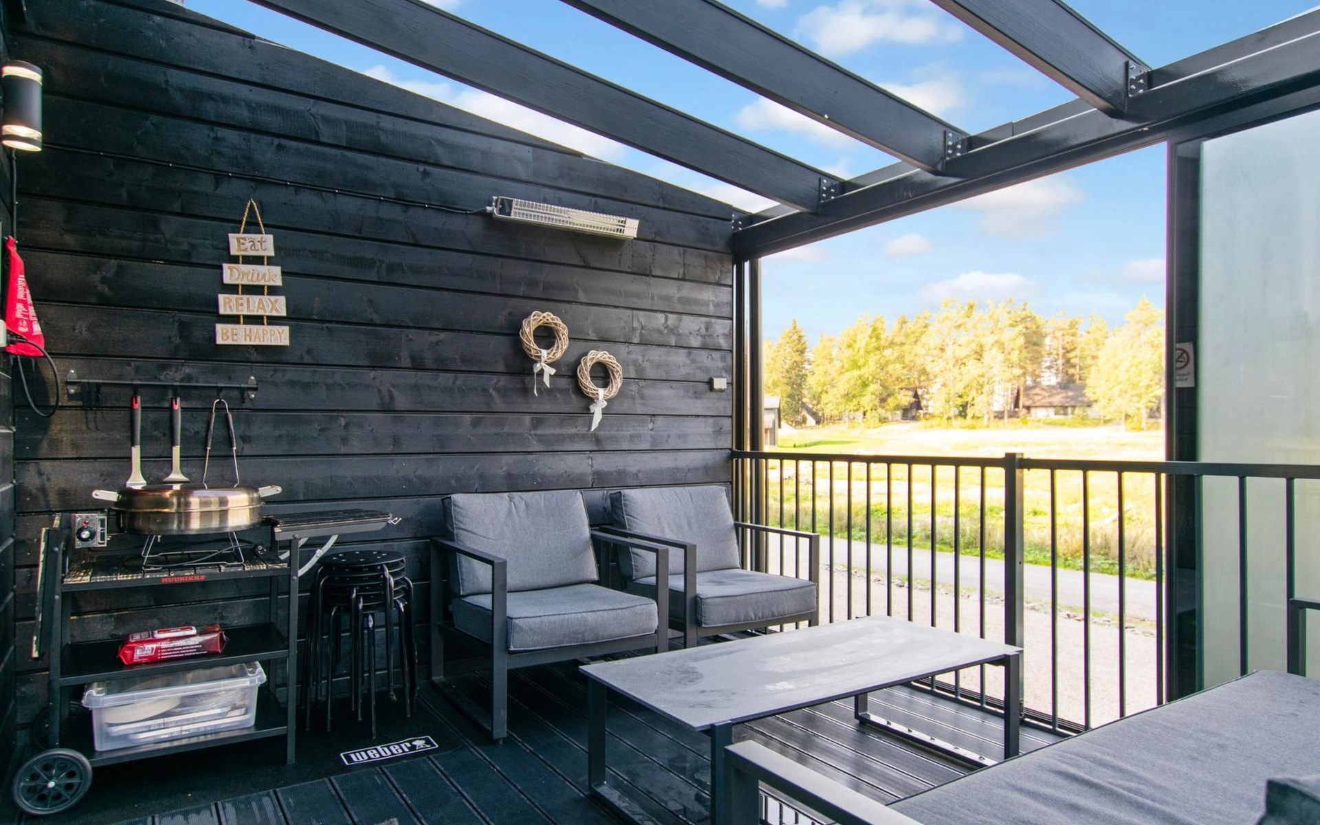The cabin's large yard has an electric socket. The use of the socket for heating a car is included in the rental. If the socket is used for charging an electric car, an additional fee will be charged, which can be reserved at the time of booking through Lomarengas online store.