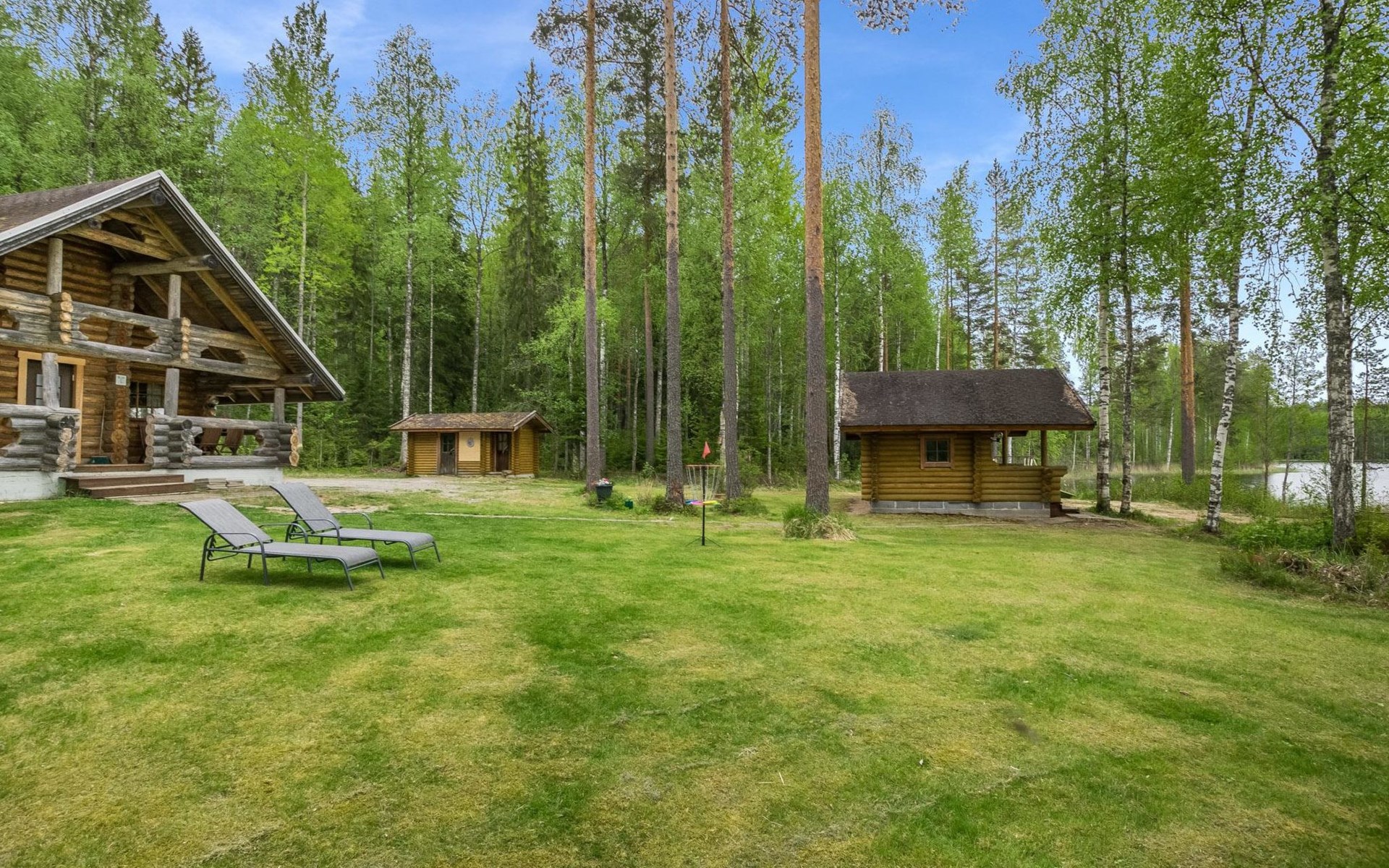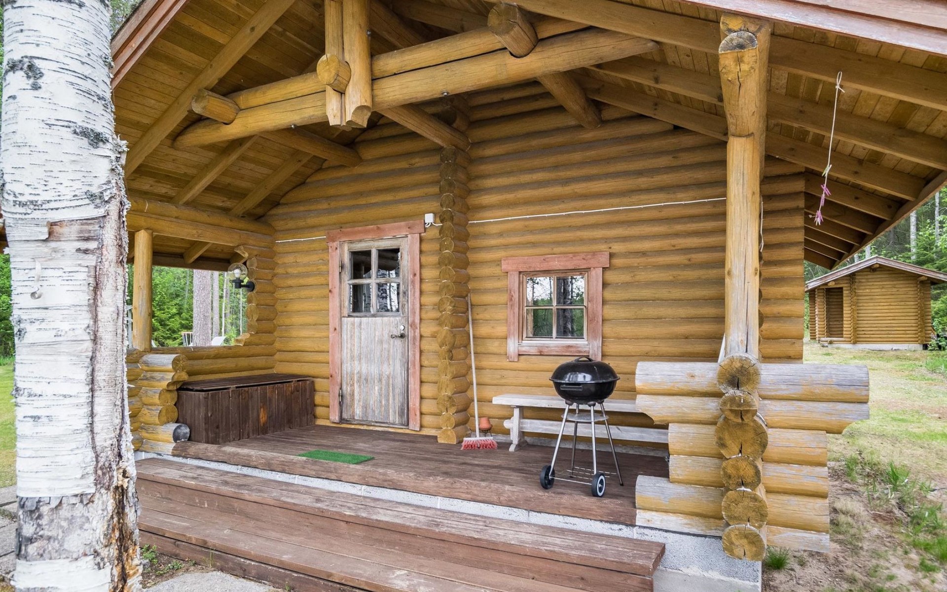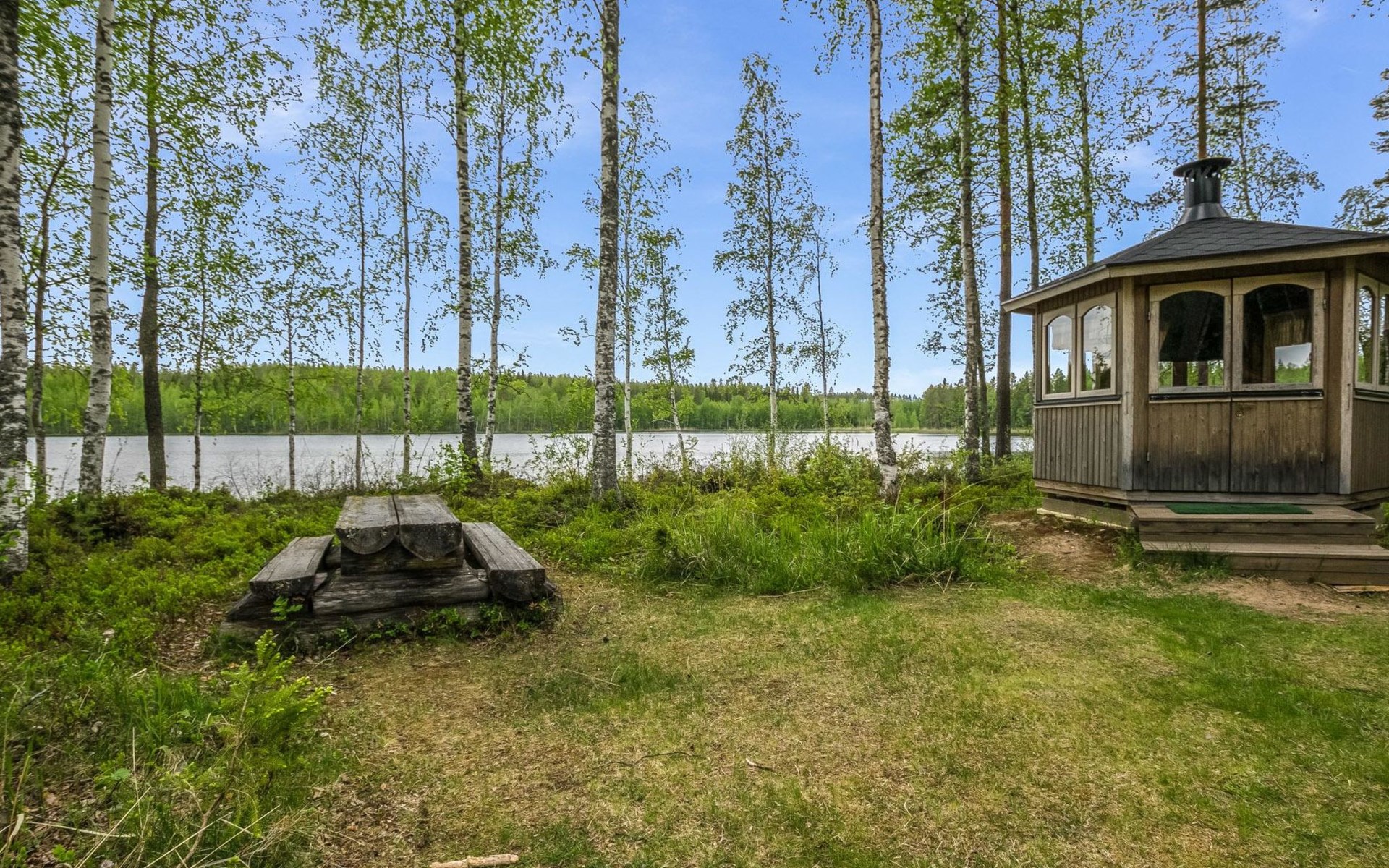 Separate lakeside sauna, dressing room, cold water only in summer, in winter water must be carried from the cottage . Roofed barbecue place.