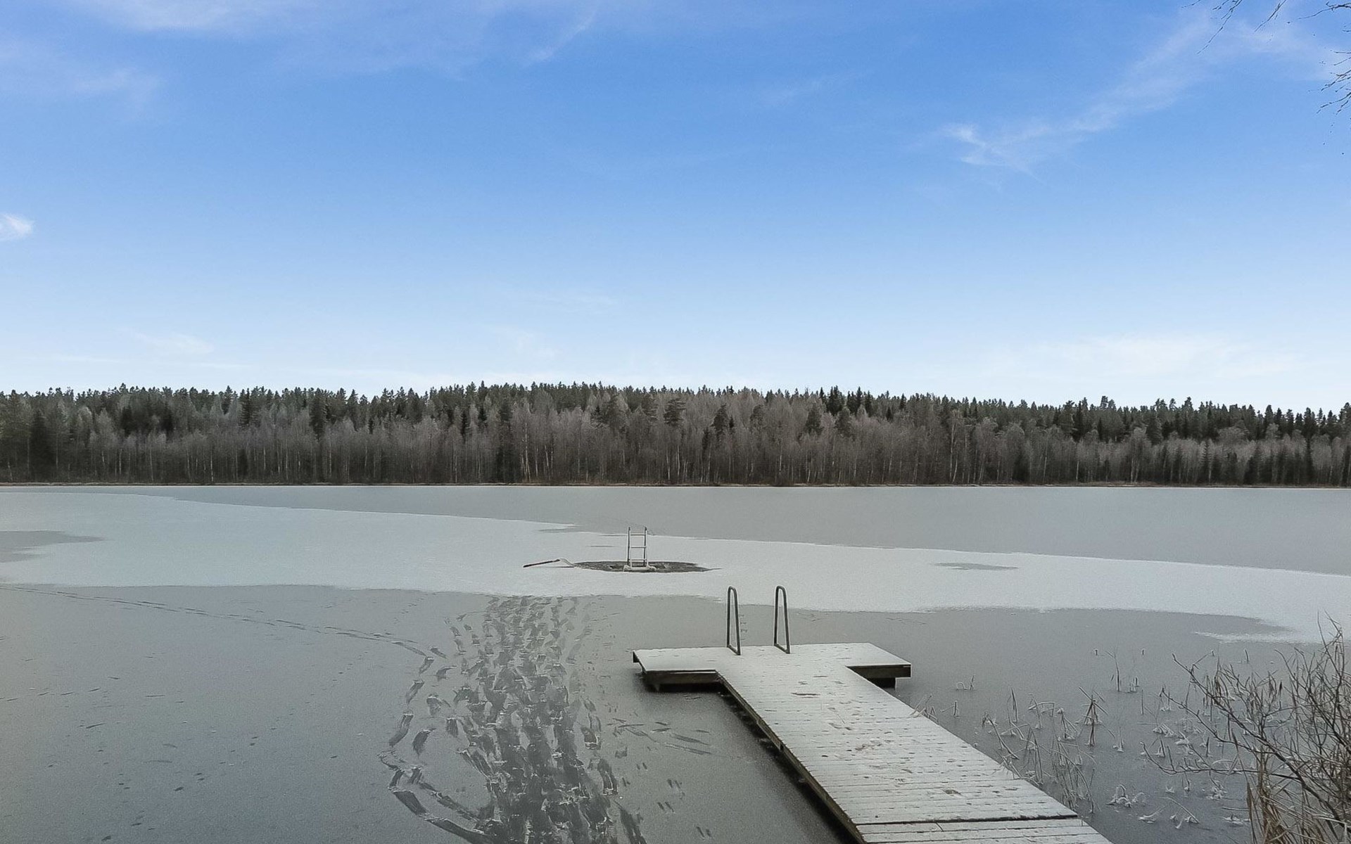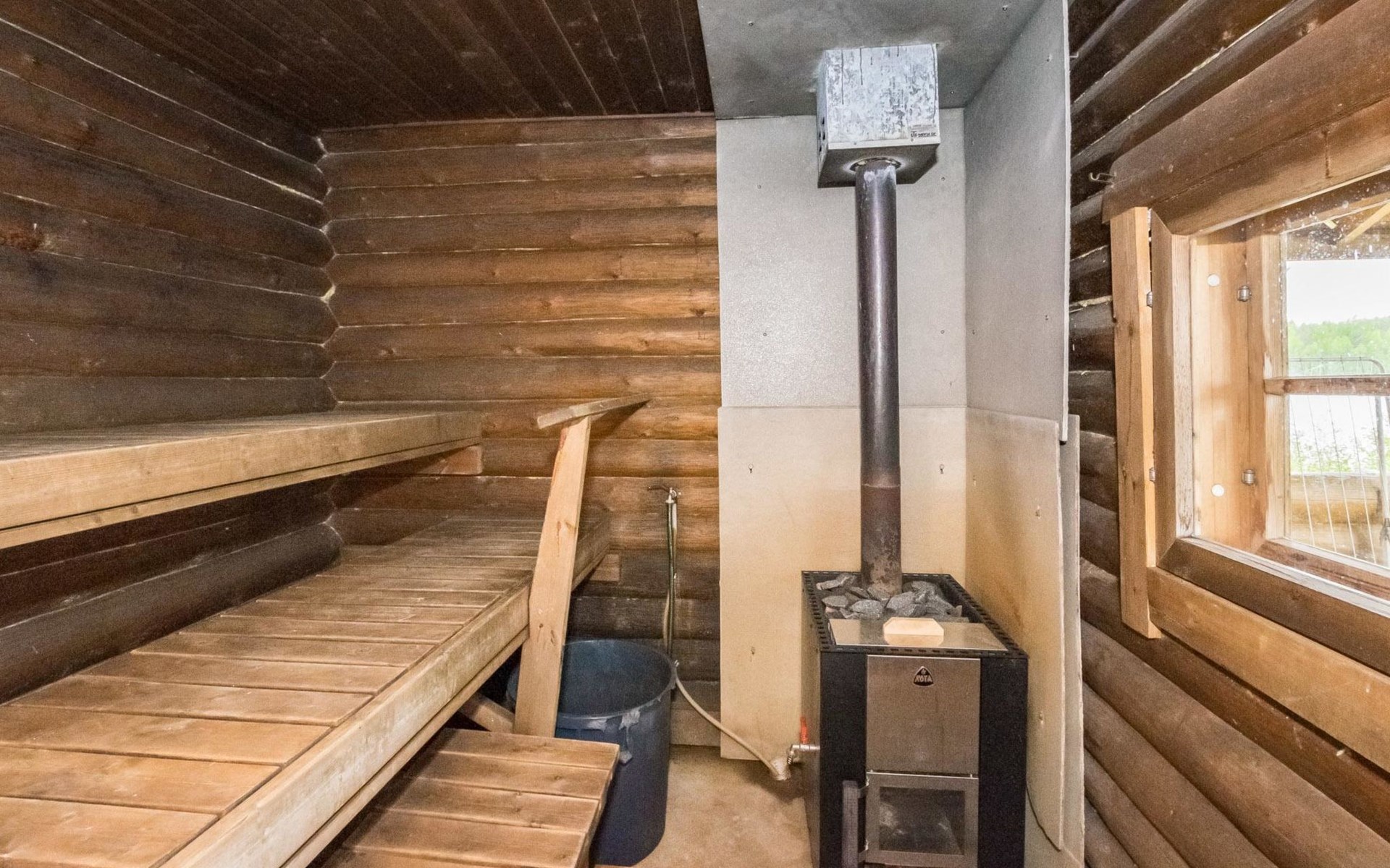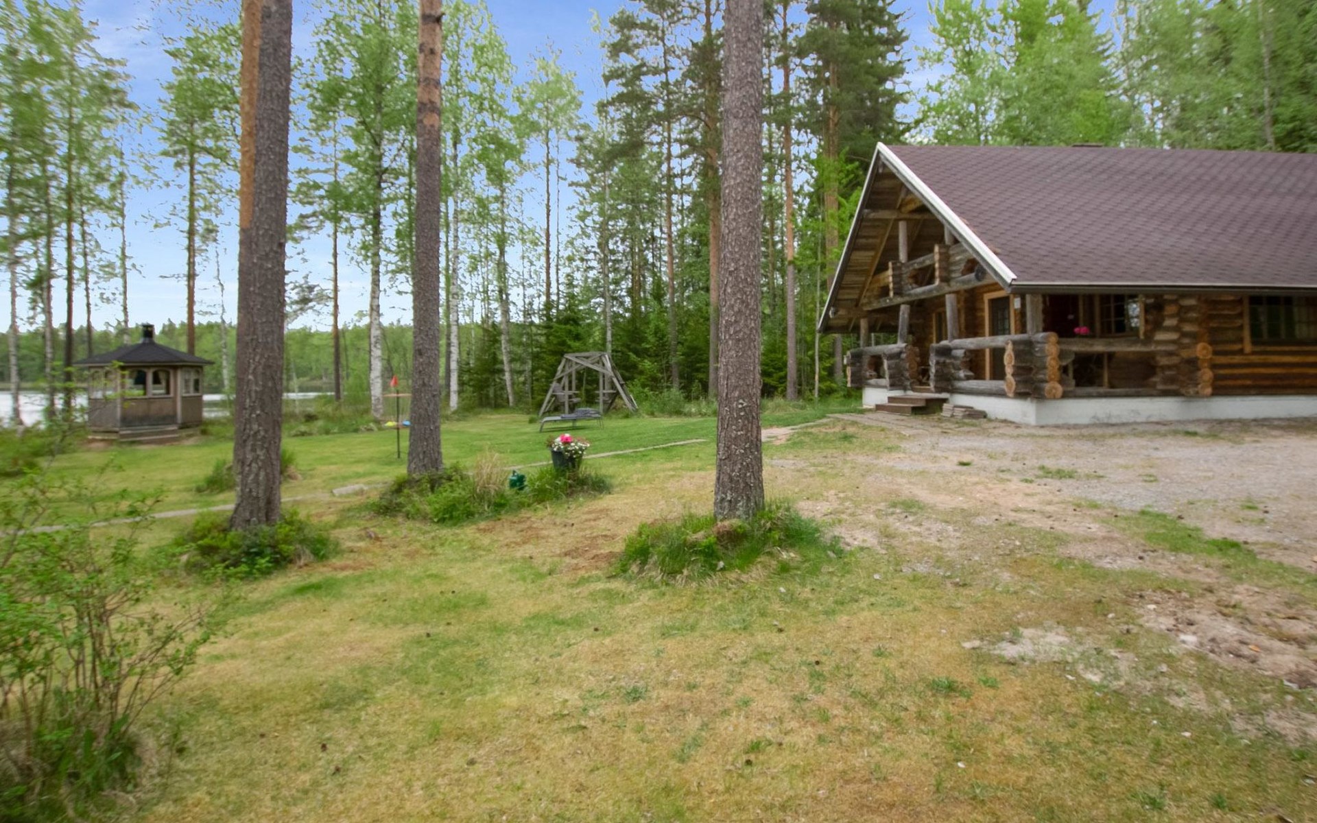Separate lakeside sauna, dressing room, cold water only in summer, in winter water must be carried from the cottage . Roofed barbecue place.