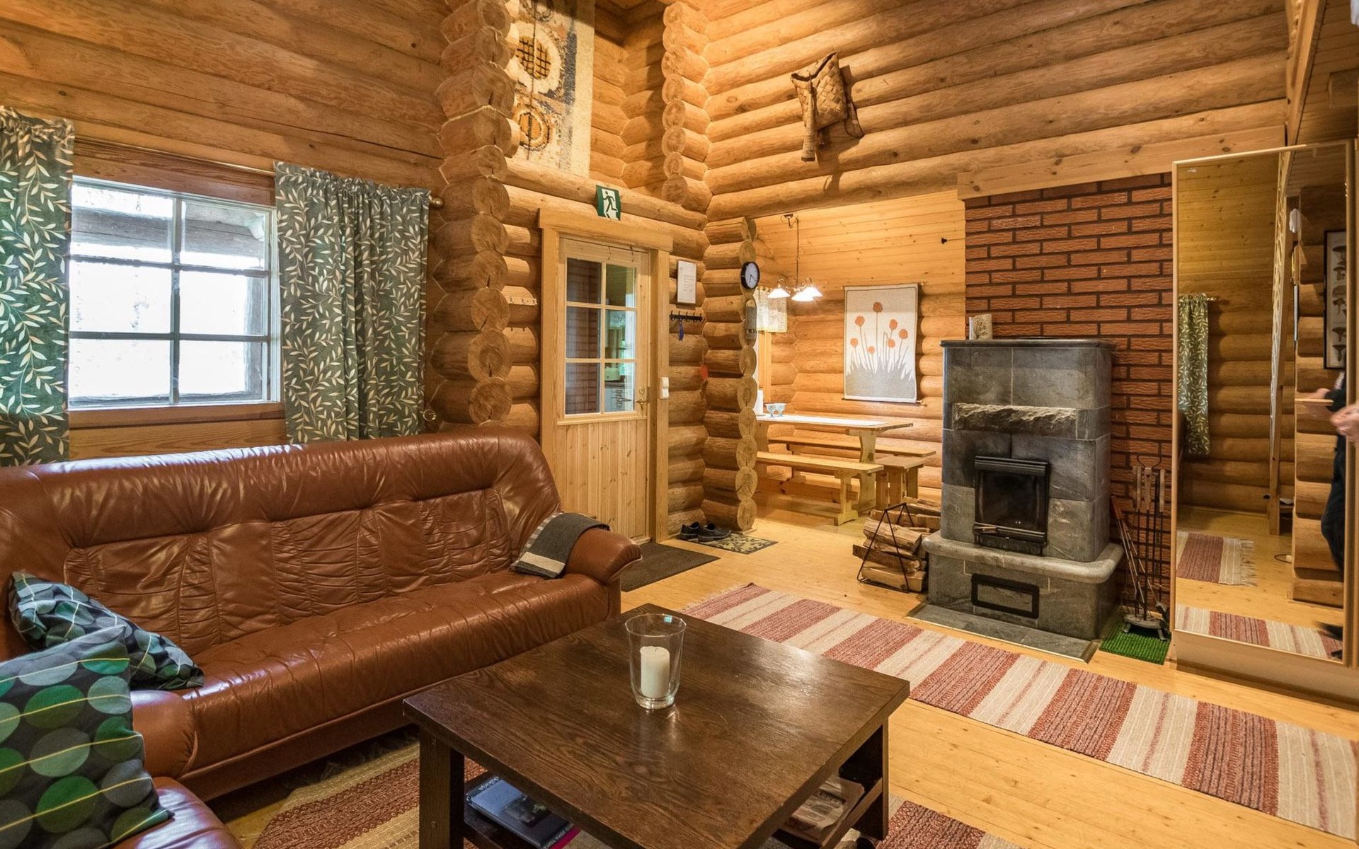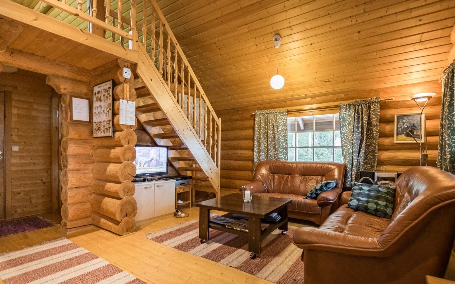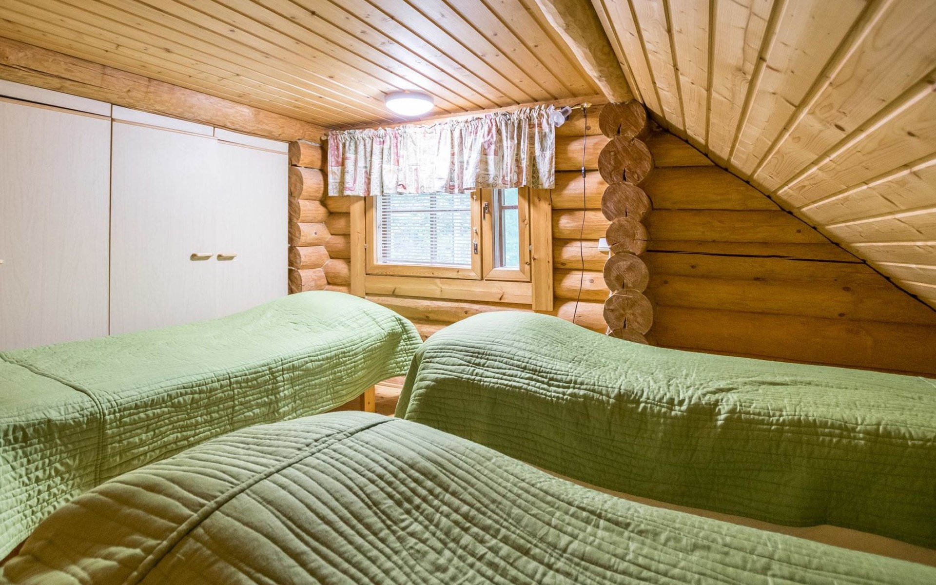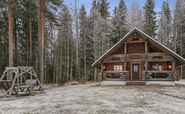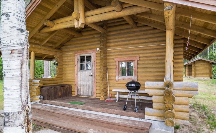 Log cabin 1993, kitchen, living room, 2 bedrooms with 2 beds in each, unlike the pictures sleeping loft (10 m2) with 2 beds, open veranda.