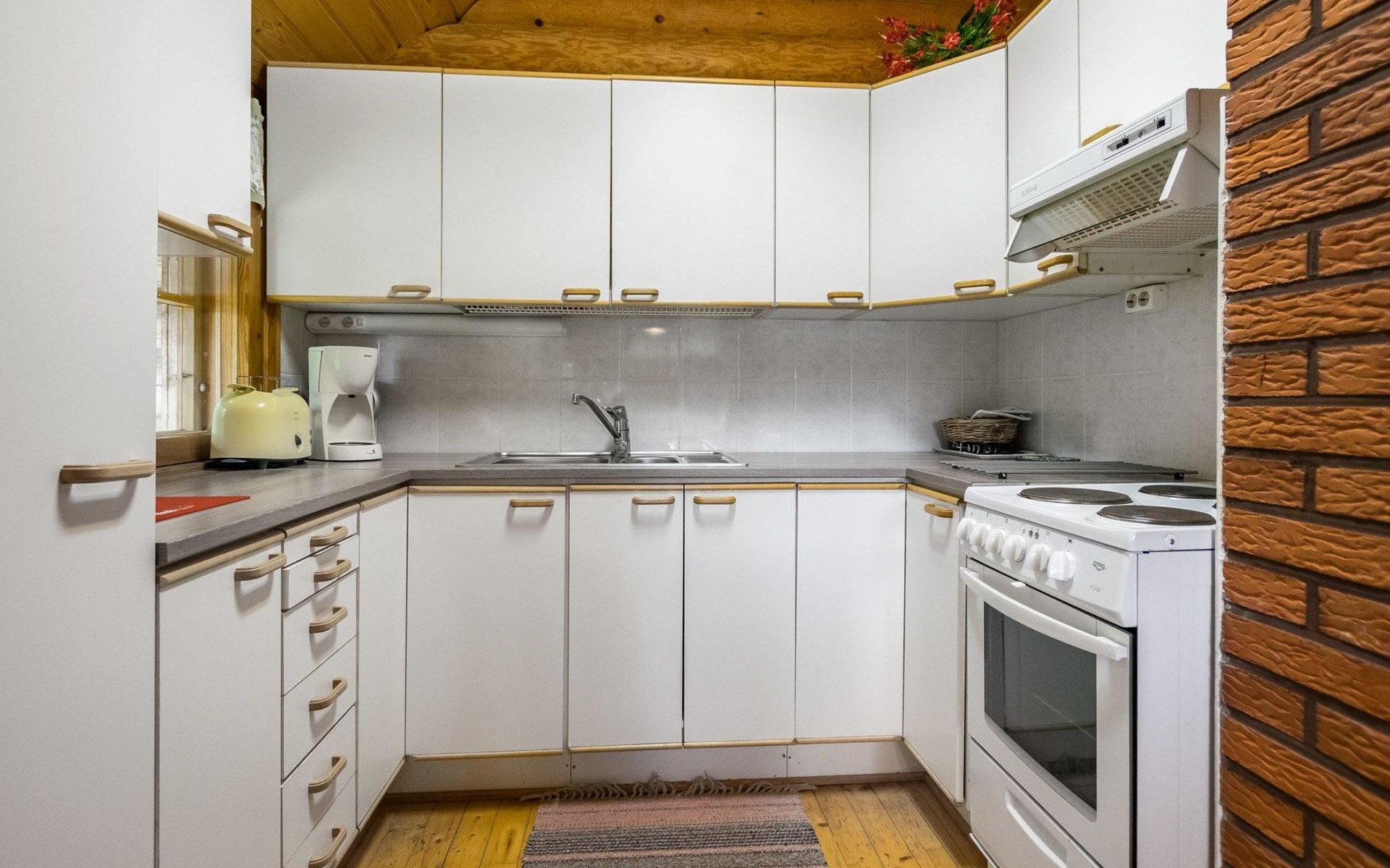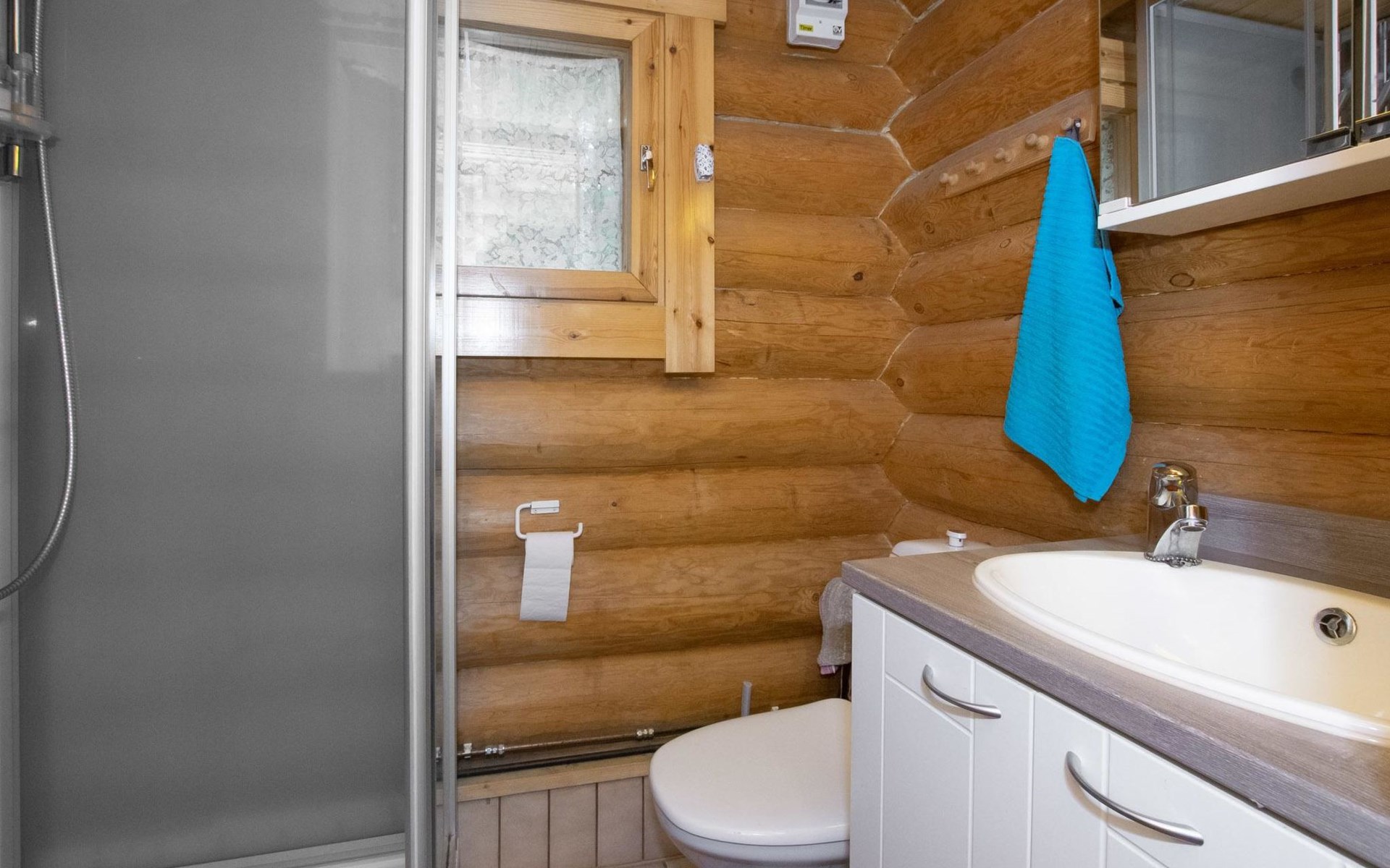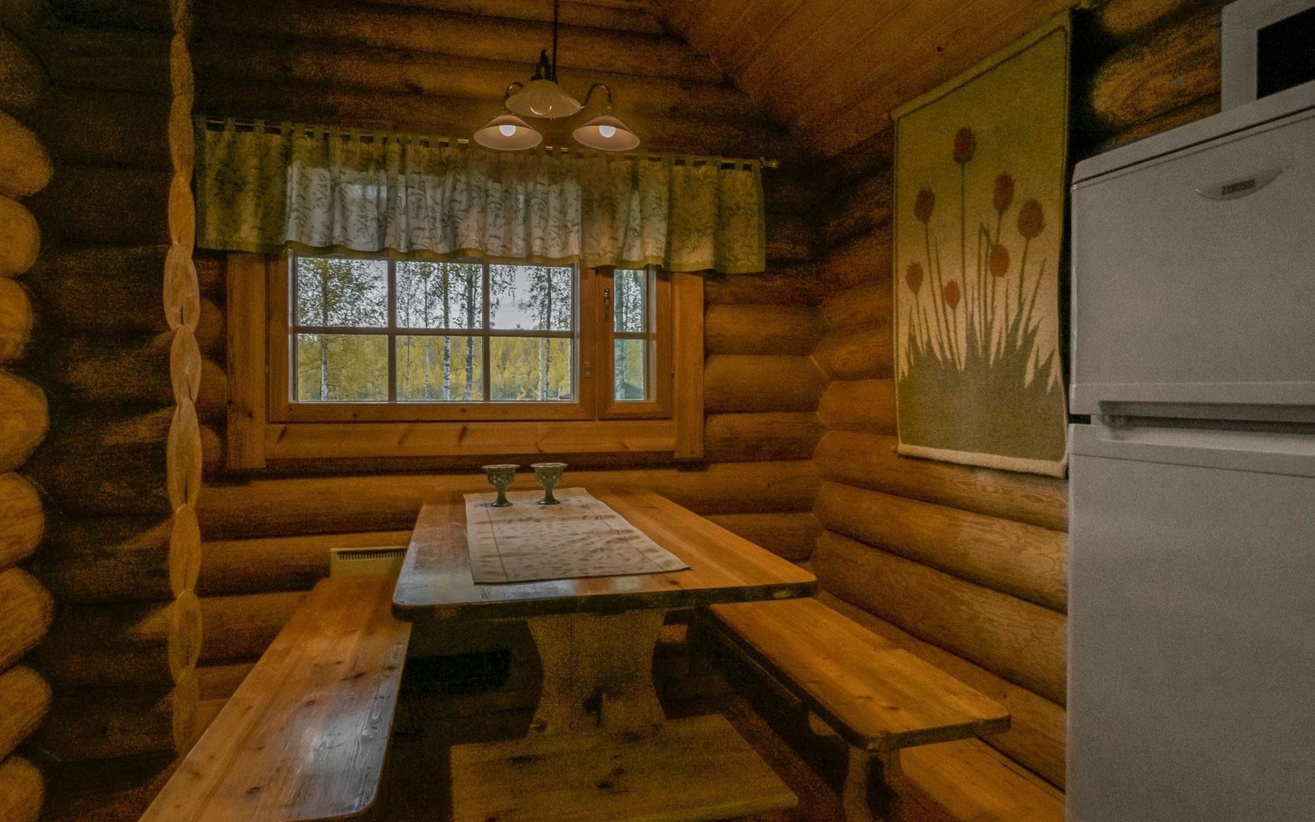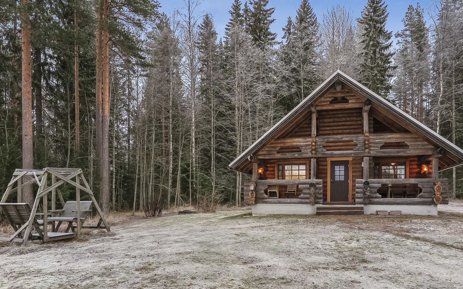 Log cabin 1993, kitchen, living room, 2 bedrooms with 2 beds in each, unlike the pictures sleeping loft (10 m2) with 2 beds, open veranda.