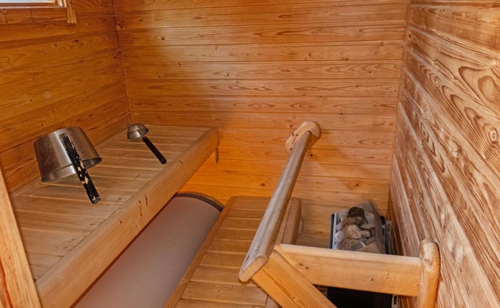 The apartment also has its own sauna and bathroom, as well as a small terrace.