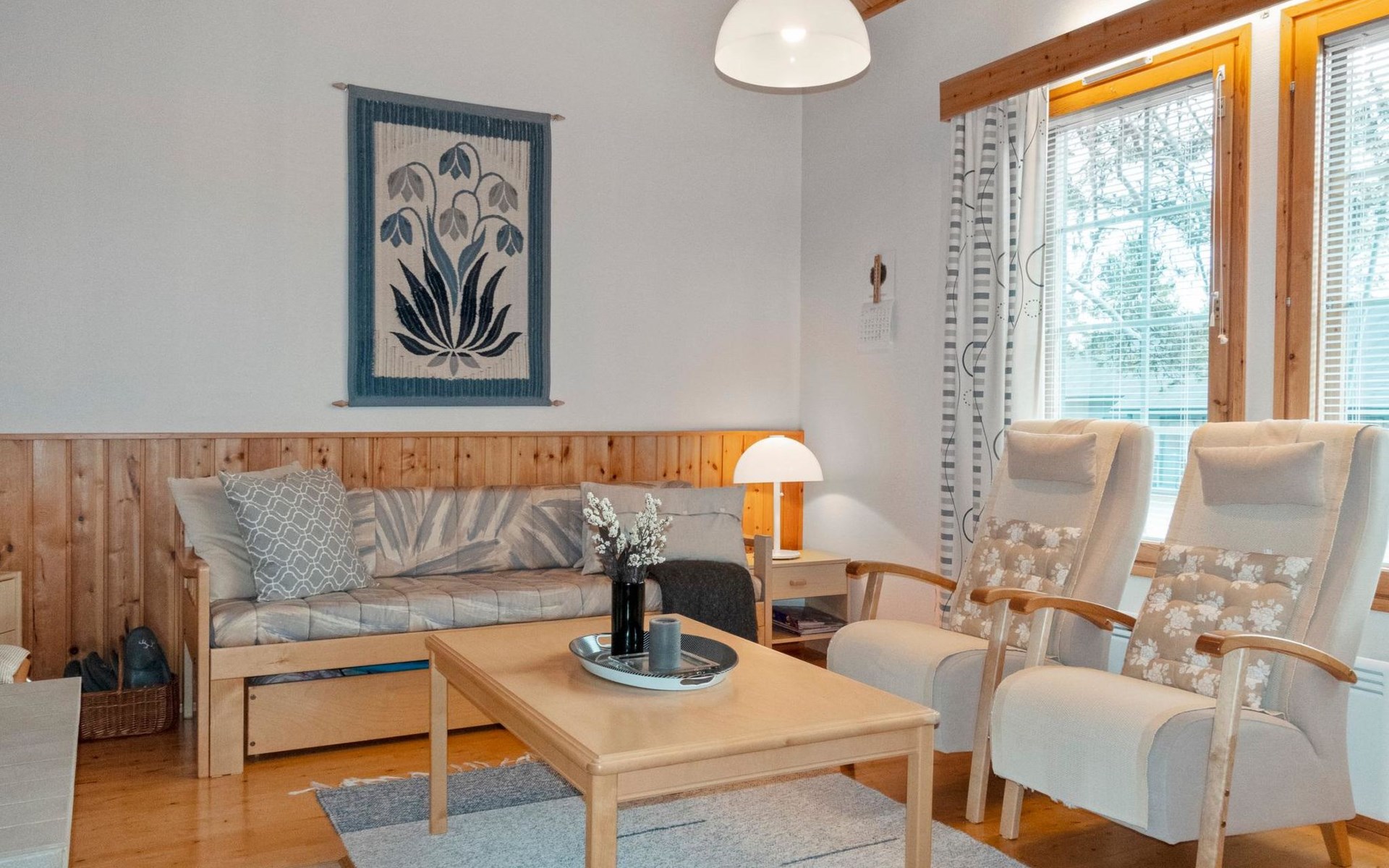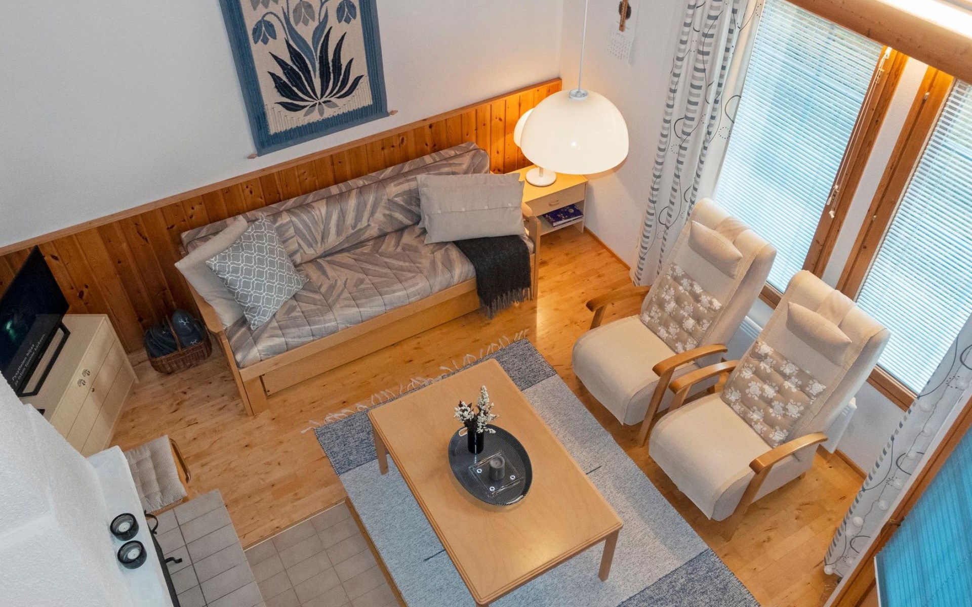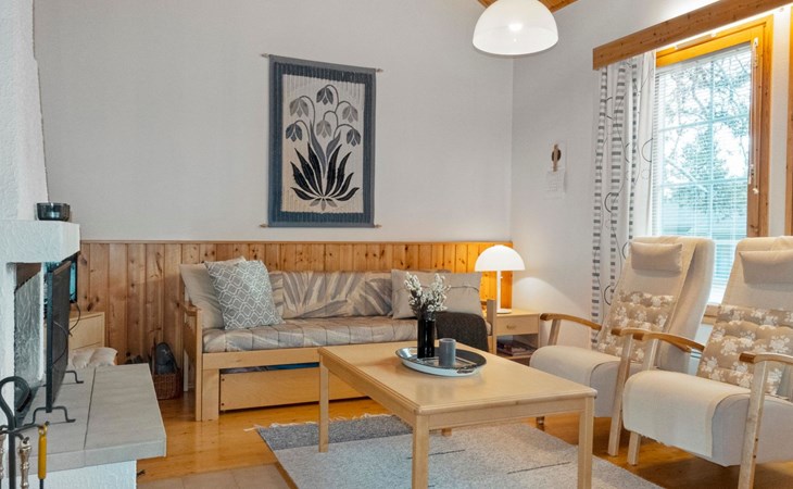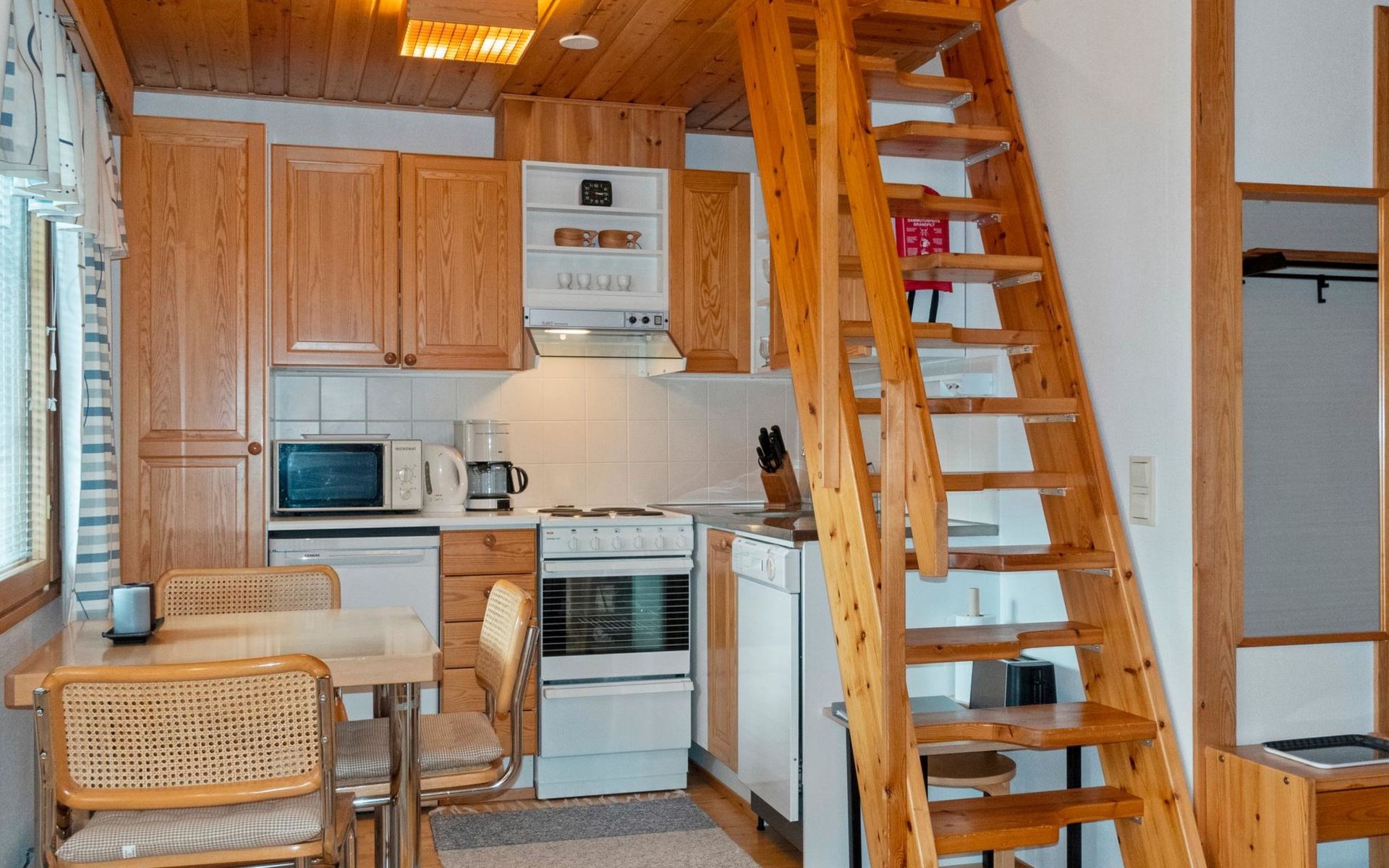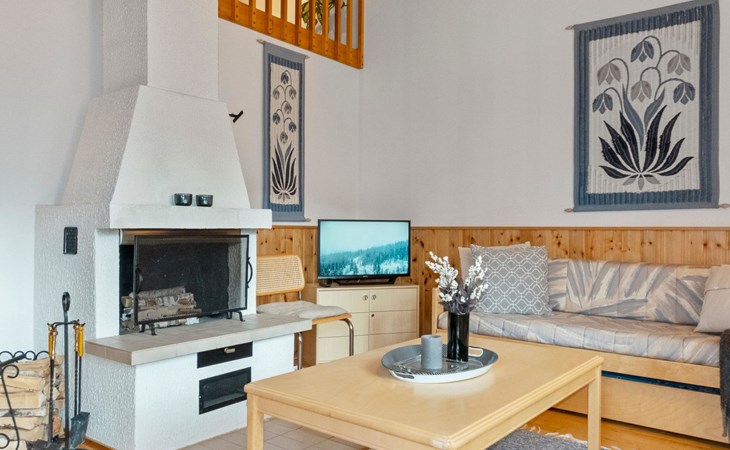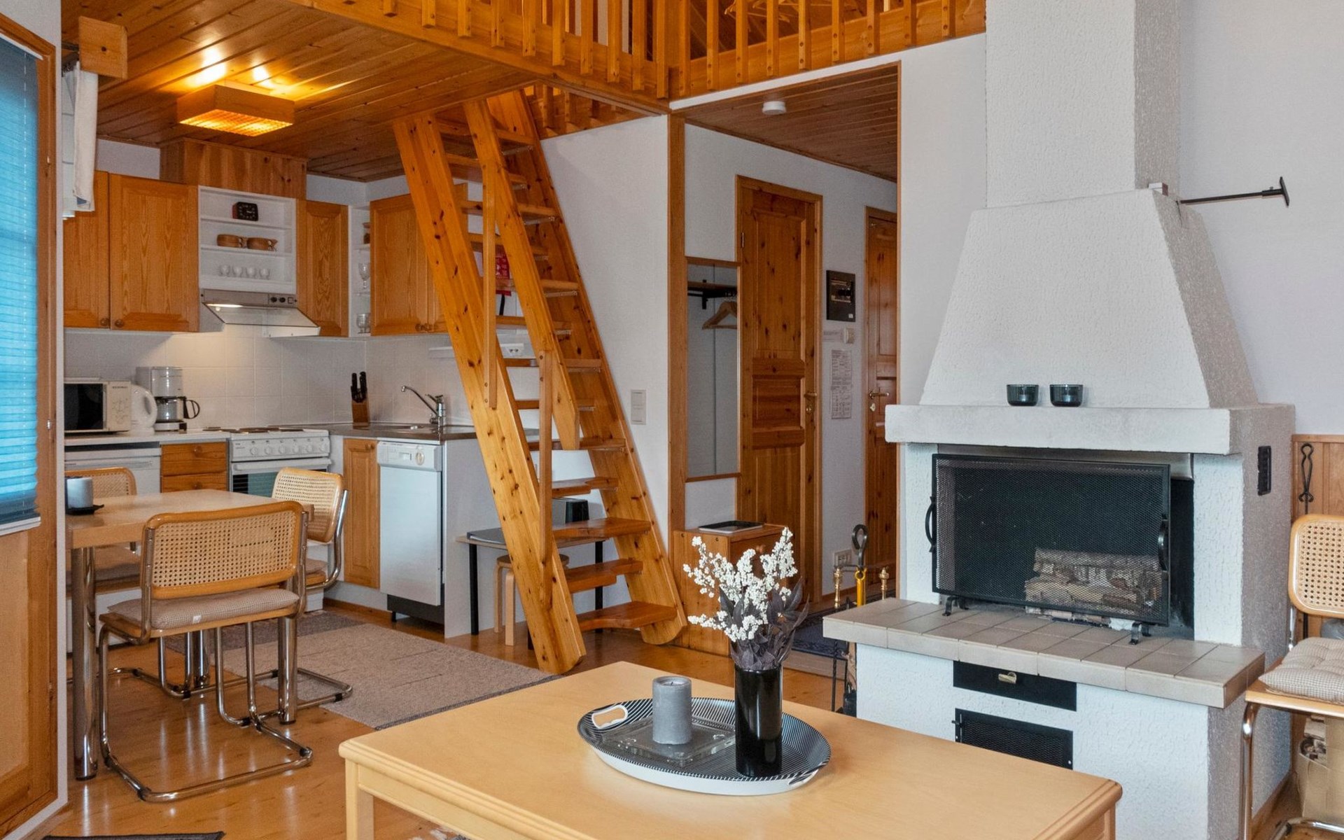 260 km to the north from Rovaniemi, in the tourist center of Saariselkä in Etelärinne area. Apartment in a row house, built in 1991, living room/kitchen, bedroom with 2 beds next to each other, 120 cm wide bed and 2 mattresses in the loft, sauna, washroom, separate WC and small terrace. Ground floor 38 m², loft 23 m².