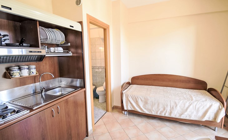 Please note: the bar and the restaurant are opened from May to September. Residence "L'Ancora". 19 houses in the residence. 3 km from the centre of Porto Empedocle, 11 km from the centre of Agrigento, from the sea, 10 m from the beach. For shared use: property 3'000 m2 (fenced), swimming pool (196 m2, depth 50 - 200 cm, seasonal availability: 01.Jun. - 30.Sep. pool opening hours: 09:00-19:00). Unconventional pool shape. Shower/WC in the pool area, garden furniture, pool maintenance by the owner/gardener. In the complex: reception, restaurant, bar, breakfast room, WiFi, table football, washing machine (extra) (for shared use), heating available only from 01.Dec. - 31.Mar.. Parking on the premises. Grocery 200 m, supermarket 3 km, restaurant, bar 5 m, bus stop 3 km, railway station "Agrigento" 18 km, ferry "Porto Empedocle" 3 km, sandy beach "Lido Azzurro" 10 m. Nearby attractions: Scala dei Turchi Patrimonio Unesco 3 km, Cattedrale di Sale di Realmonte 4.5 km, Casa Natale di Luigi Pirandello 6 km, Valle dei Templi di Agrigento 10 km, Piazza Armerina Villa Romana del Casale 102 km, Catania 176 km. Well-known lakes can easily be reached: Lago Arancio 78 km. Please note: car recommended.