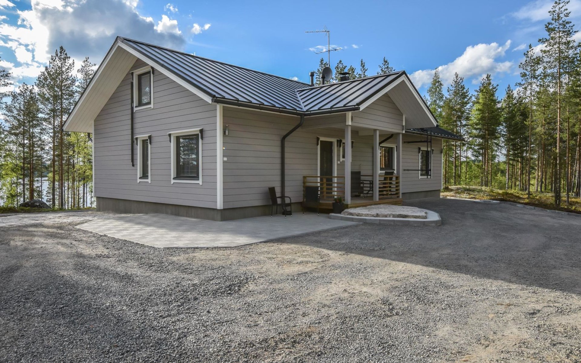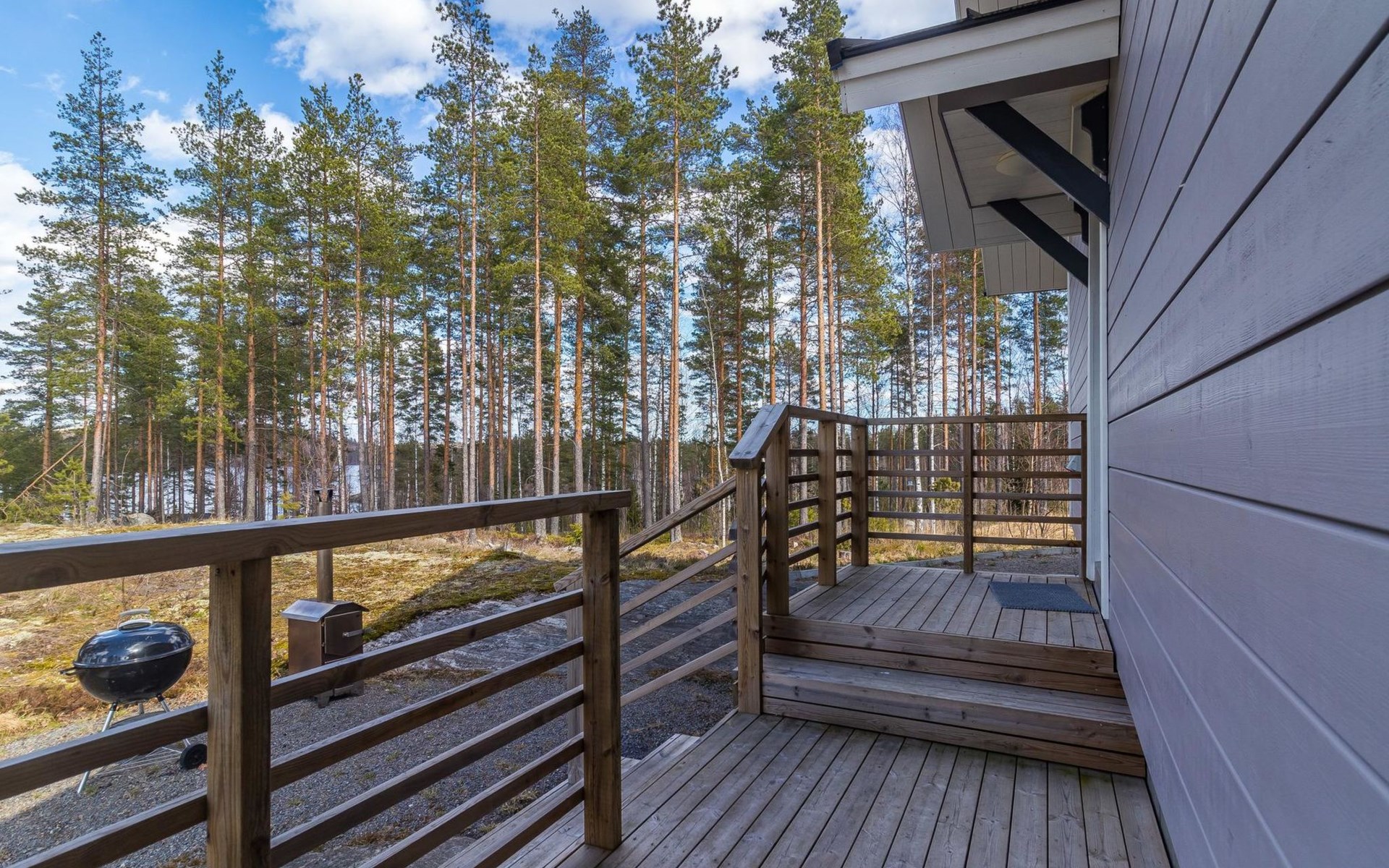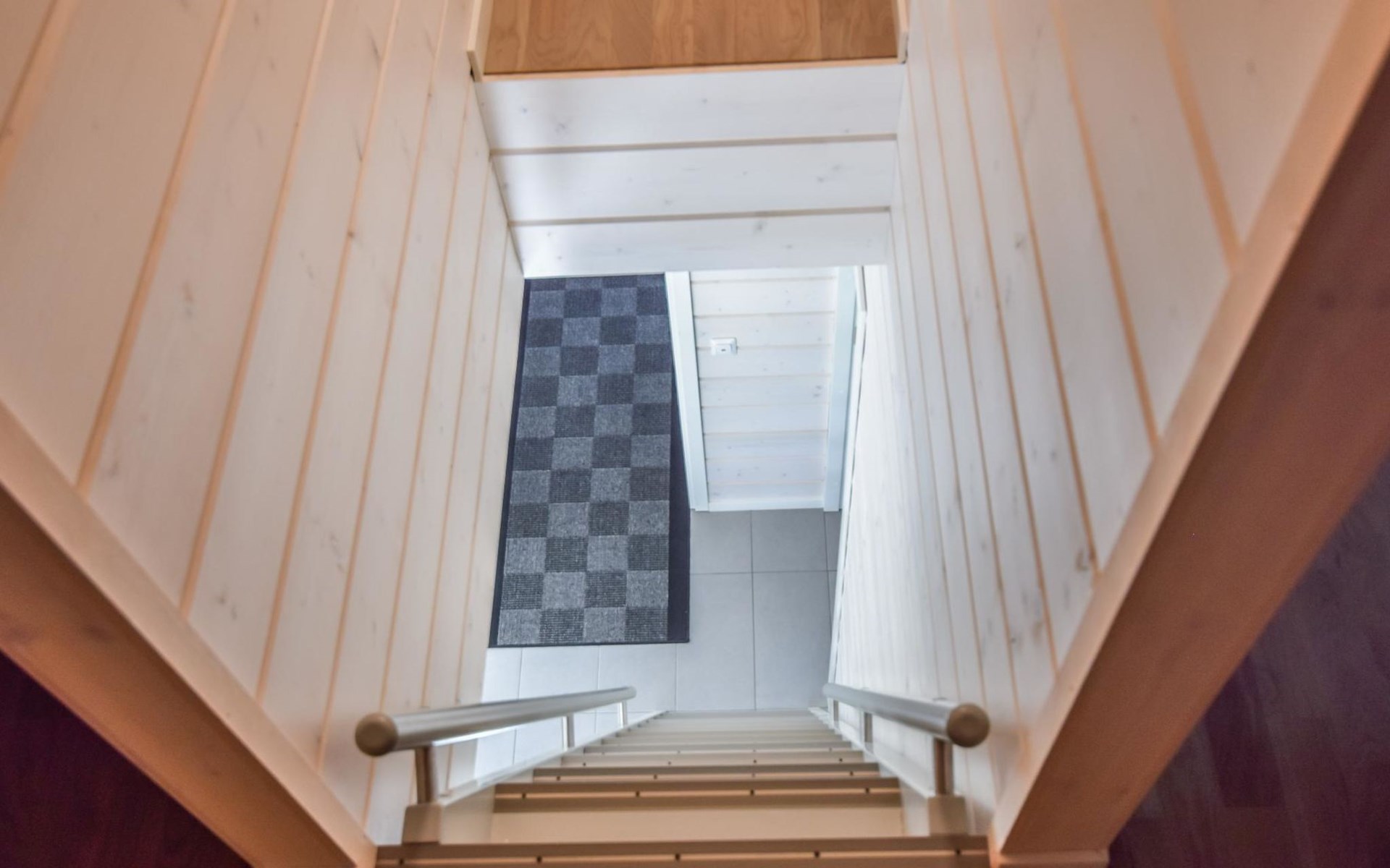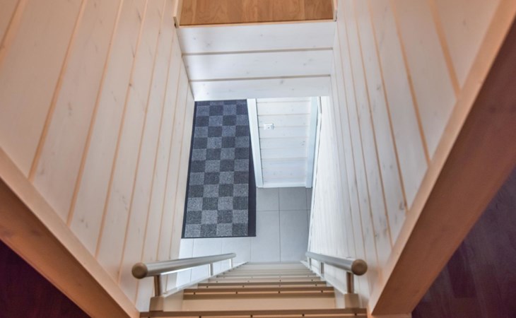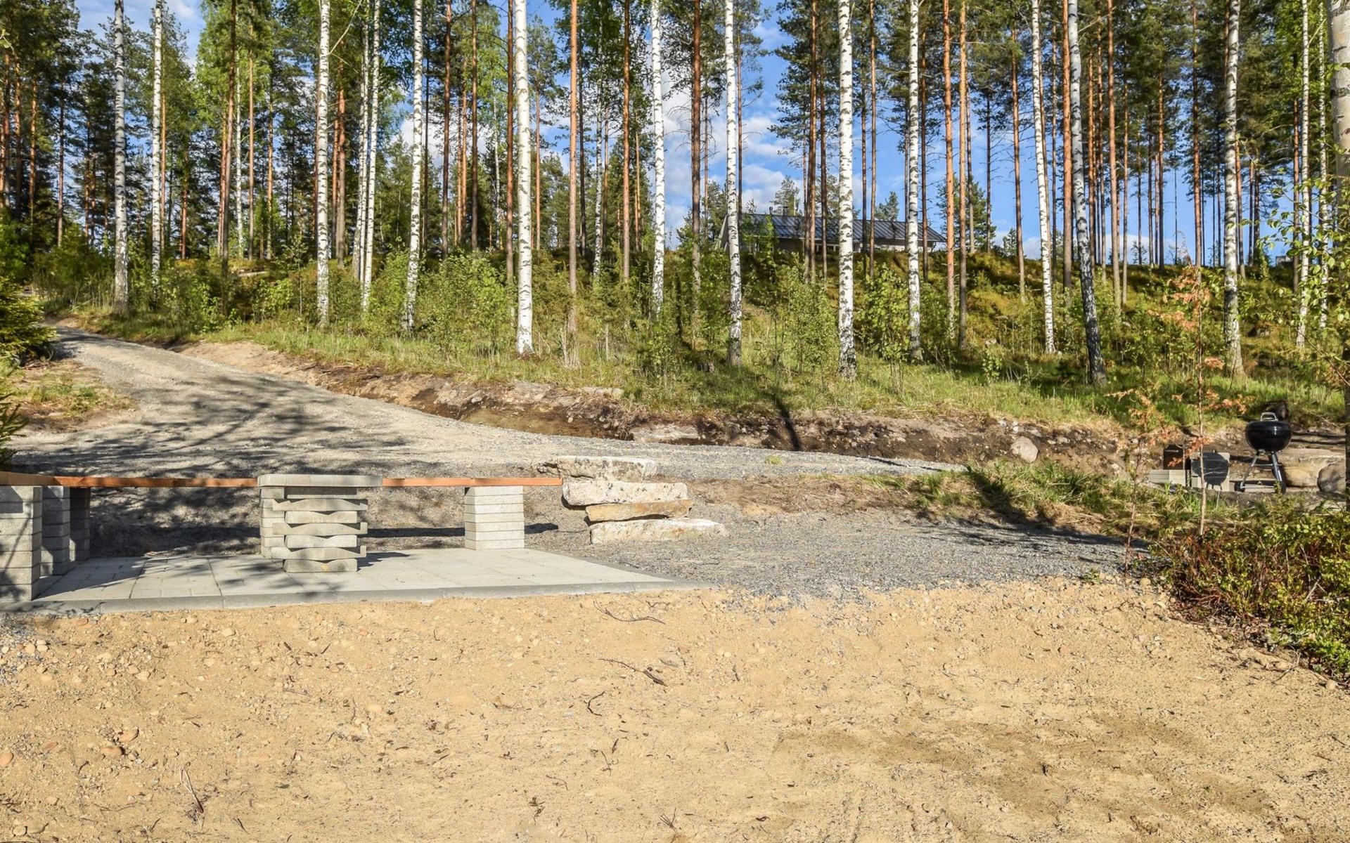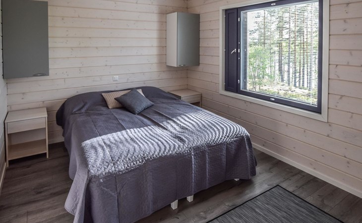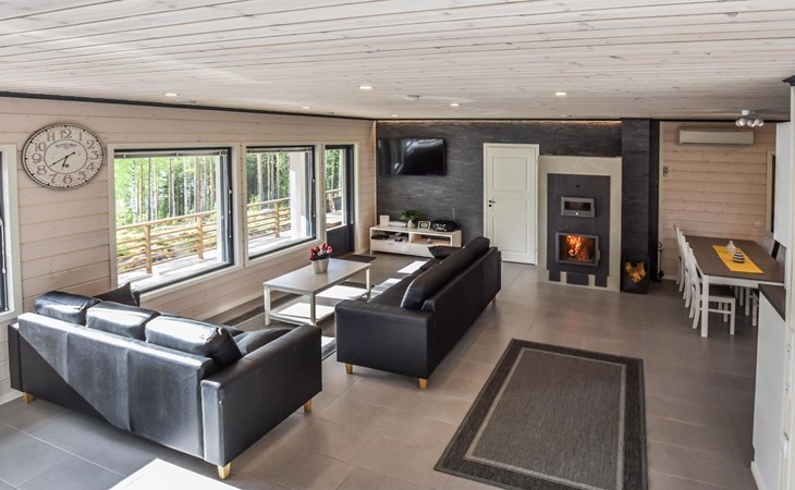 Wooden house 2017, kitchen, living room, bedroom 2 beds, second bedroom 2 beds, third bedroom 2 beds + a bed for child (low railing, length of the bed is about 150 cm), fourth bedroom 2 beds + baby travel cot, upstairs (steep stairs) two small bedrooms (max hight 192cm) 2 beds in each. Utility room, shower room with 2 showers, sauna (electric stove), covered terrace with 12-person dining table.