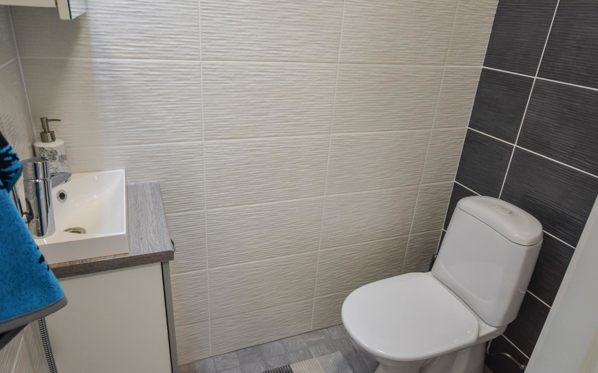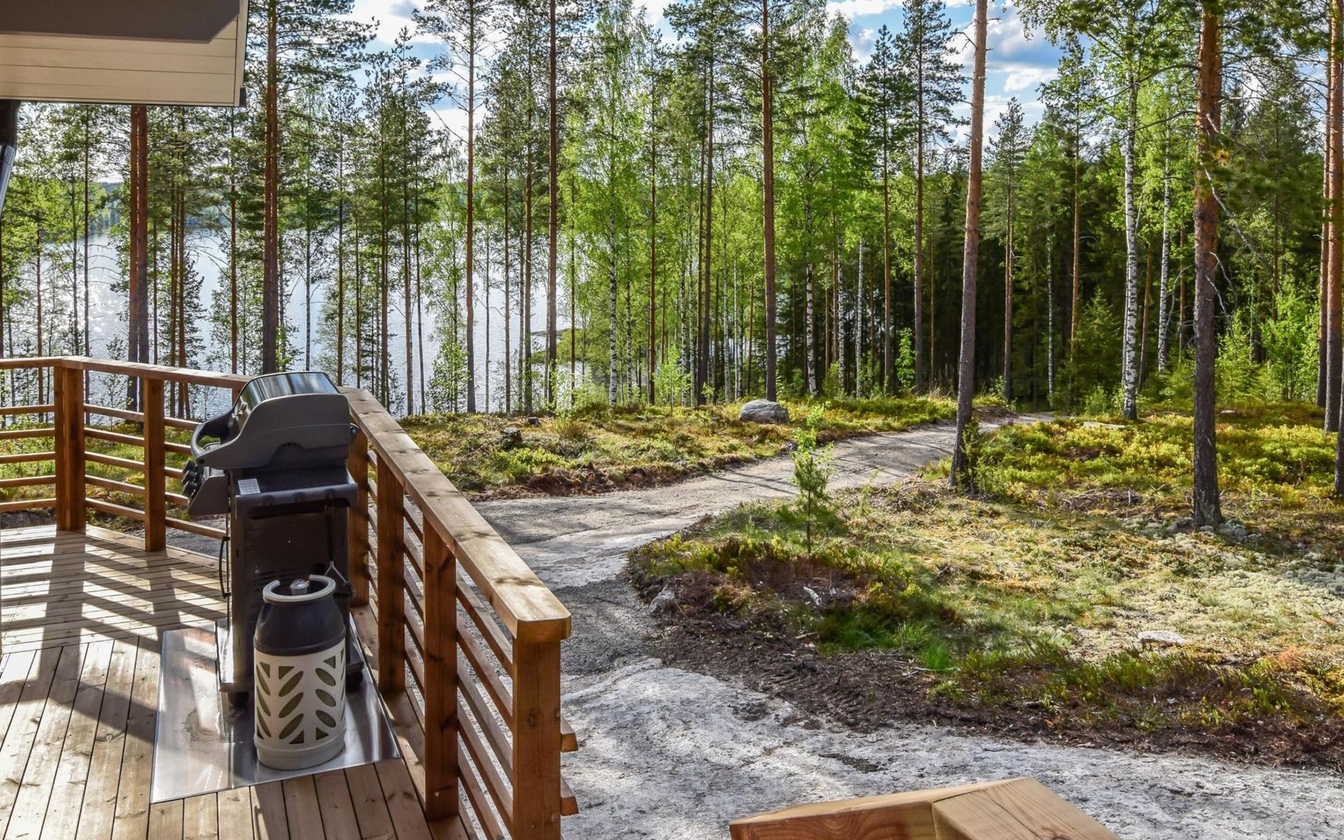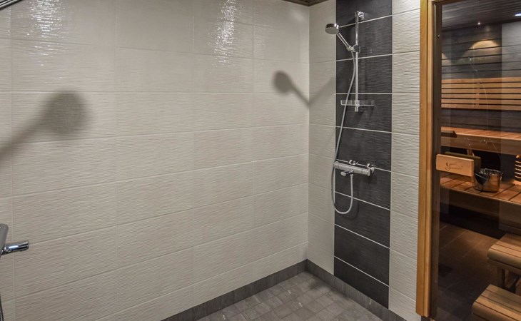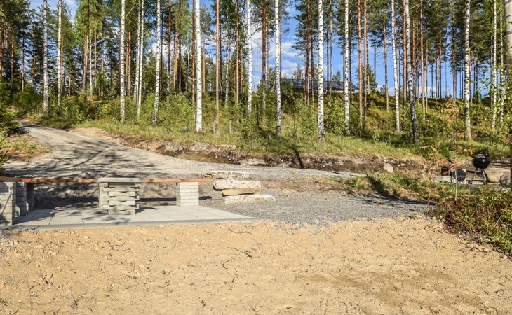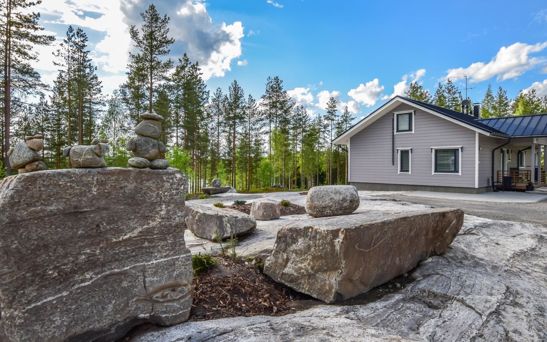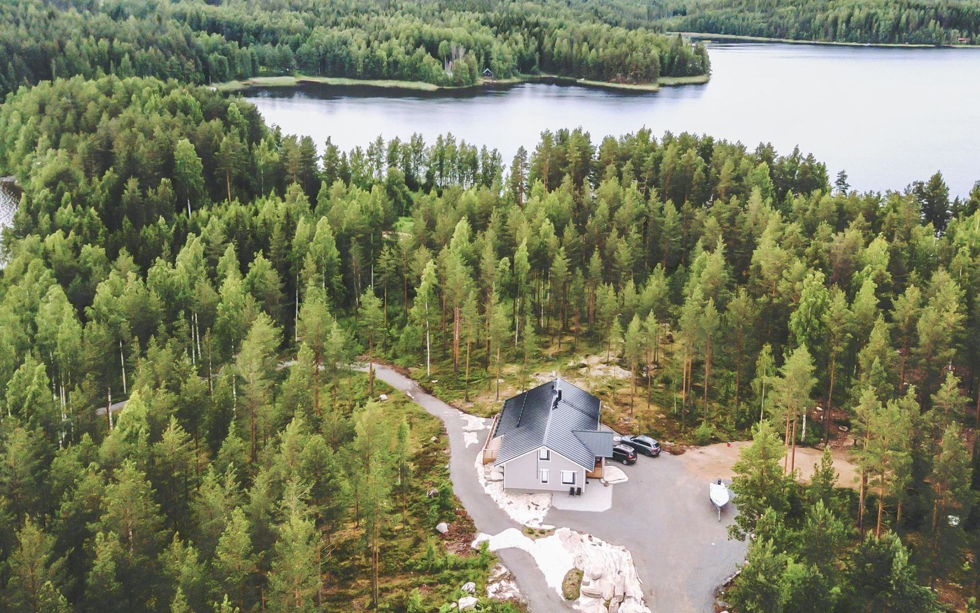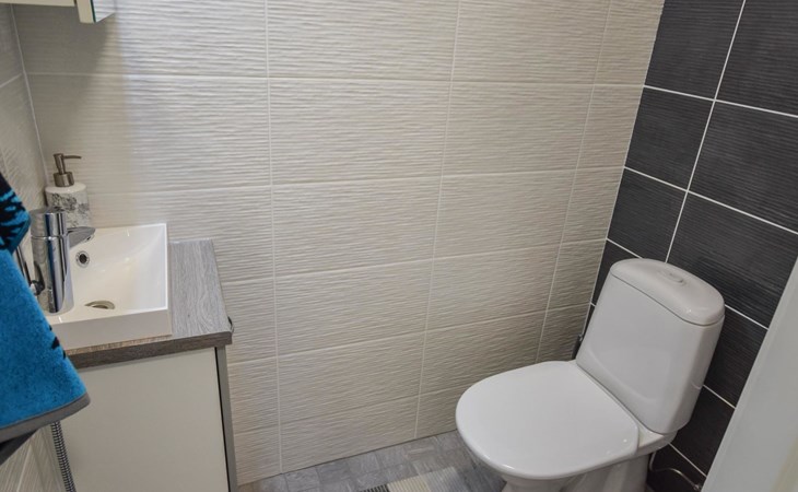 Wooden house 2017, kitchen, living room, bedroom 2 beds, second bedroom 2 beds, third bedroom 2 beds + a bed for child (low railing, length of the bed is about 150 cm), fourth bedroom 2 beds + baby travel cot, upstairs (steep stairs) two small bedrooms (max hight 192cm) 2 beds in each. Utility room, shower room with 2 showers, sauna (electric stove), covered terrace with 12-person dining table.